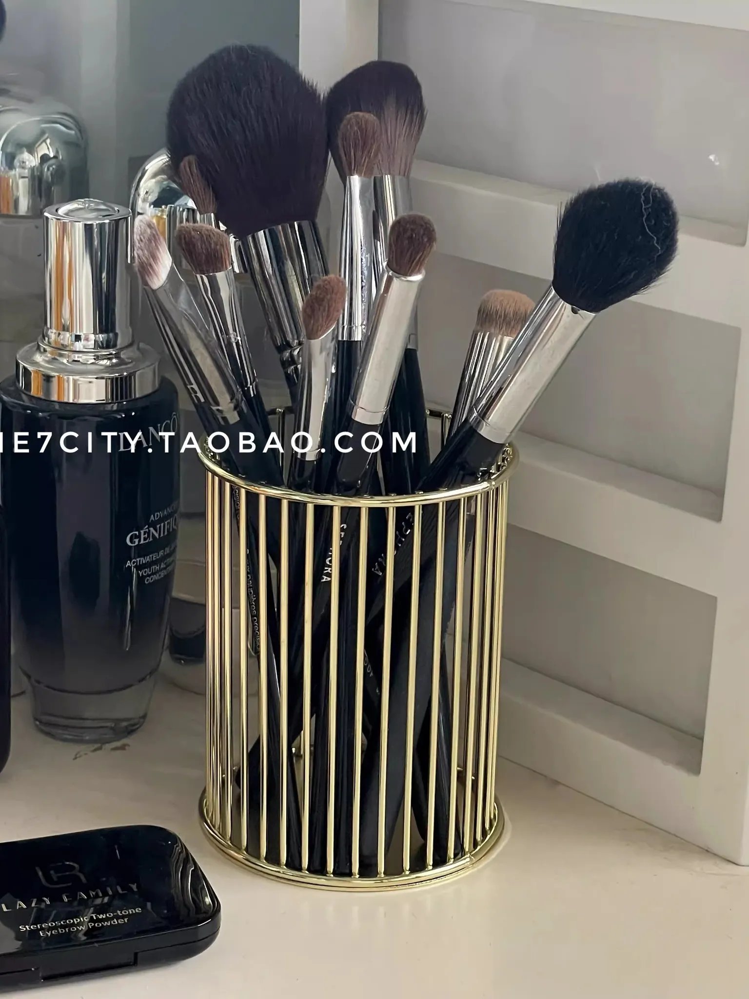 インスタ映え!ゴールドの縦型メイクブラシ収納バケット - デスク周りの小物整理に最適!学生にもぴったりな高級感漂う雑貨筒、北欧スタイルの寝室にもマッチ!