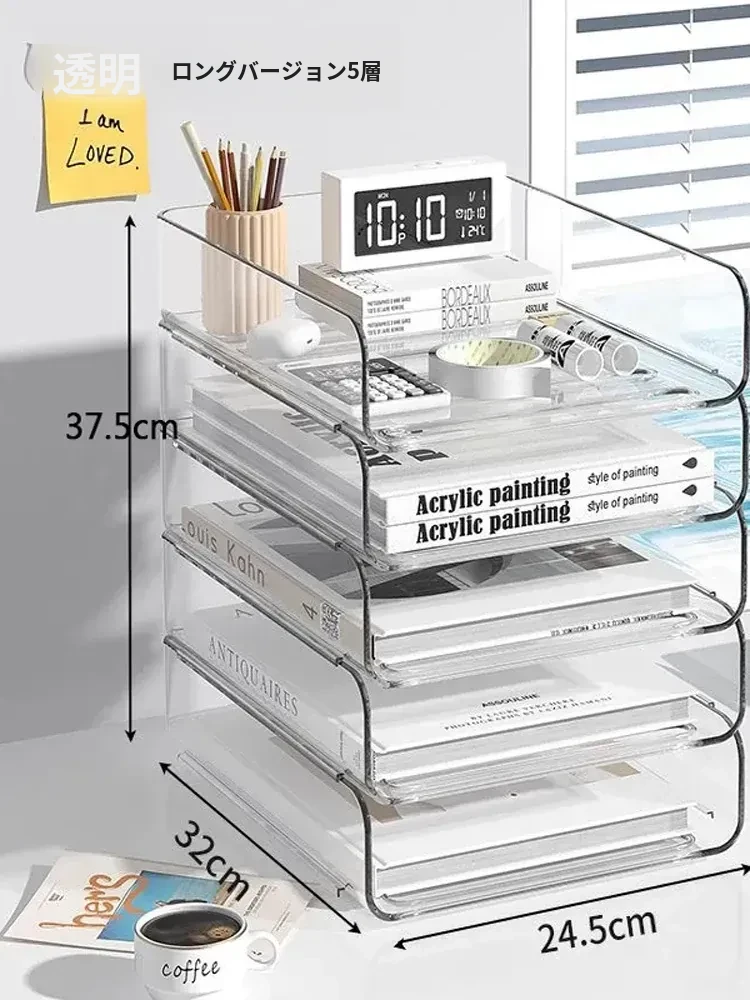 透明多層ファイルスタンド デスクトップ資料整理ボックス オフィス必需品 書類分別ラック 厚手デザインで大容量収納!あなたの作業スペースをスッキリ整理し、効率的に作業をサポートします!