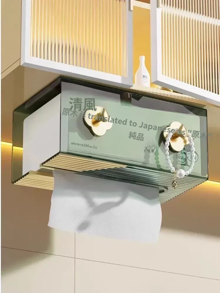 壁掛け式シンプル透明ティッシュボックス - 家庭用防水トイレ収納、穴あけ不要で洗面用タオルもスッキリ整理!