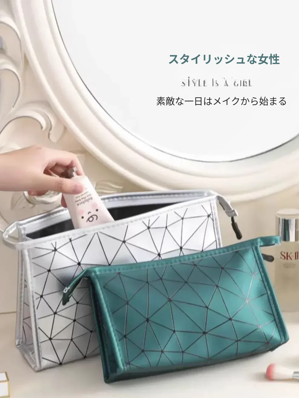 2025年新作!可愛い&便利なポータブル化粧ポーチ - 防水仕様でスマホや洗面用具も収納可能!大容量で持ち運びも楽々!あなたのお出かけにぴったりなアイテムです!