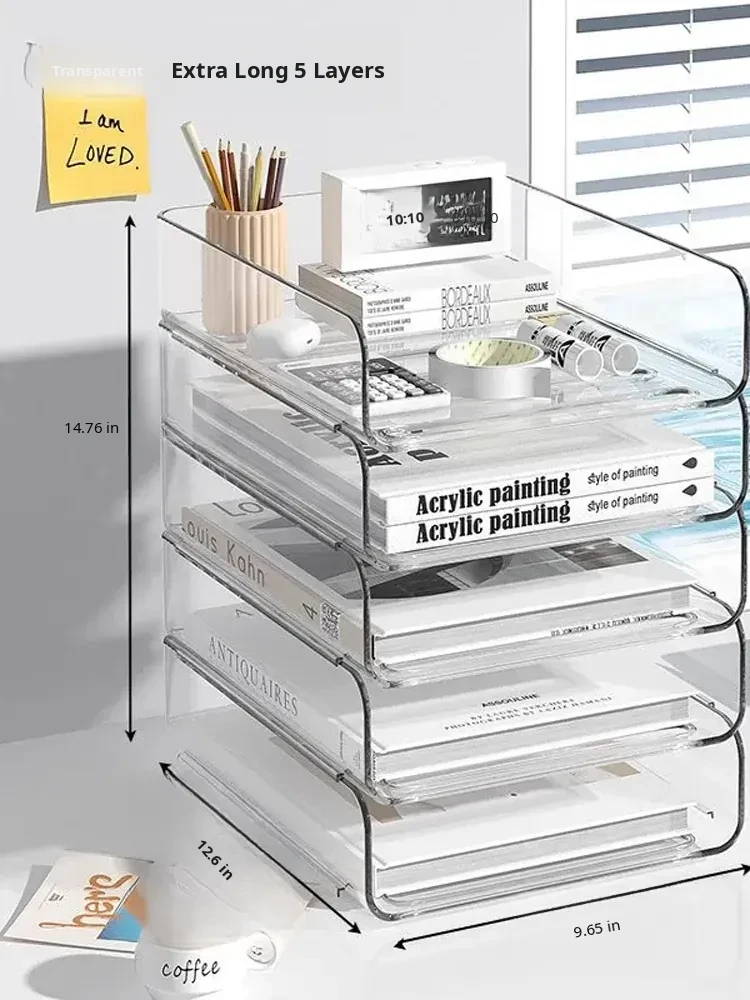 Clear Multi-Layer Desktop File Organizer - Essential Document and Book Storage Rack for Office, Efficiently Sorts and Organizes Your Papers and Materials