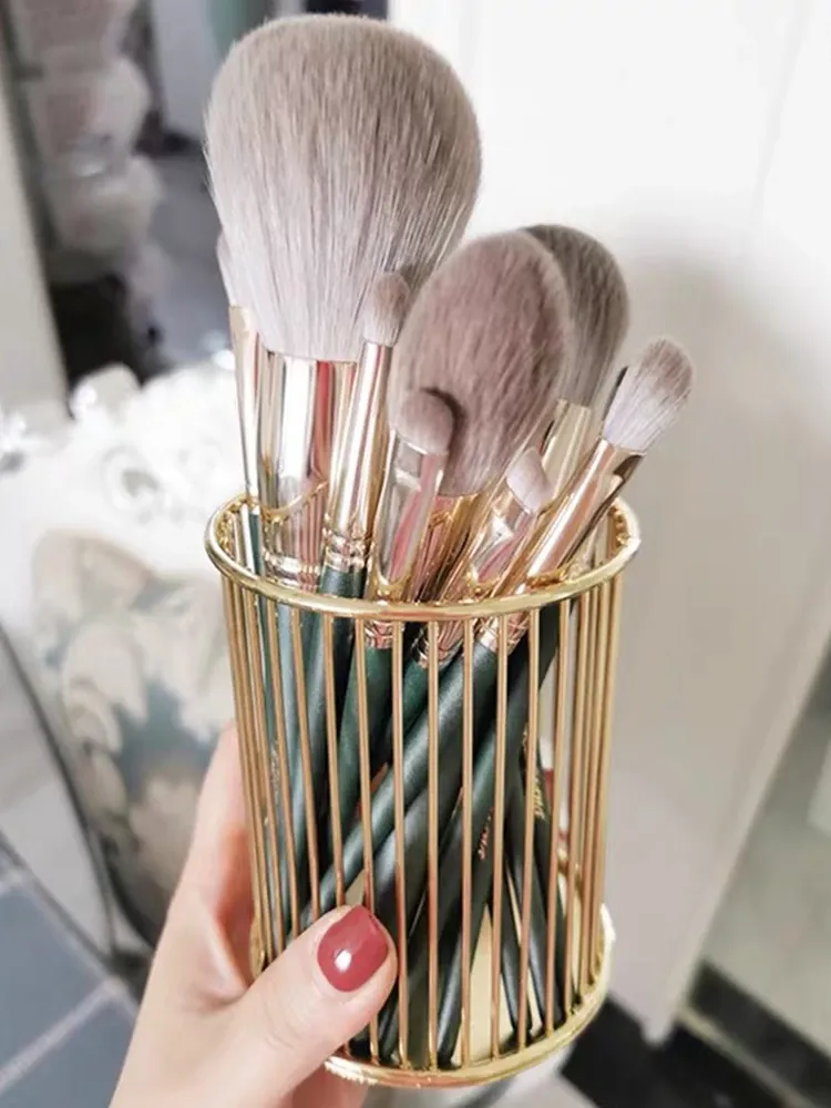 Gold Vertical Makeup Brush Holder - Elegant Storage Container for Desktop & Miscellaneous Items, Perfect for Students and Nordic-Inspired Bedrooms