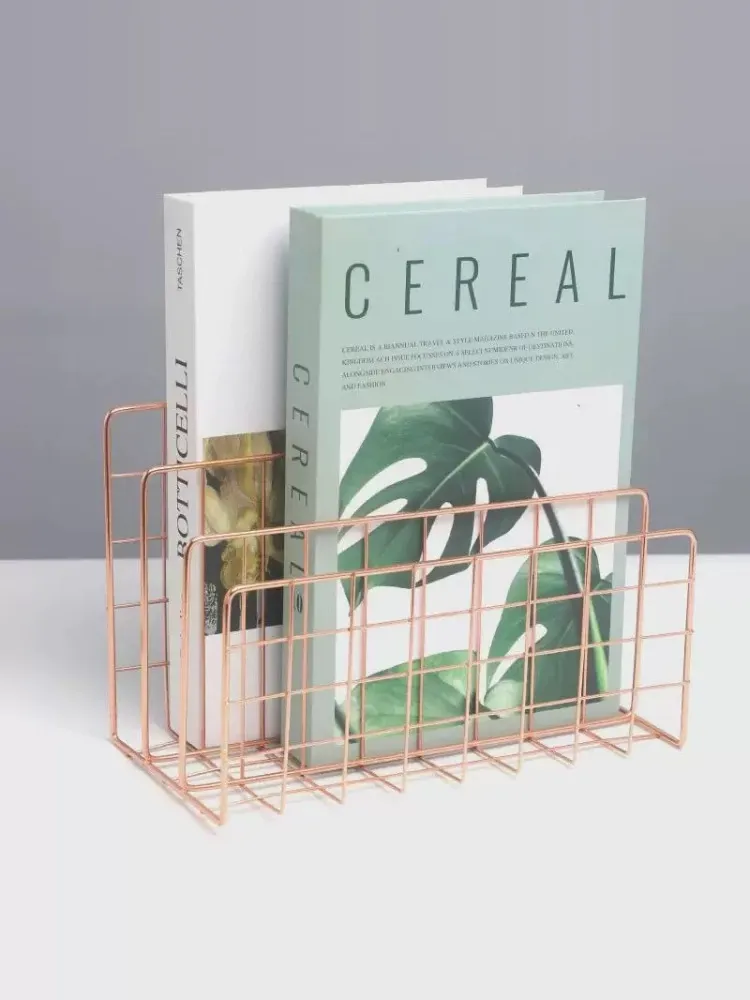 Minimalist Nordic Creative Ins-Style Multi-Layer Iron Book Stand - Student Desk Organizer with Book Clips and Supports for Stylish Home & Office Decor