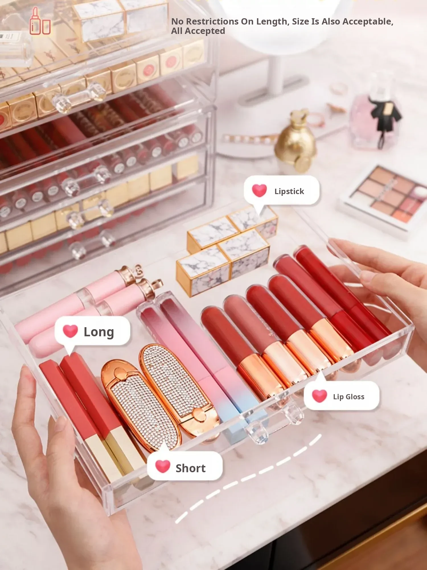 Acrylic Makeup Organizer Box - Transparent Lipstick Storage with Multi-Compartment Display Rack for Desk - Stylish and Functional Lip Gloss Organizer for Beauty Enthusiasts