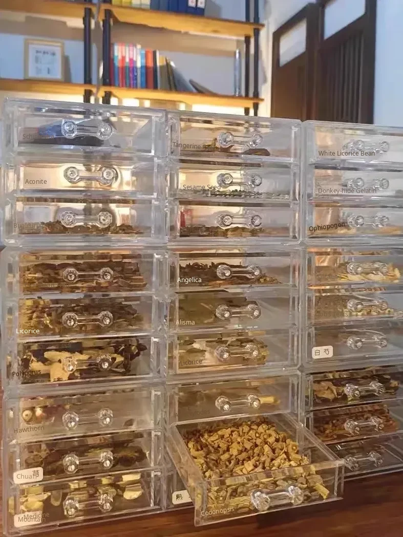Compact Chinese Medicine Storage Box - Multi-Layer Drawer Organizer with Transparent Dustproof Acrylic Design for Home Use, Perfect for Herbal Remedies and Easy Access to Ingredients