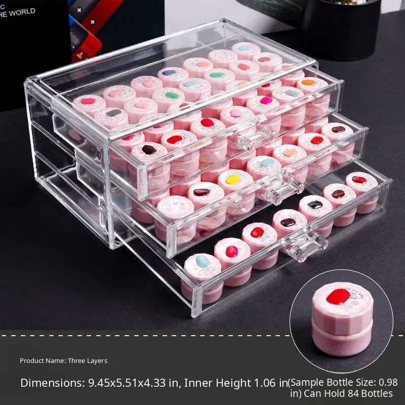 Acrylic Nail Art Storage Box with Glitter and Gel Polish - Japanese LED Light Curing Nail Supplies Organizer, Large Transparent Drawer for Nail Accessories