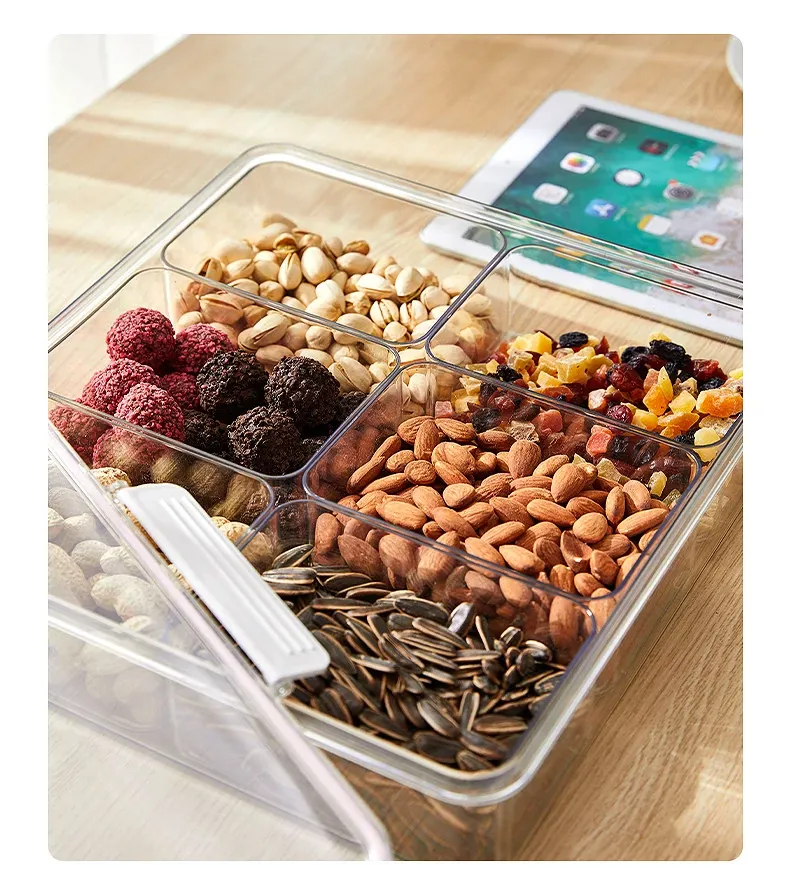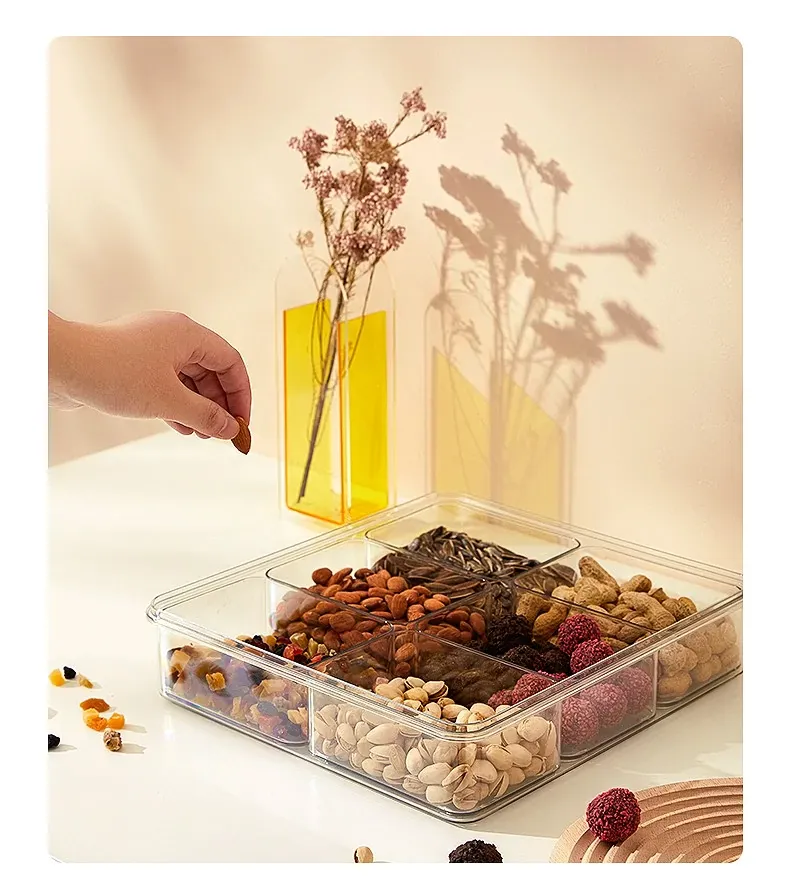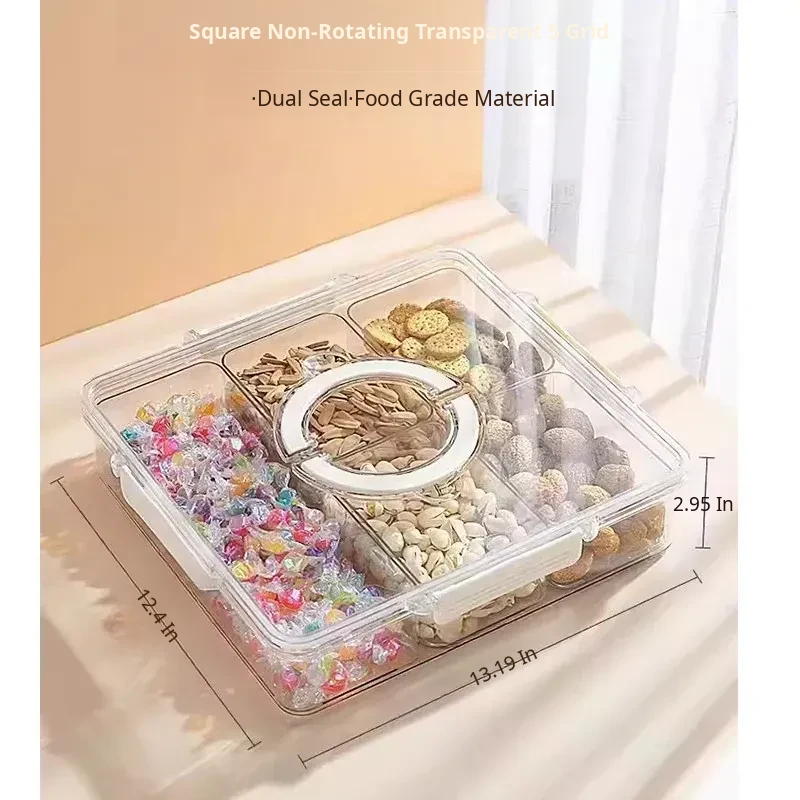 Transparent Dried Fruit Plate Sealed and Moisture-Proof Five Compartments