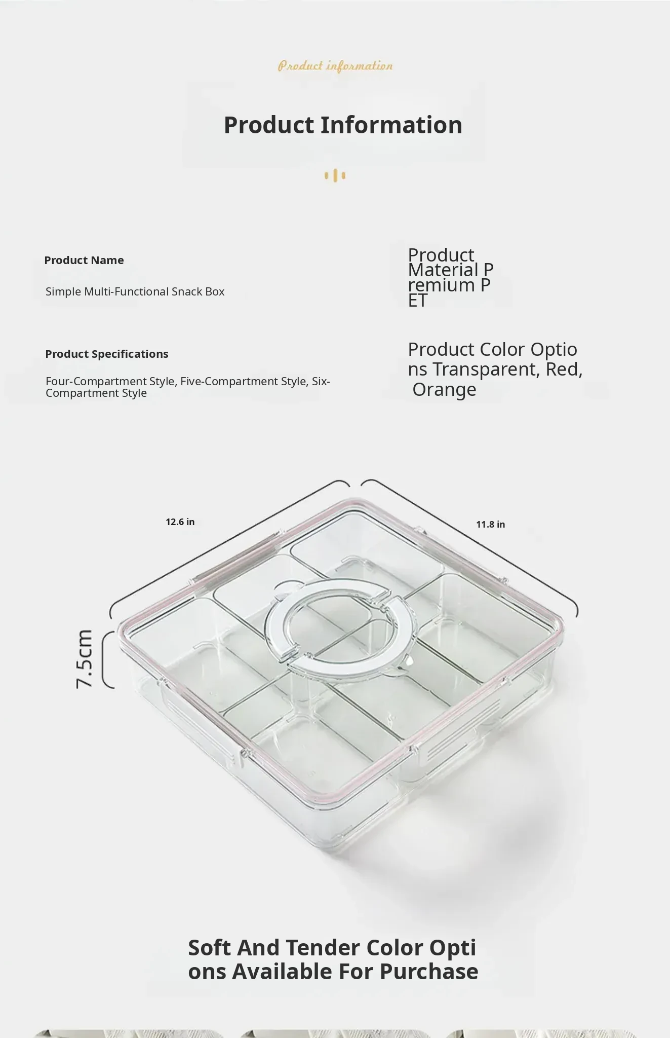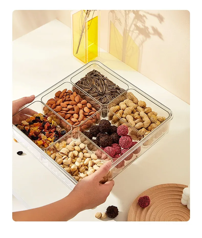 Transparent Dried Fruit Plate Sealed and Moisture-Proof with Six Compartments
