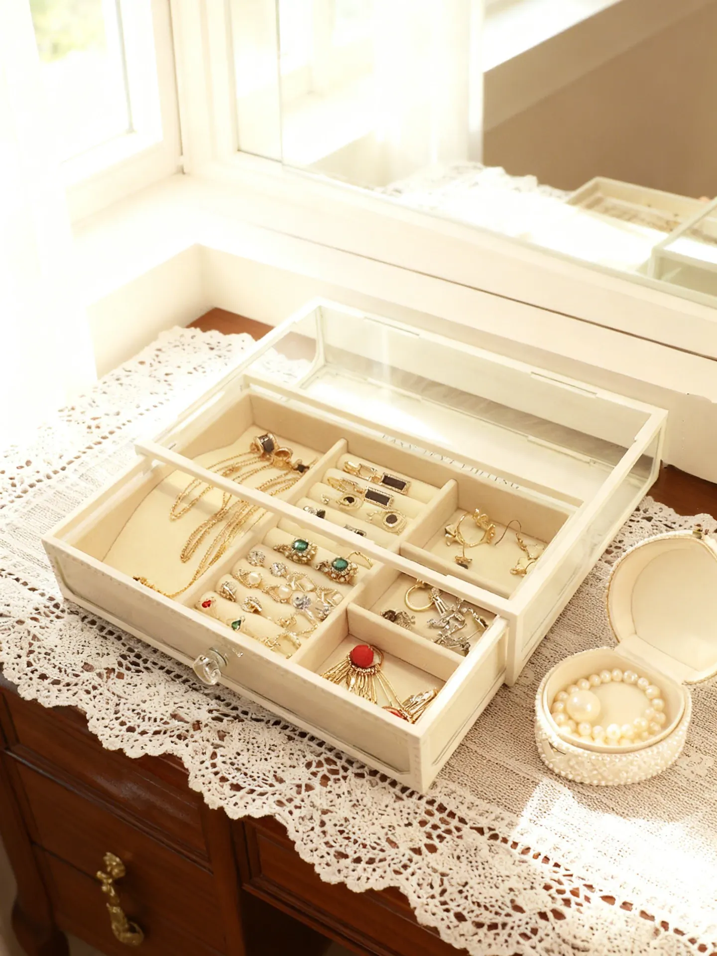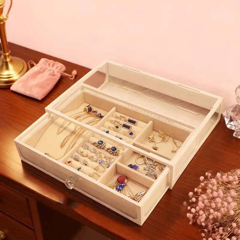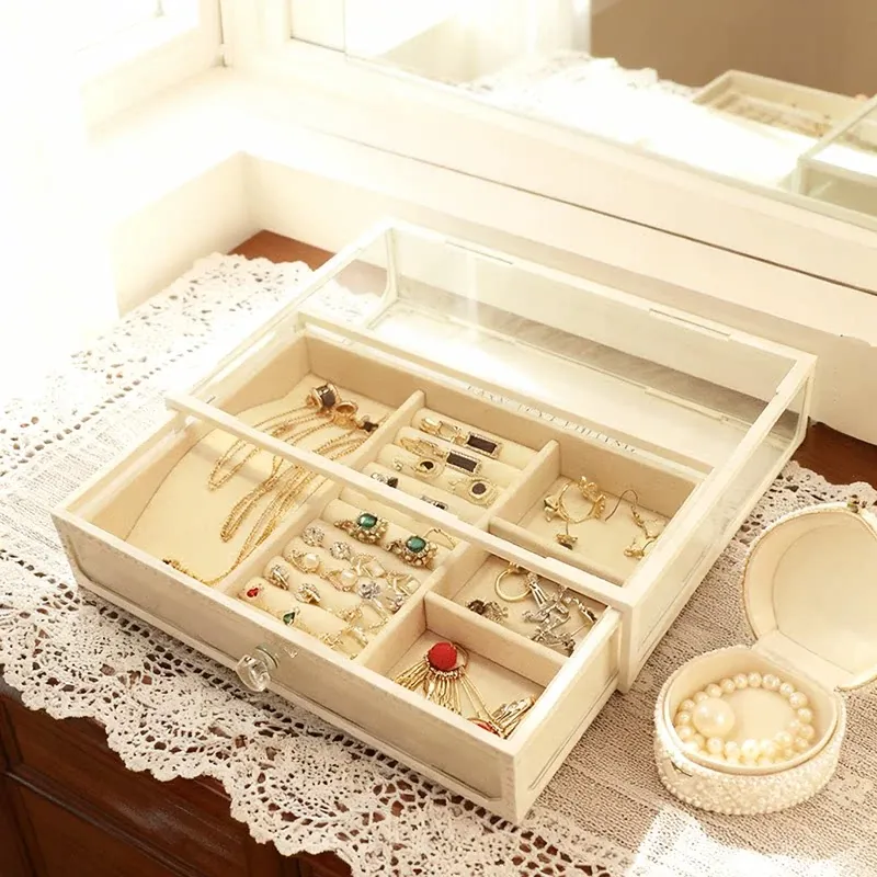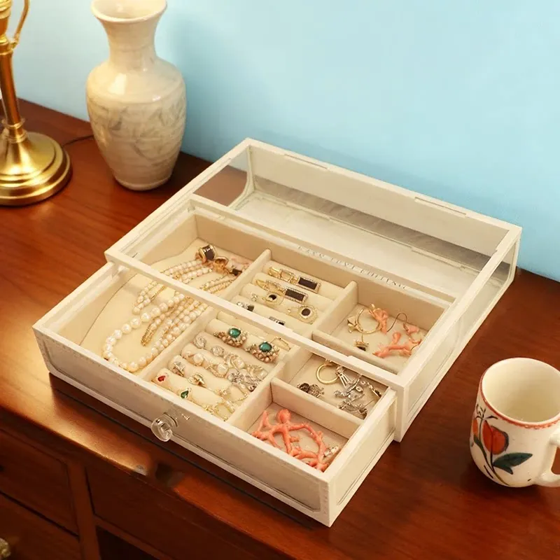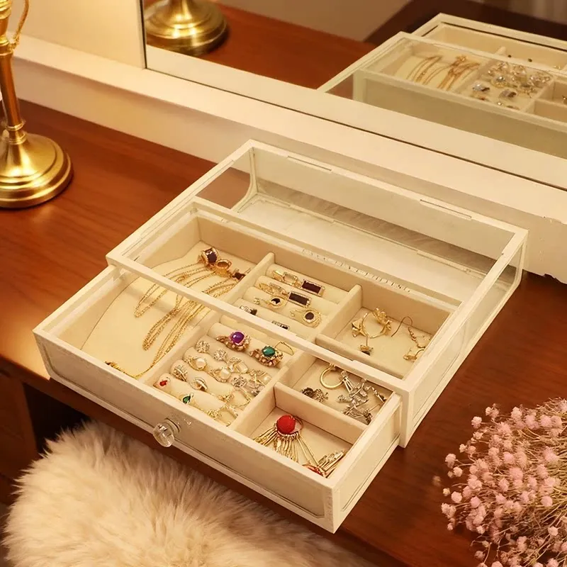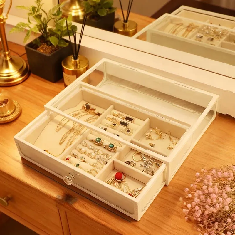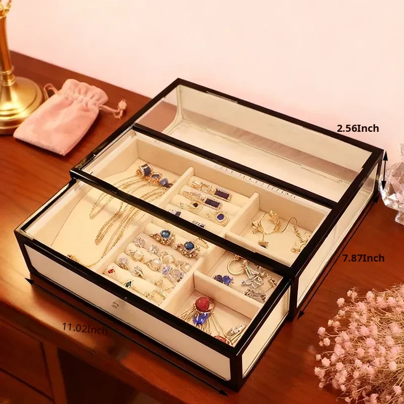 Elegant Glass Jewelry Box - Transparent Dustproof Storage Organizer for Vanity, Perfect for Skincare Products and Accessories, Ideal for Home Use