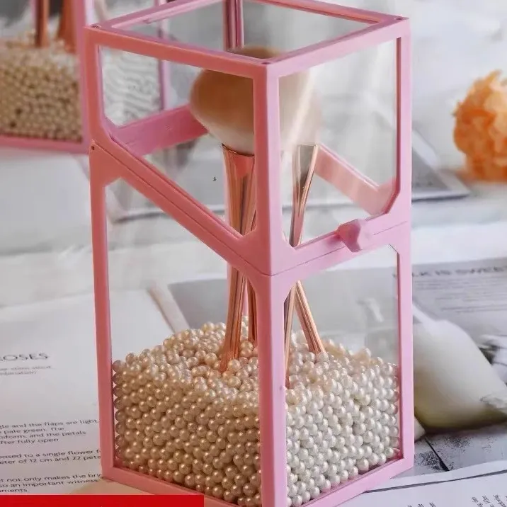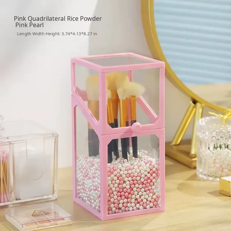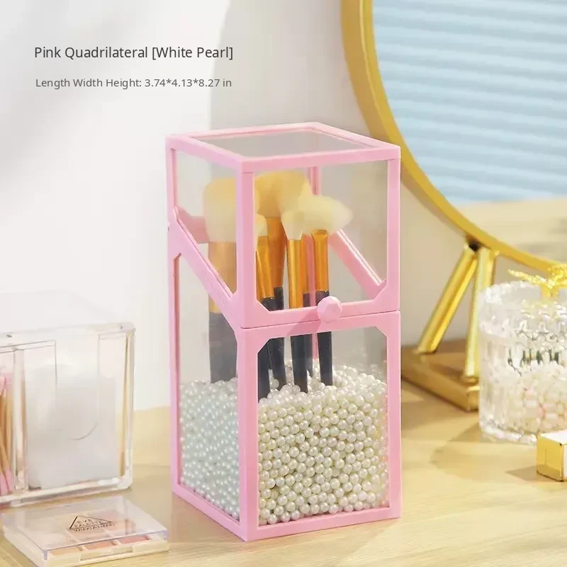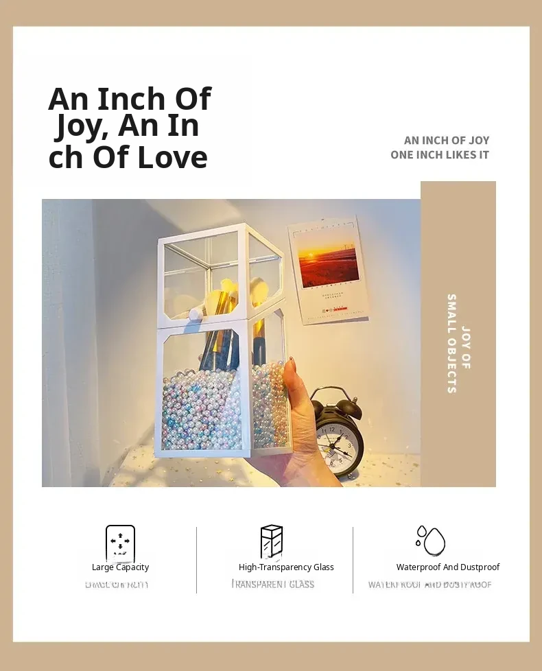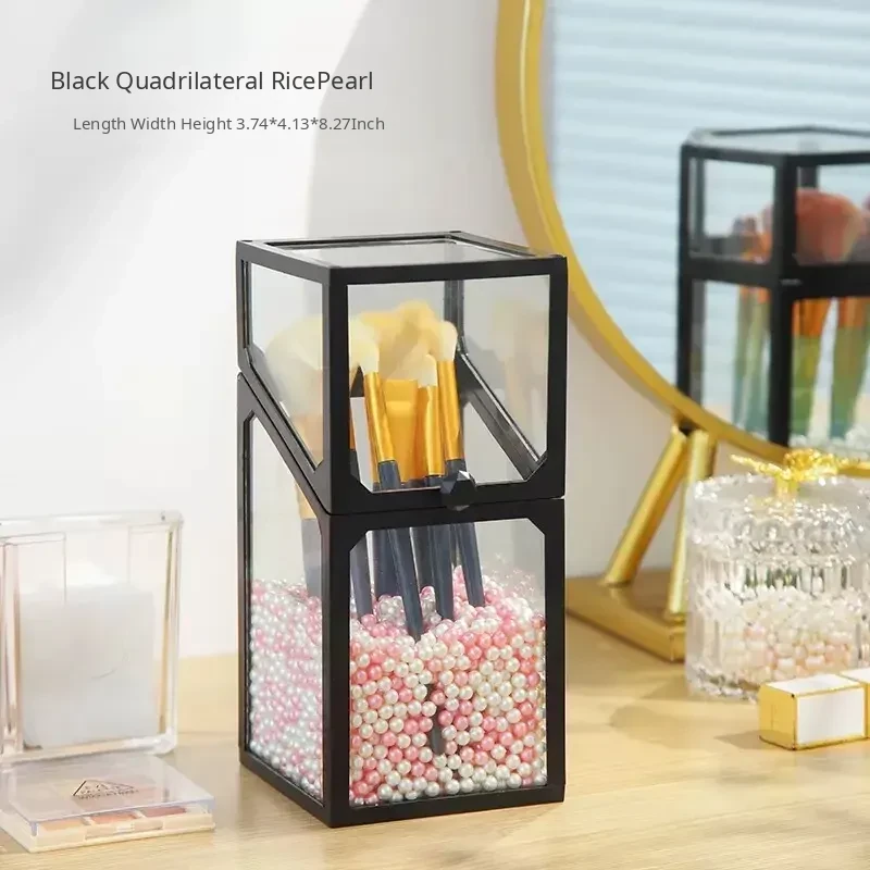 Elegant Makeup Brush Organizer with Dustproof Lid - Portable Glass Vanity Box for Eyebrow Pencils and Brushes, Perfect for Your Chic Desktop Display