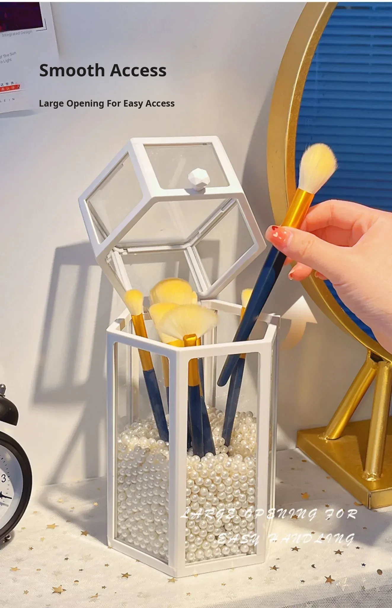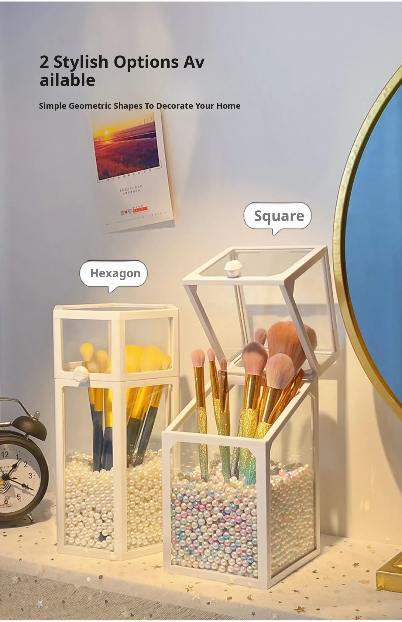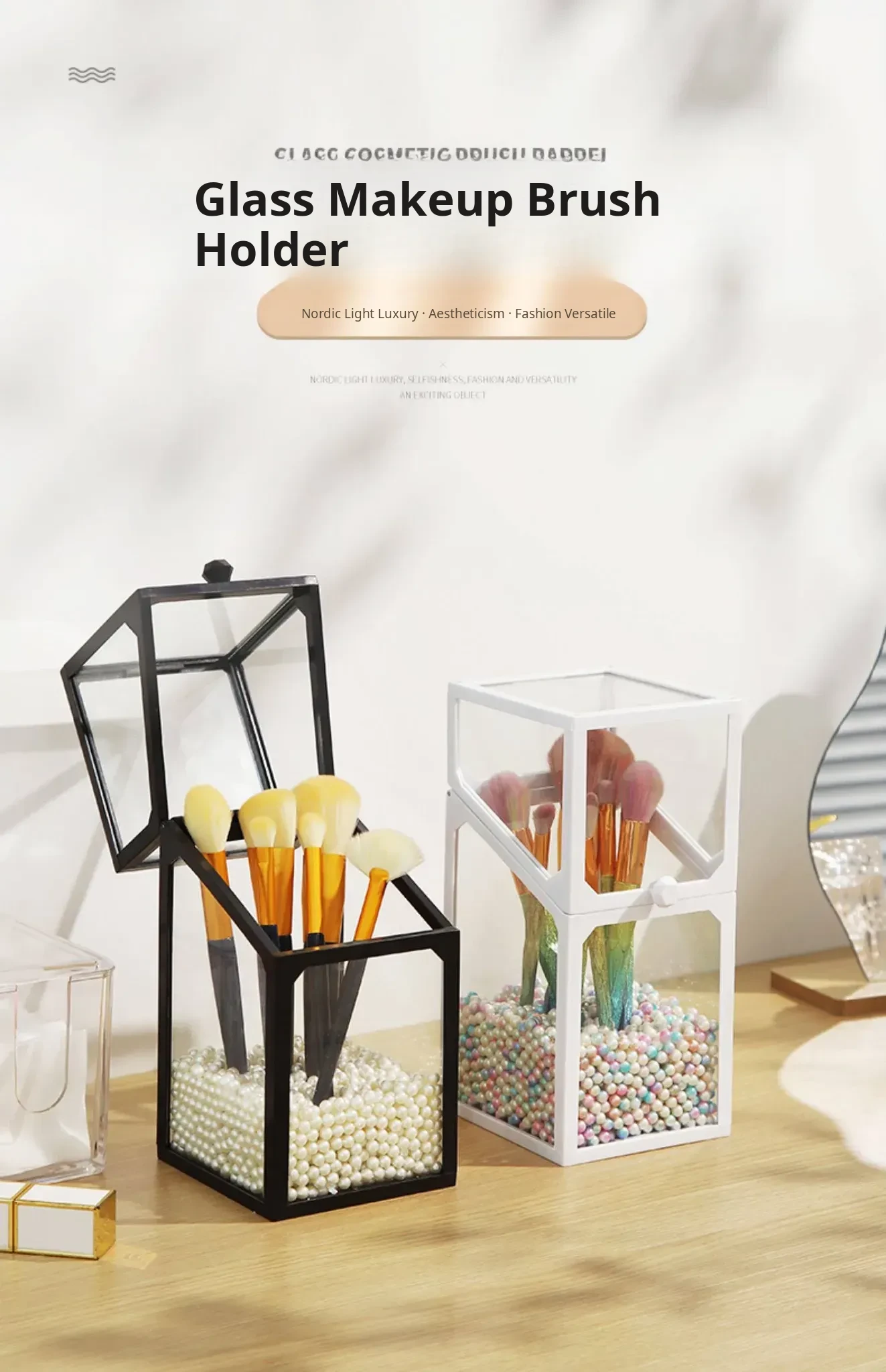 Elegant Makeup Brush Organizer with Dustproof Lid - Portable Glass Vanity Box for Eyebrow Pencils and Brushes, Perfect for Your Chic Desktop Display