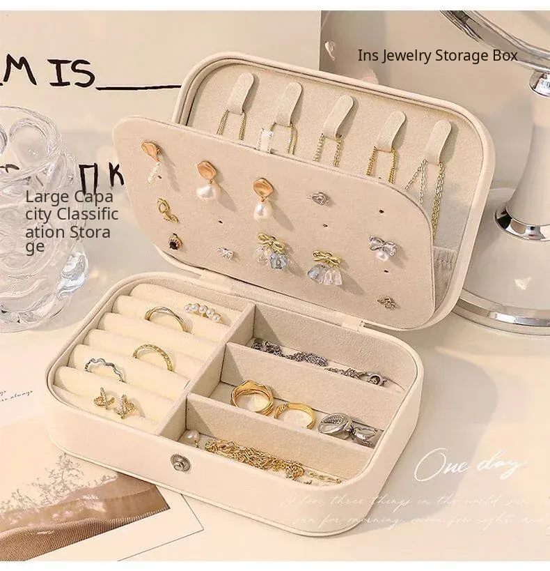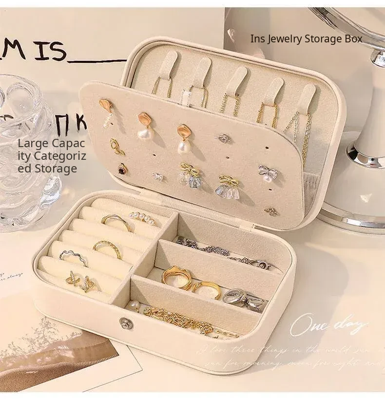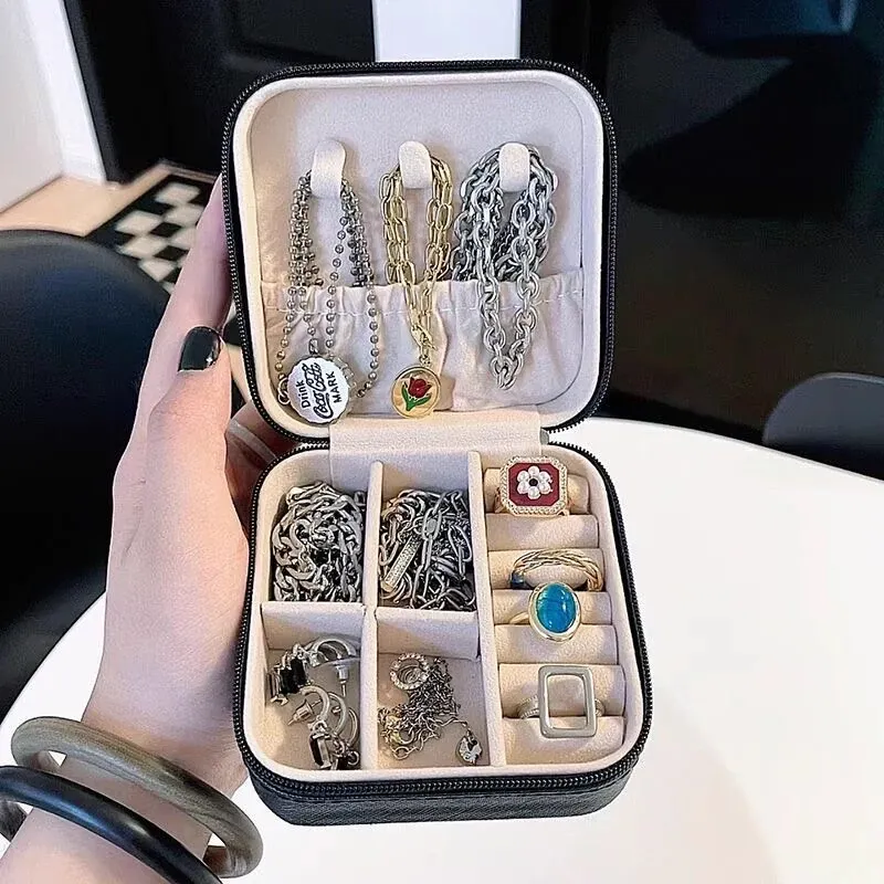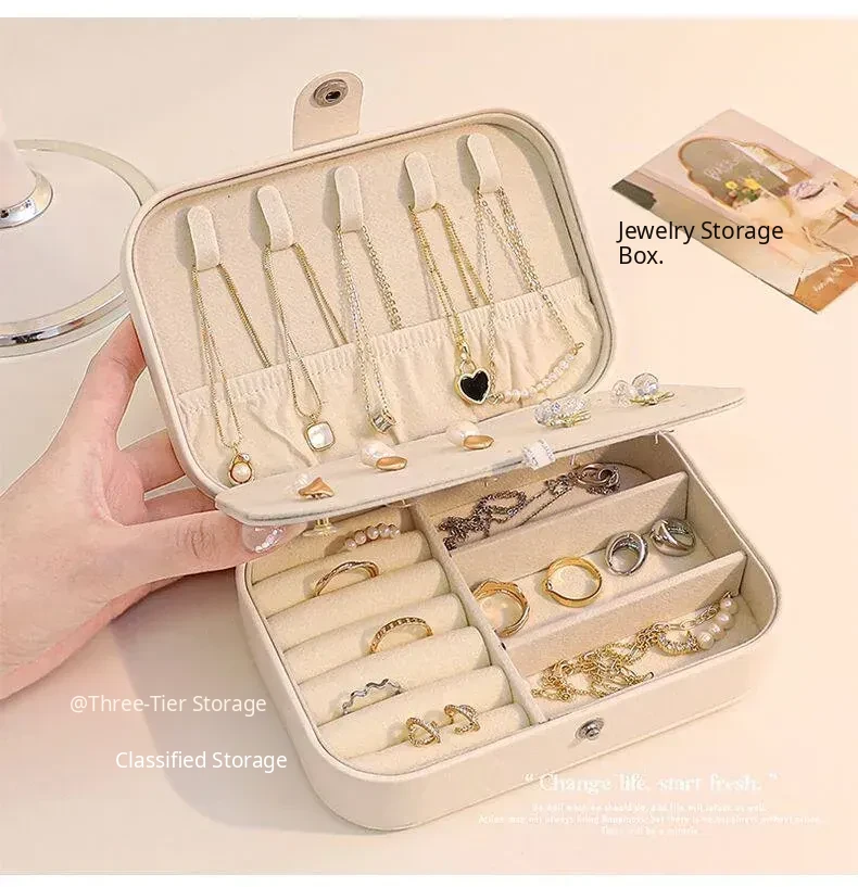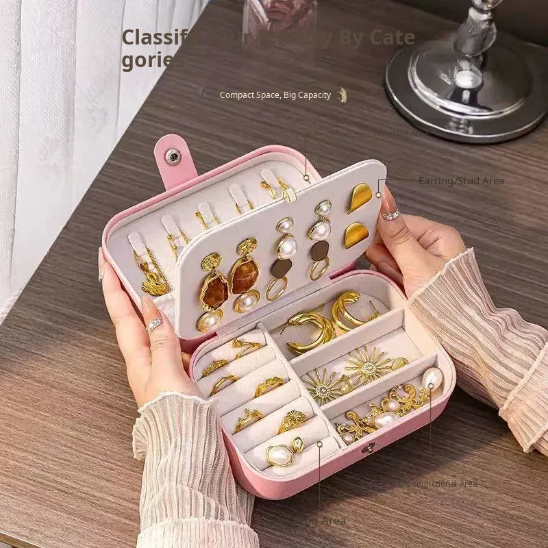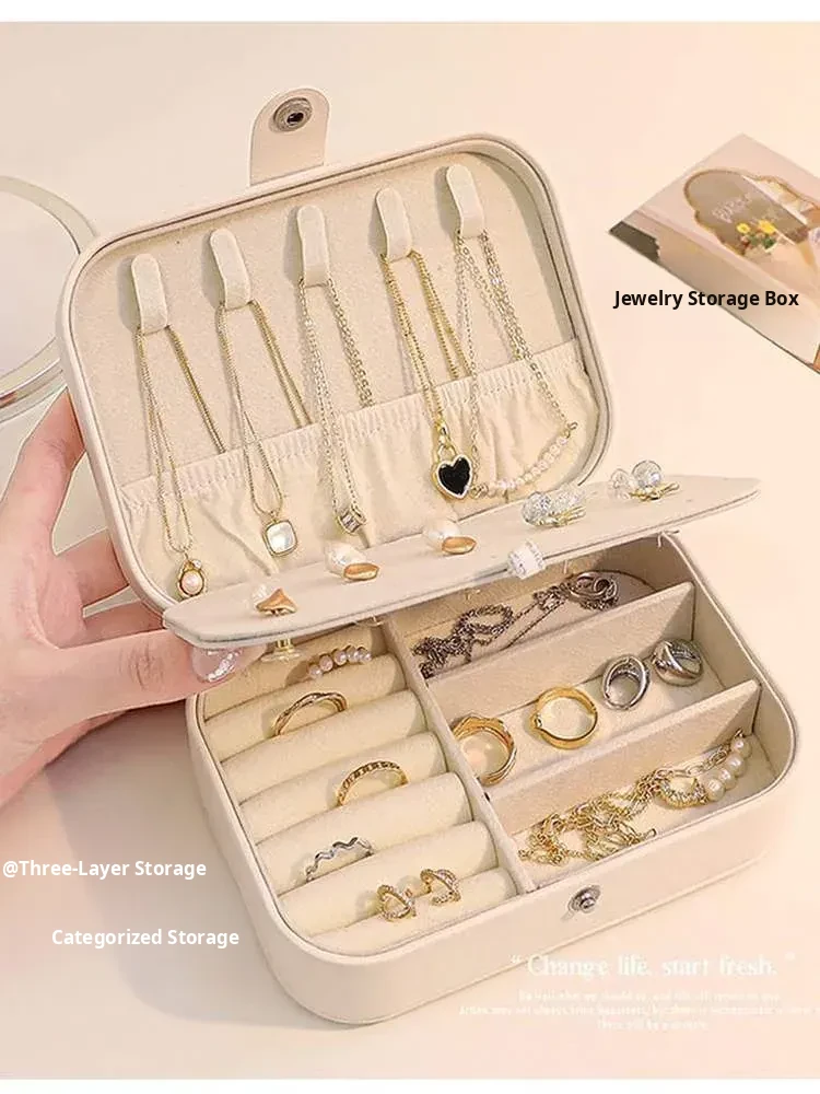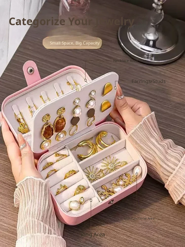 Elegant Portable Jewelry Organizer Box - Travel-Friendly Anti-Oxidation Case for Earrings, Necklaces, Rings, and Bracelets - Perfect for Your Adventures!