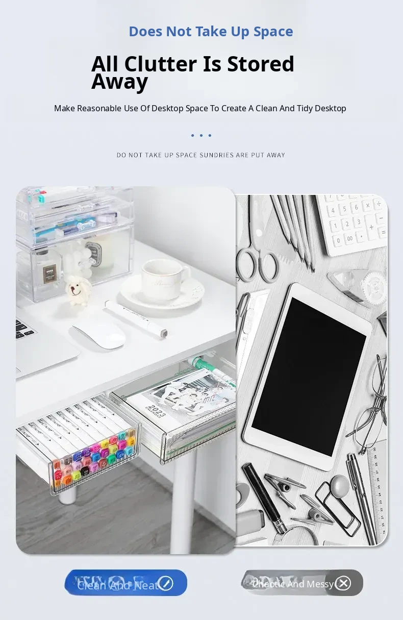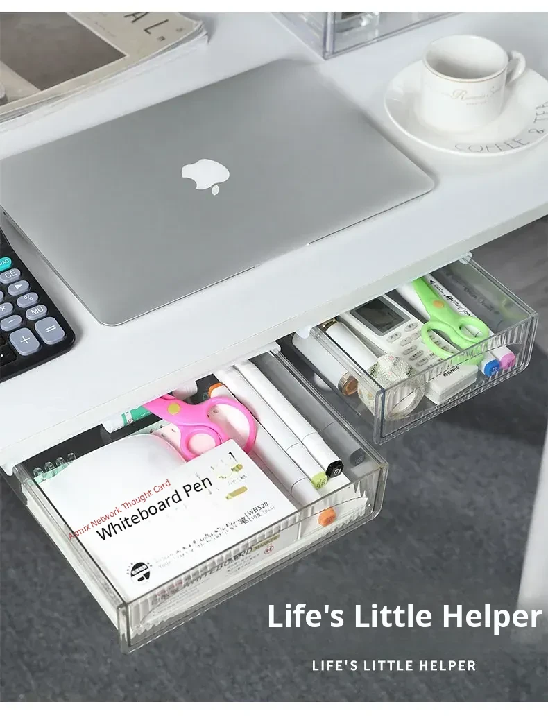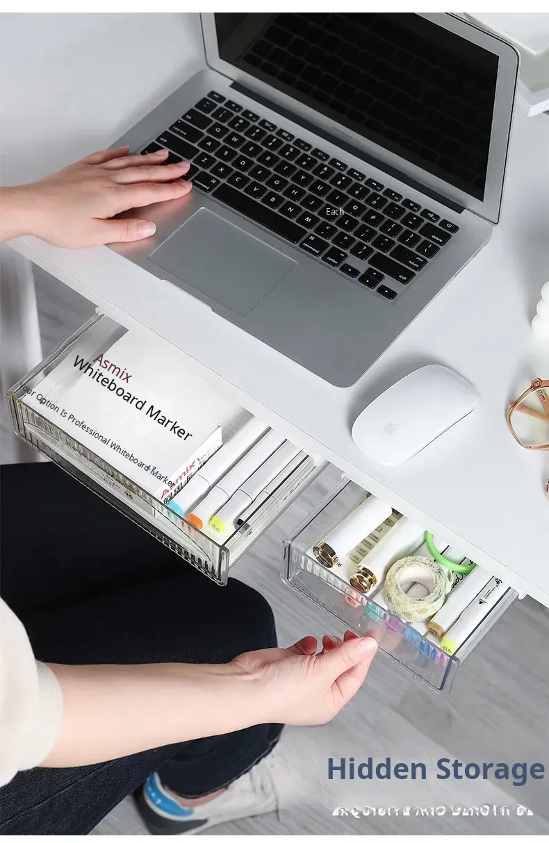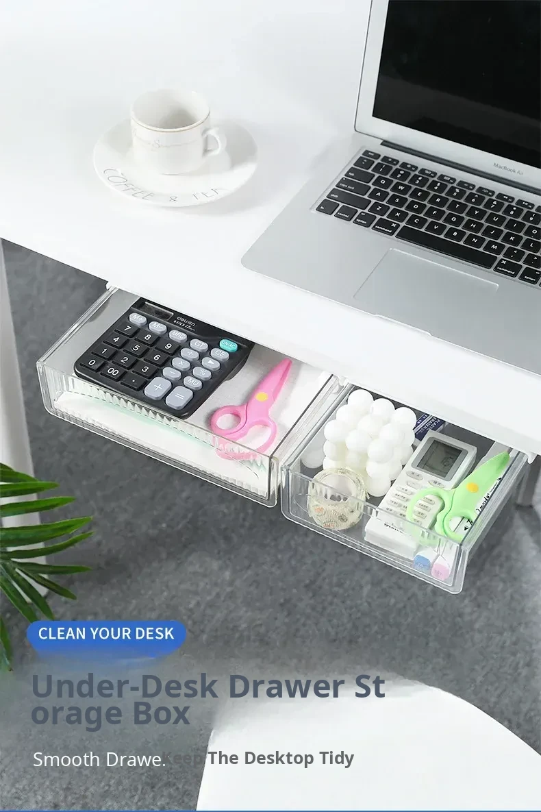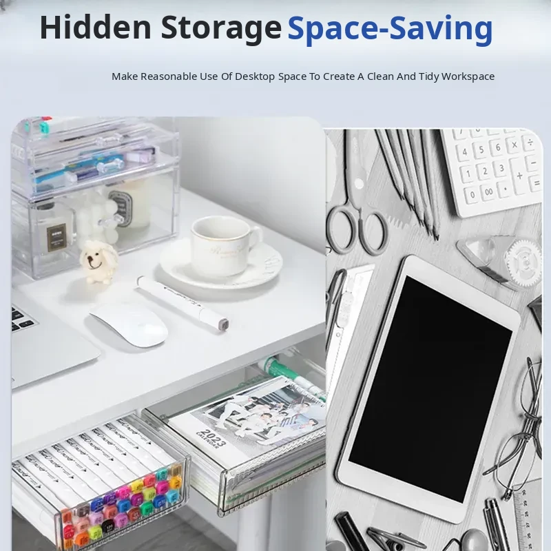 Invisible Under-Desk Drawer Organizer - Perfect for Small Office Desks, Adhesive Hidden Storage Solution for Neat and Tidy Workspaces