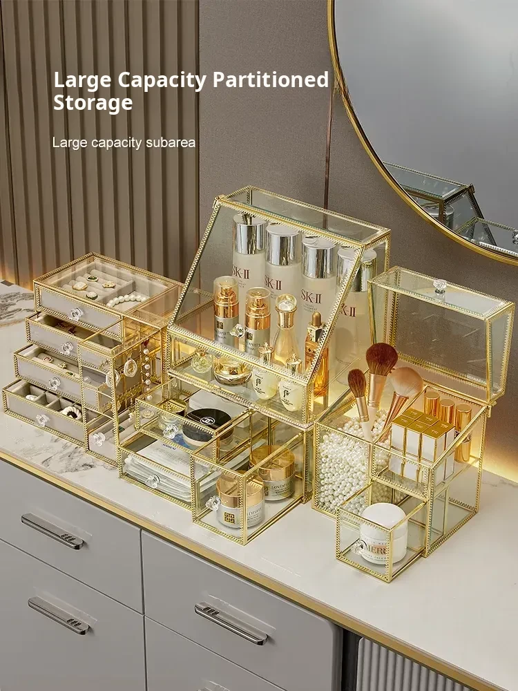 Gold Glass Horizontal Three-Drawer Unit