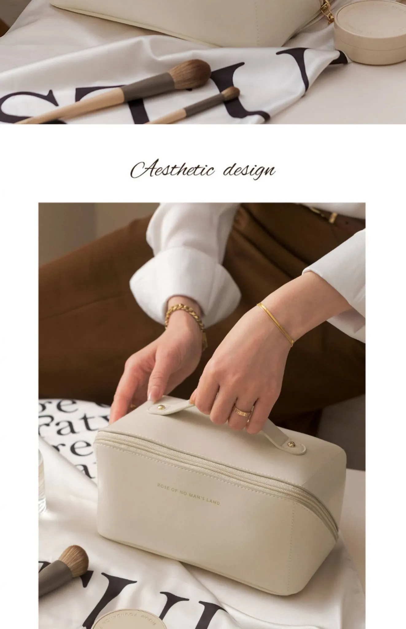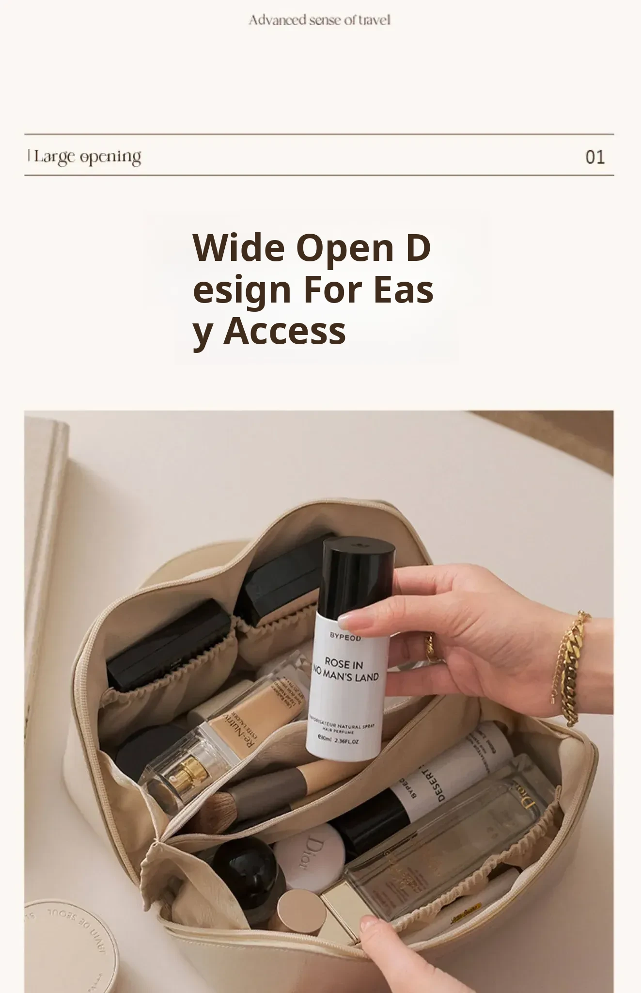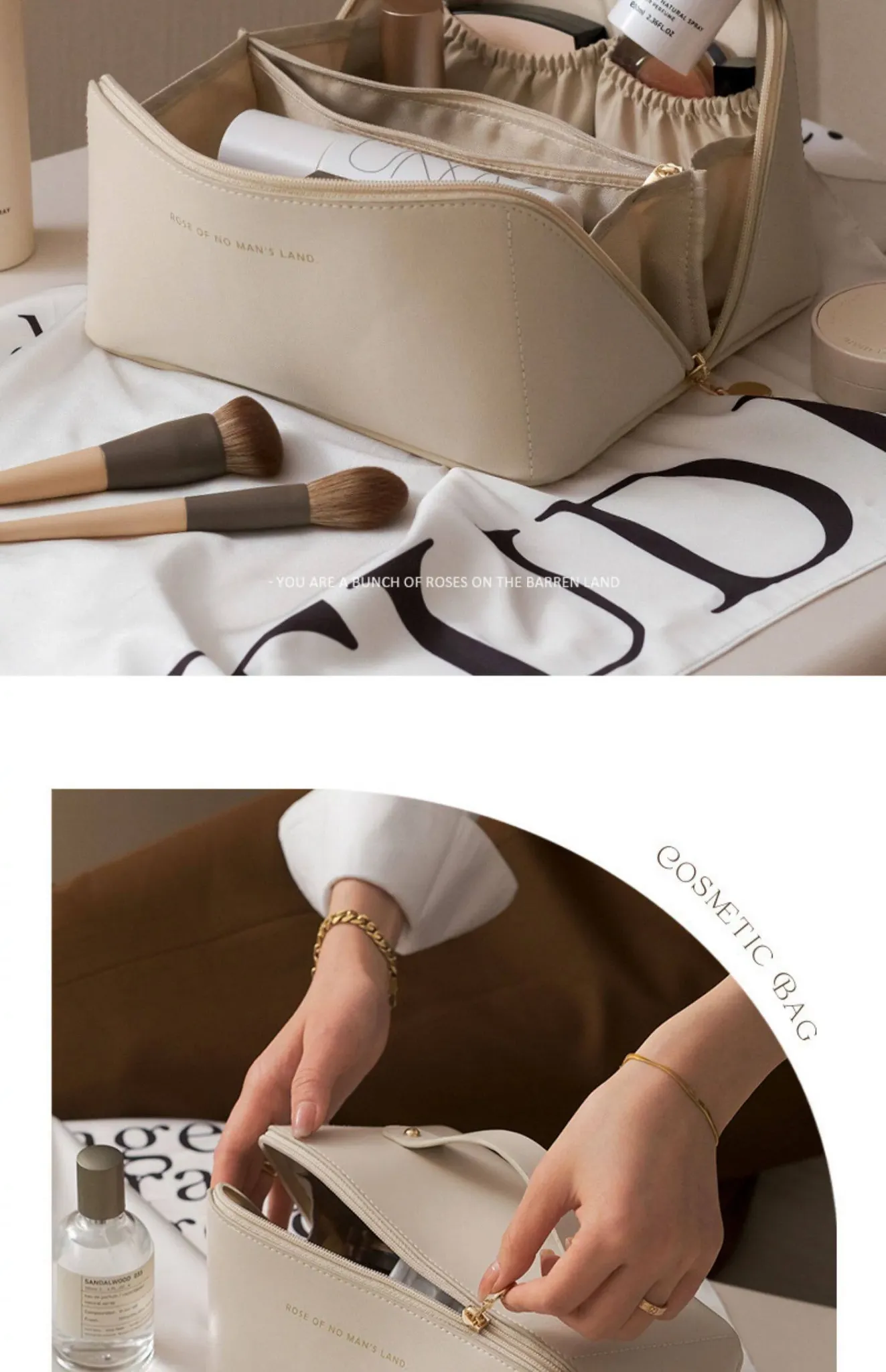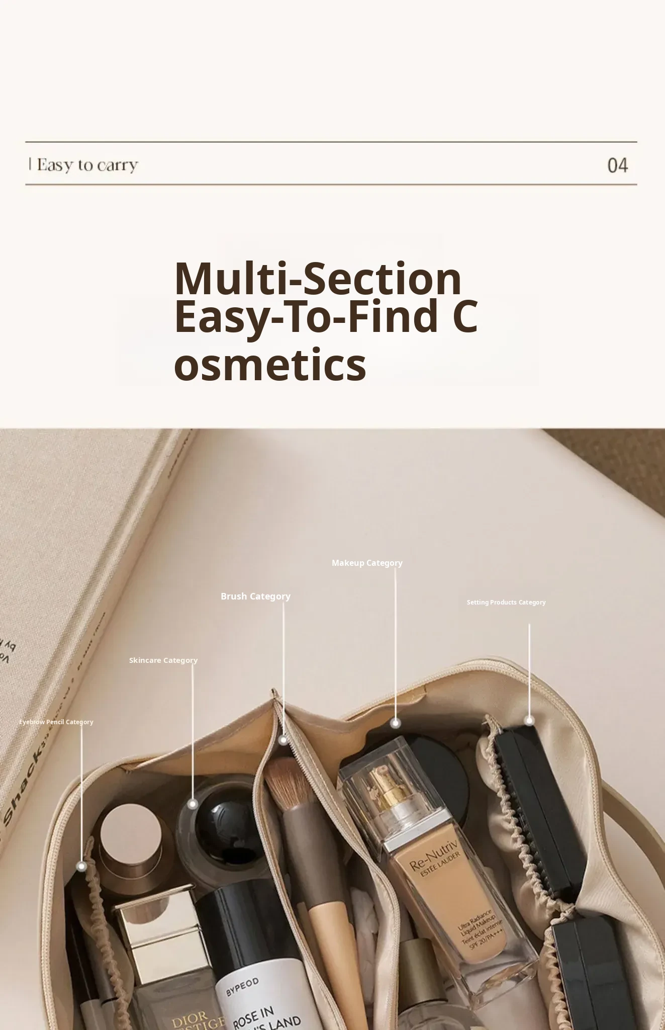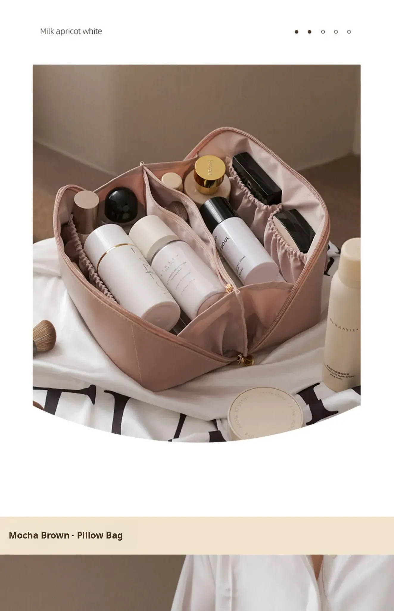 Milky Apricot White [Large Capacity, Classified Storage of Skin Care Products, Makeup Storage Bag]