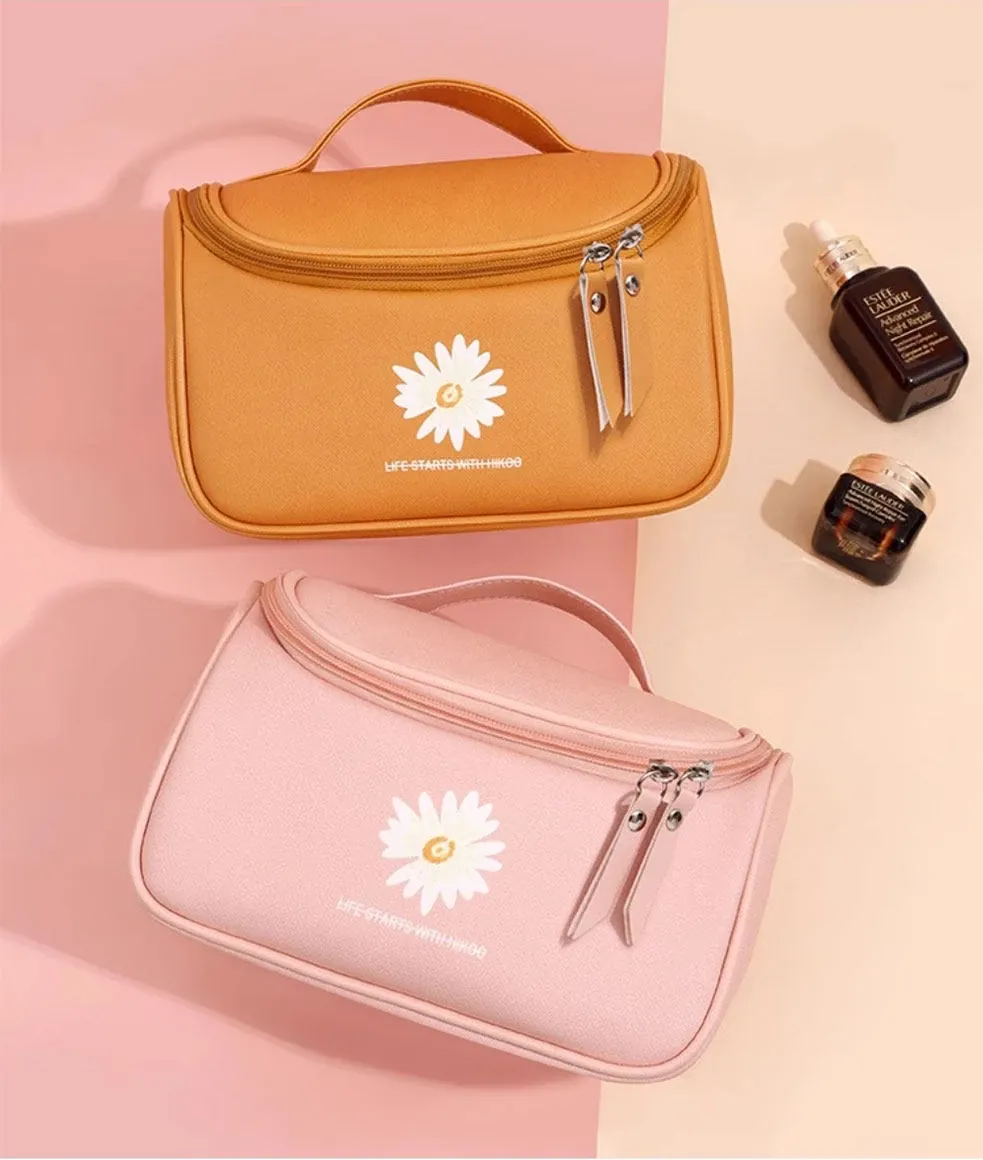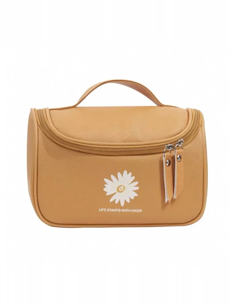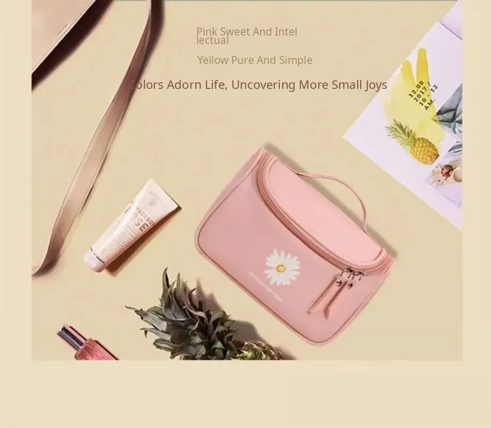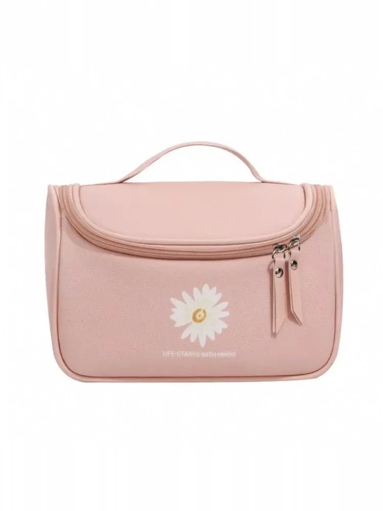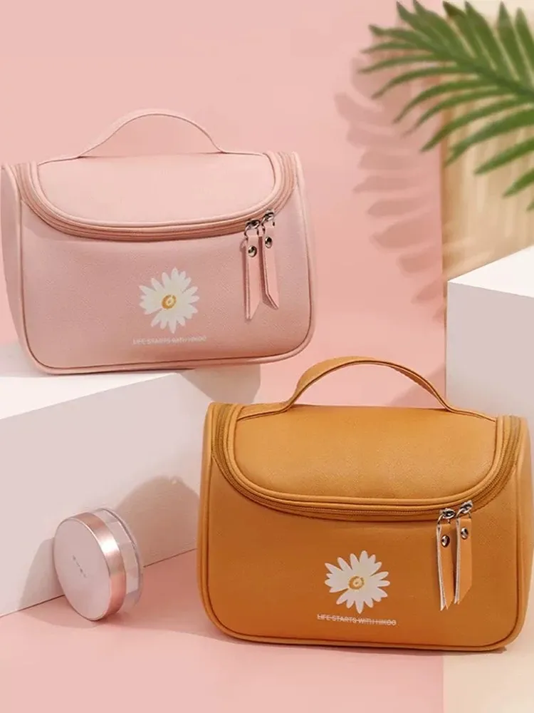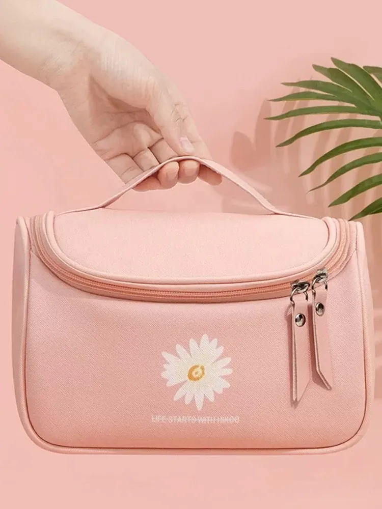Large Capacity Makeup Bag for Women - Trendy Daisy Design, Portable Travel Cosmetic Organizer, Waterproof Toiletry Bag, Perfect for Korean Style Enthusiasts