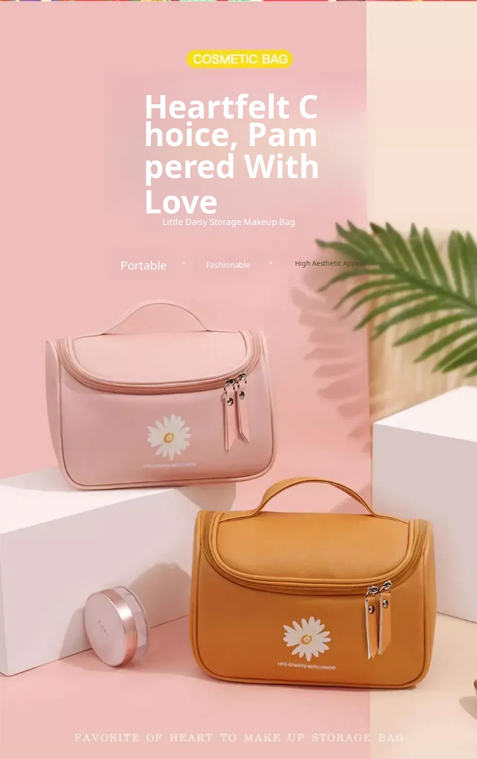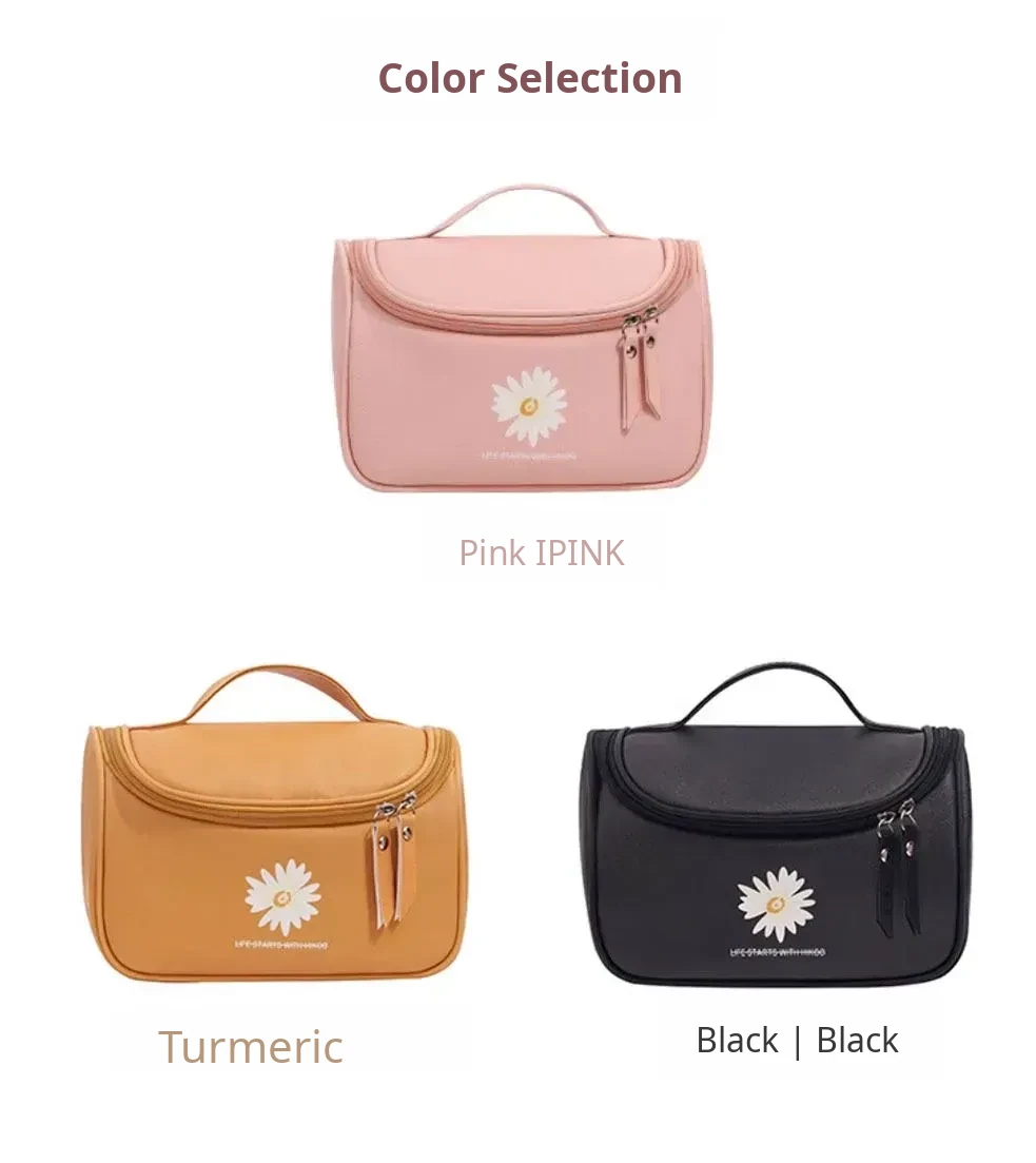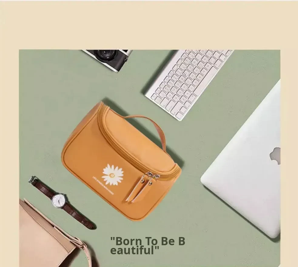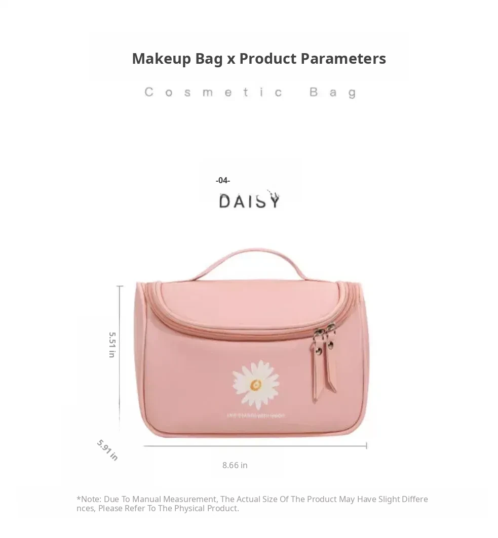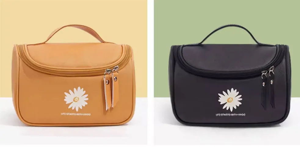 Large Capacity Makeup Bag for Women - Trendy Daisy Design, Portable Travel Cosmetic Organizer, Waterproof Toiletry Bag, Perfect for Korean Style Enthusiasts