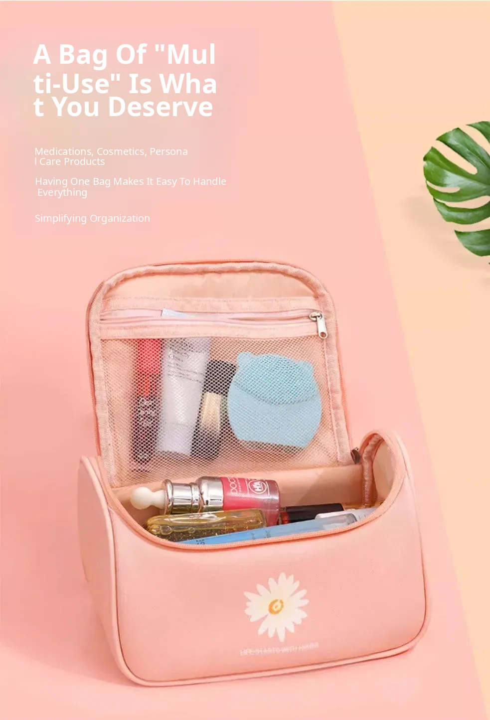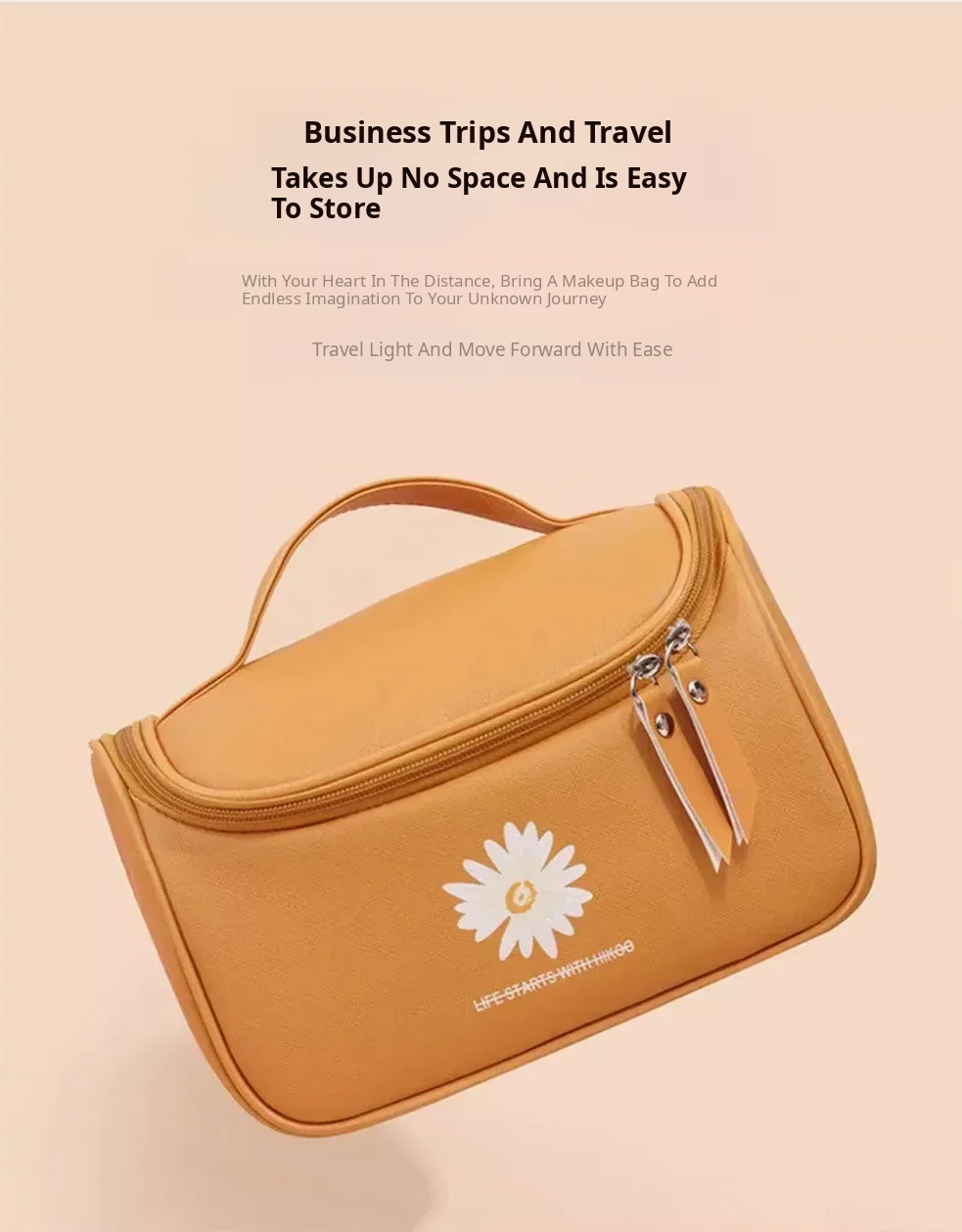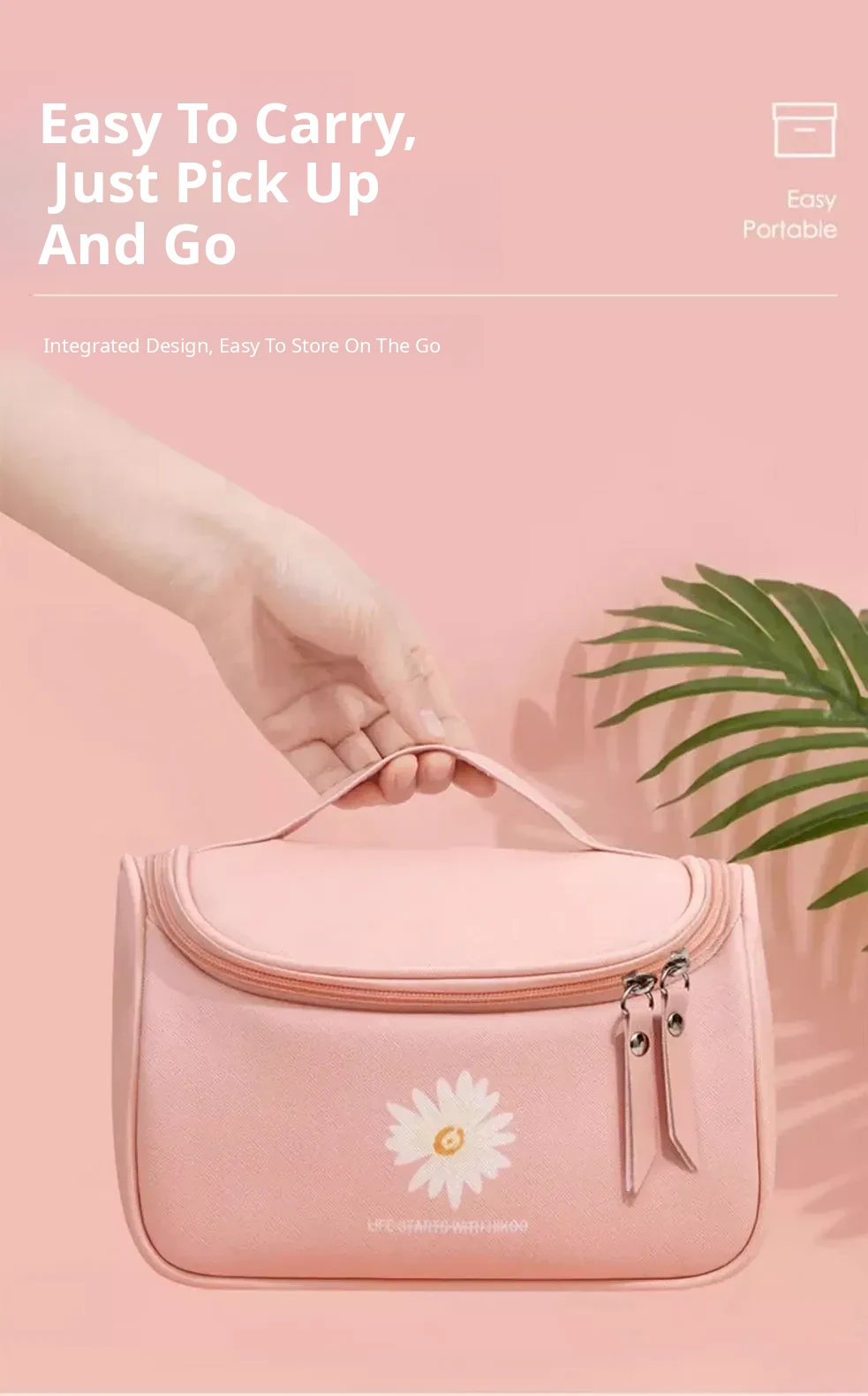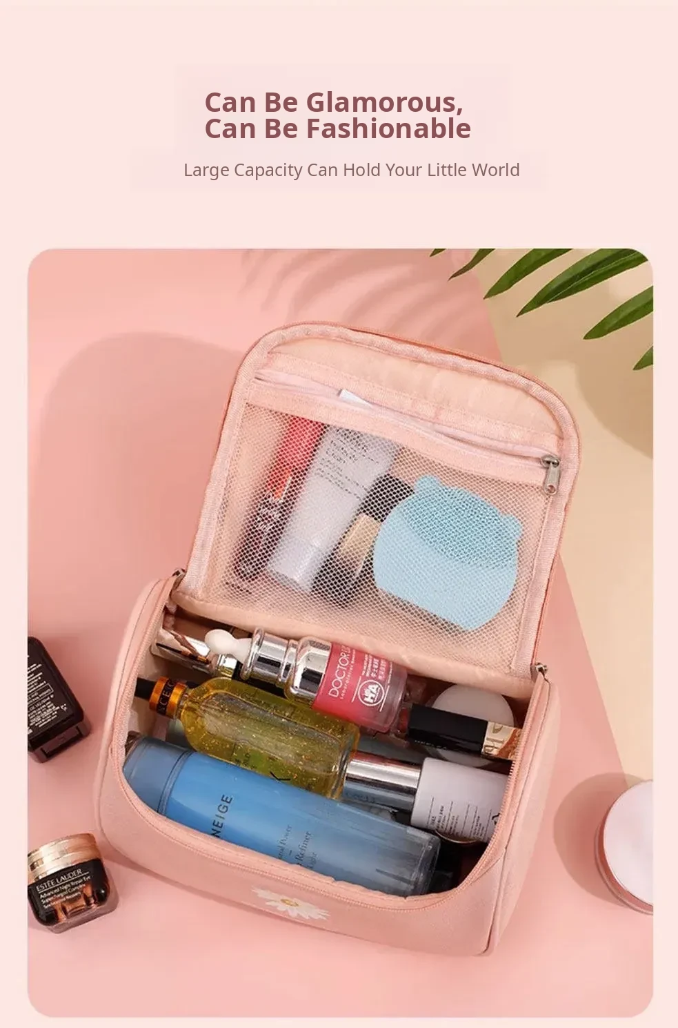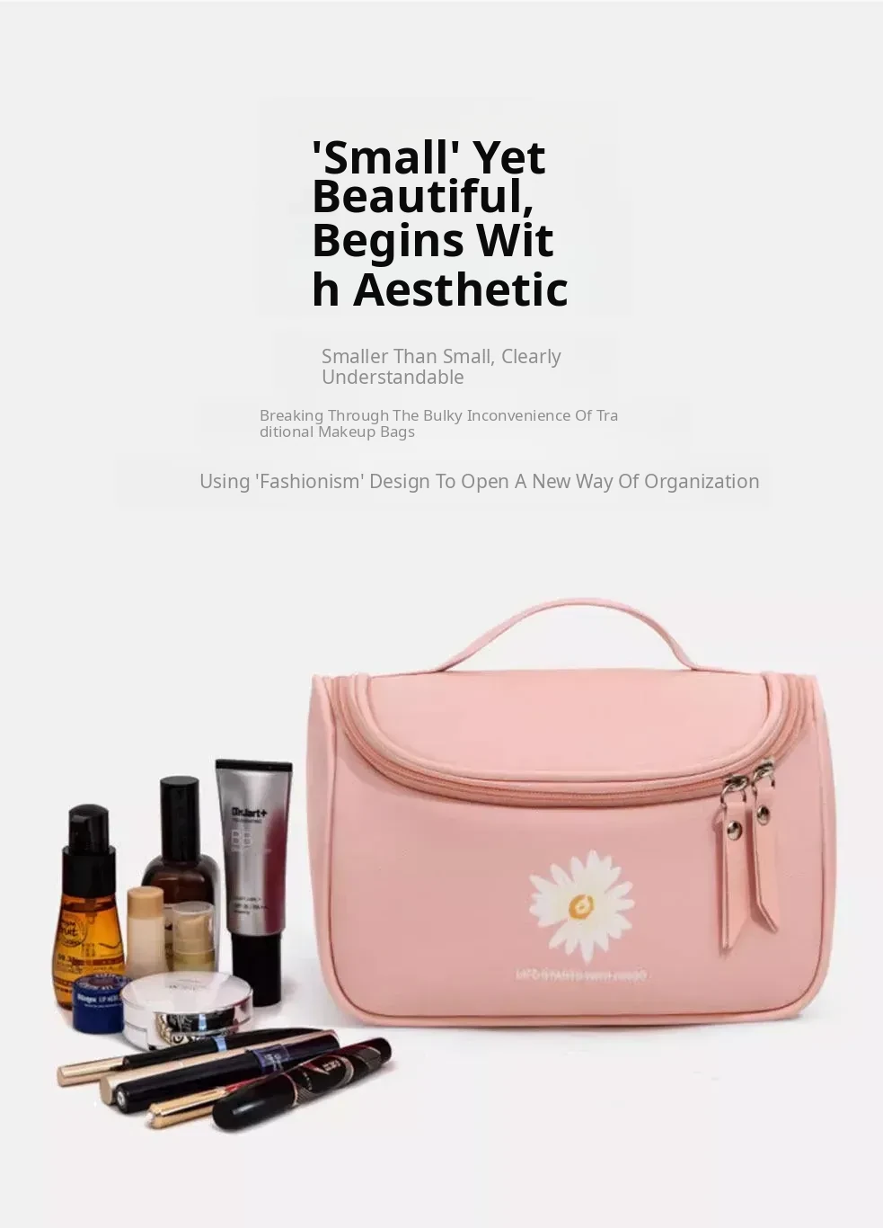 Large Capacity Makeup Bag for Women - Trendy Daisy Design, Portable Travel Cosmetic Organizer, Waterproof Toiletry Bag, Perfect for Korean Style Enthusiasts