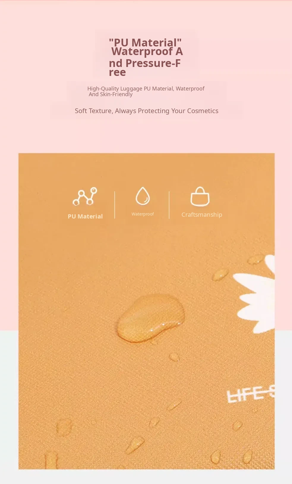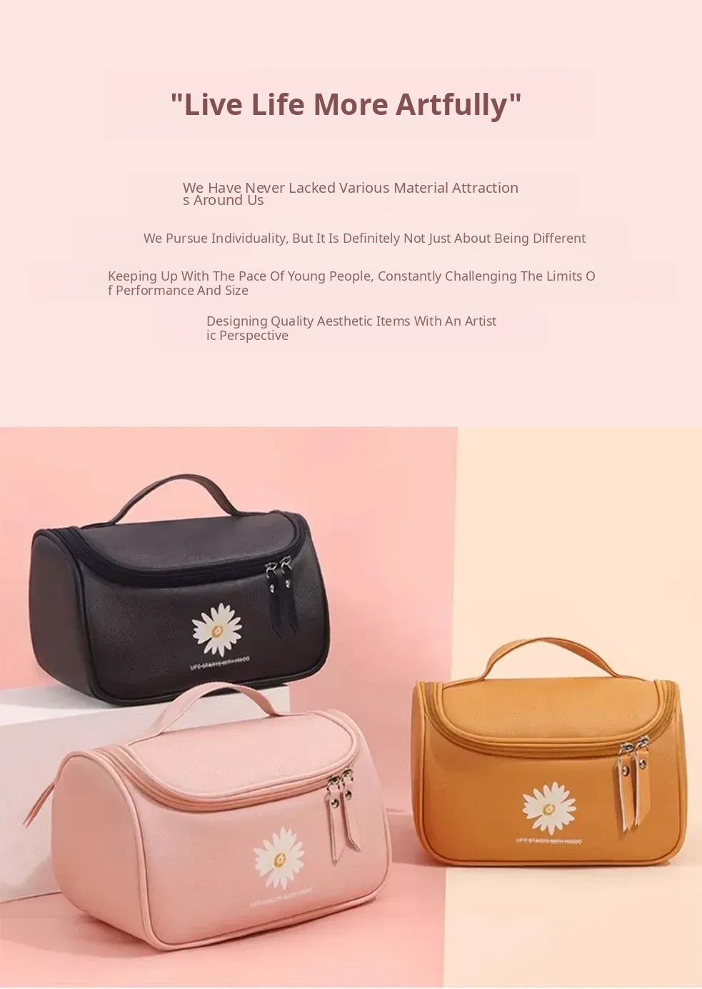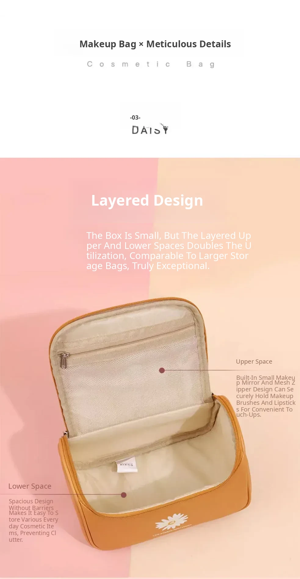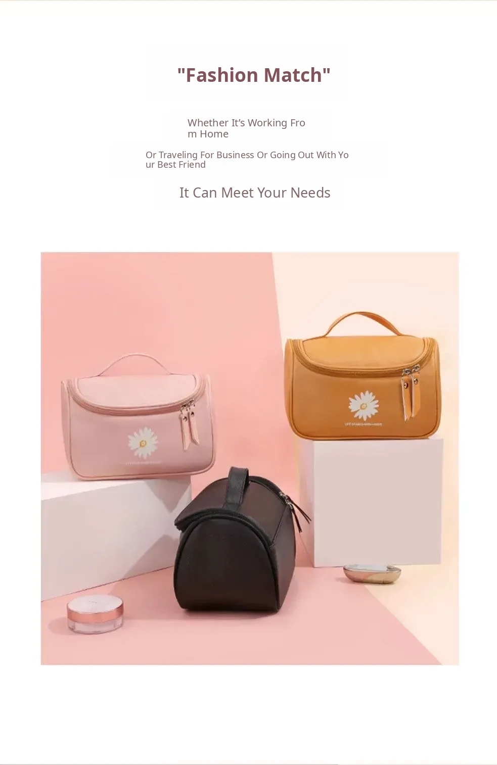 Large Capacity Makeup Bag for Women - Trendy Daisy Design, Portable Travel Cosmetic Organizer, Waterproof Toiletry Bag, Perfect for Korean Style Enthusiasts