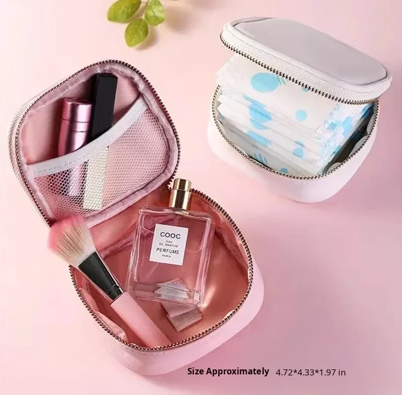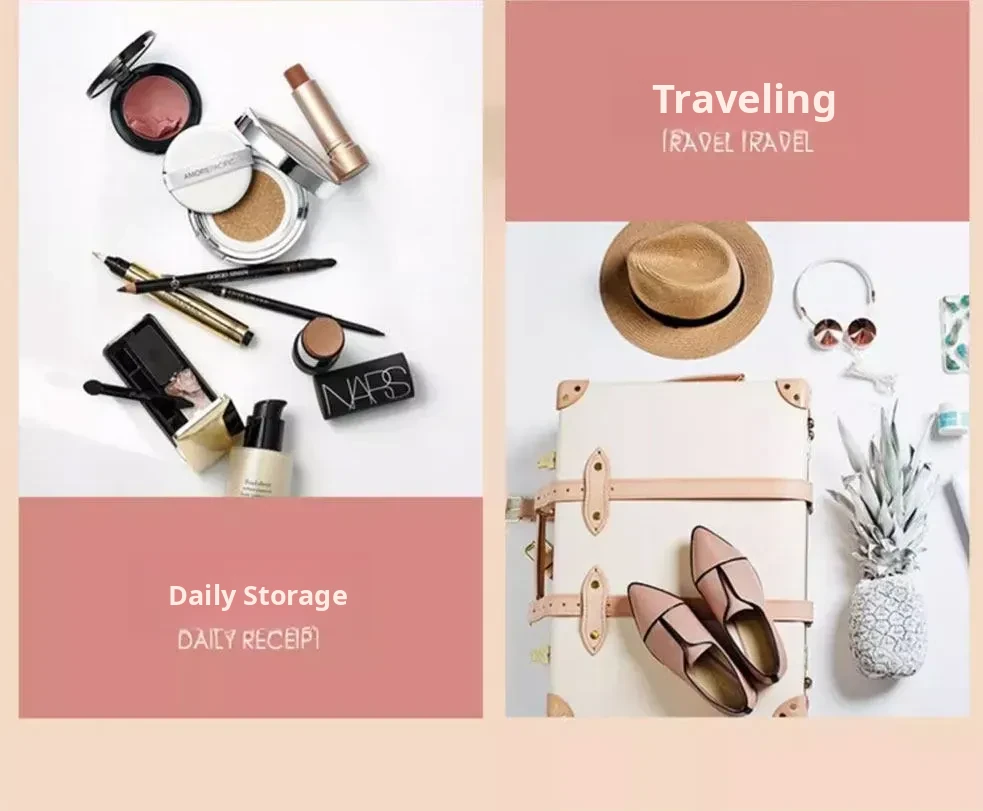 [Girly Pink + Simple White]-Small Cosmetic Bag