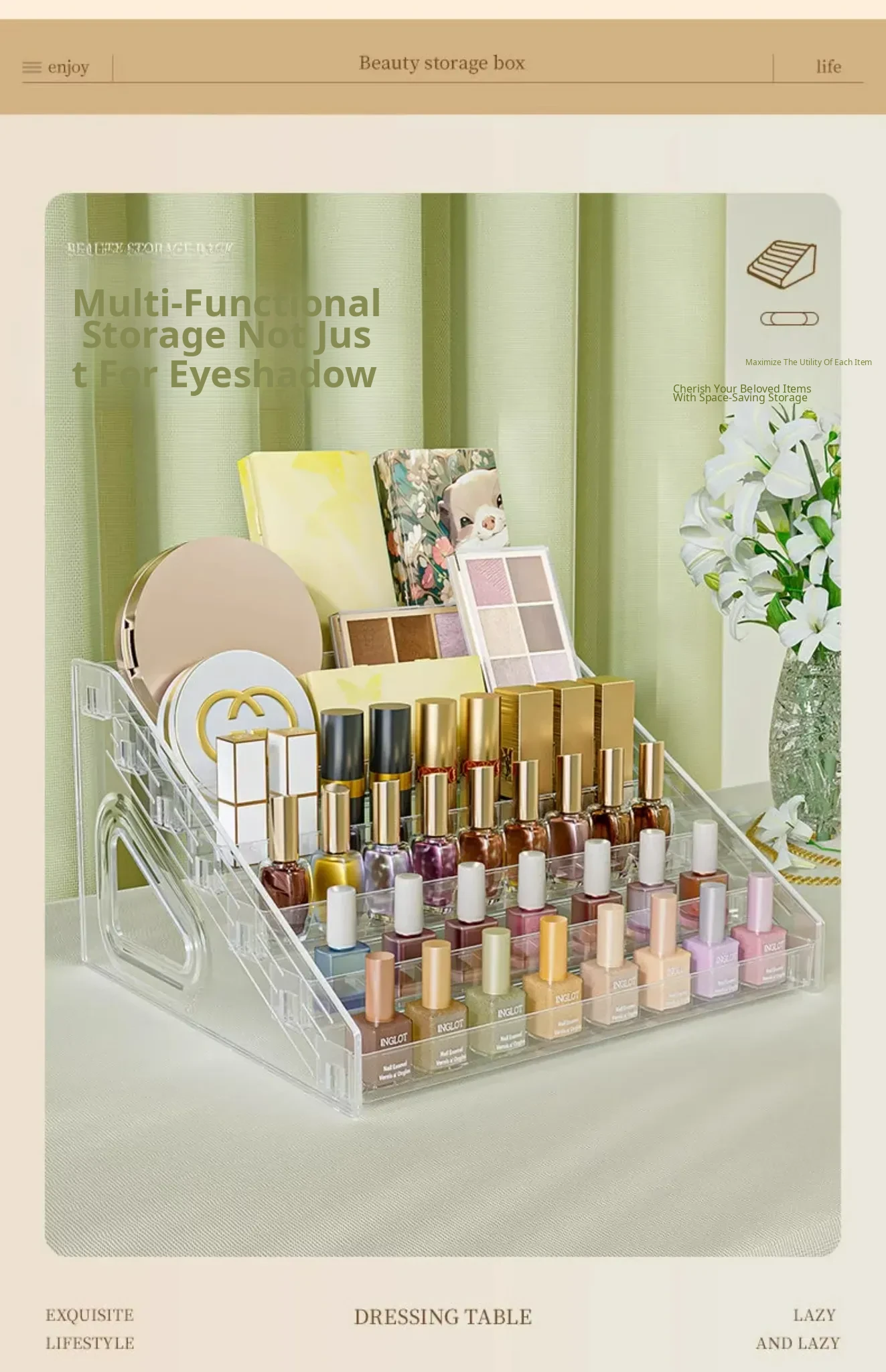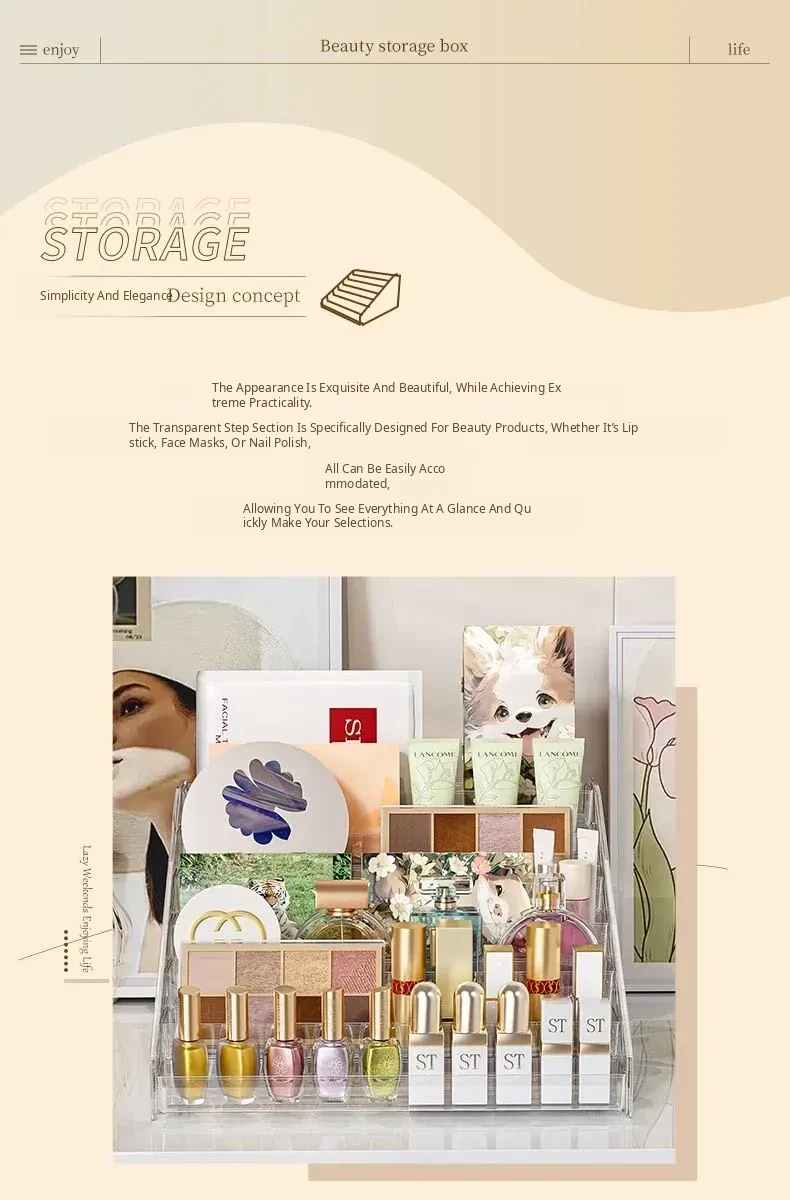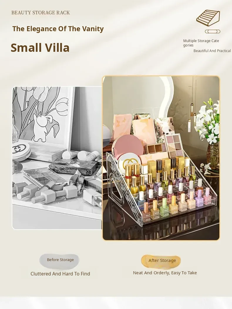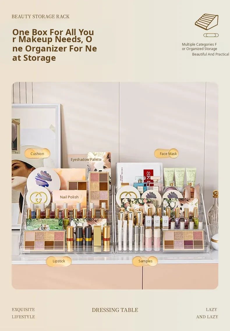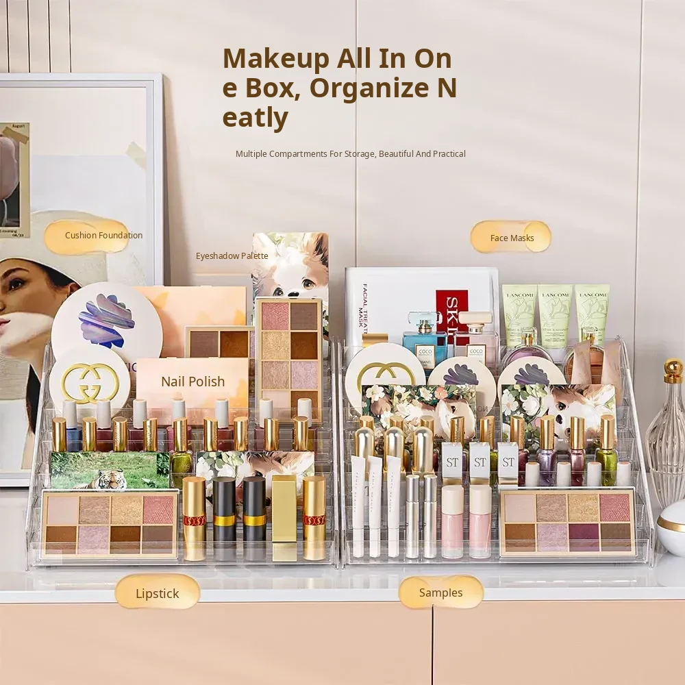 Multi-Layer Acrylic Makeup Organizer - Desktop Eyeshadow, Foundation, Lipstick, and Nail Polish Display Stand for Effortless Beauty Storage and Elegant Decoration