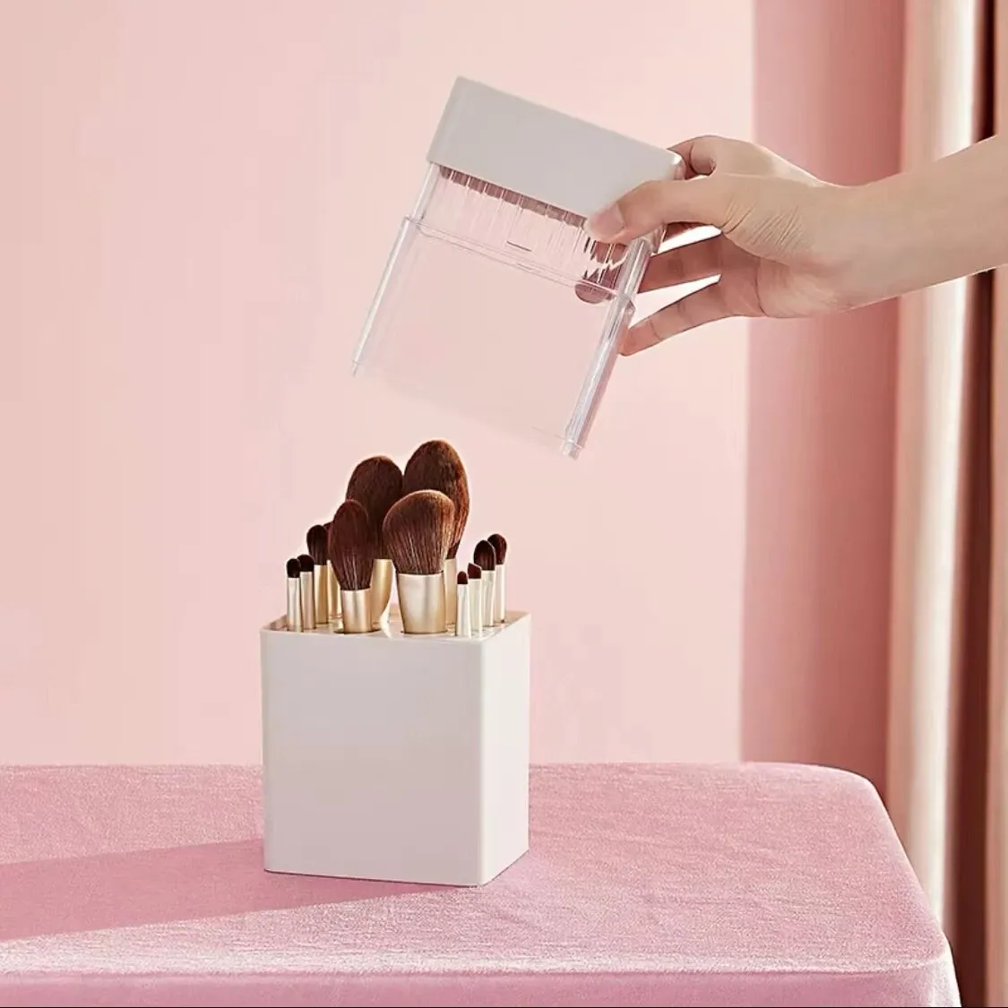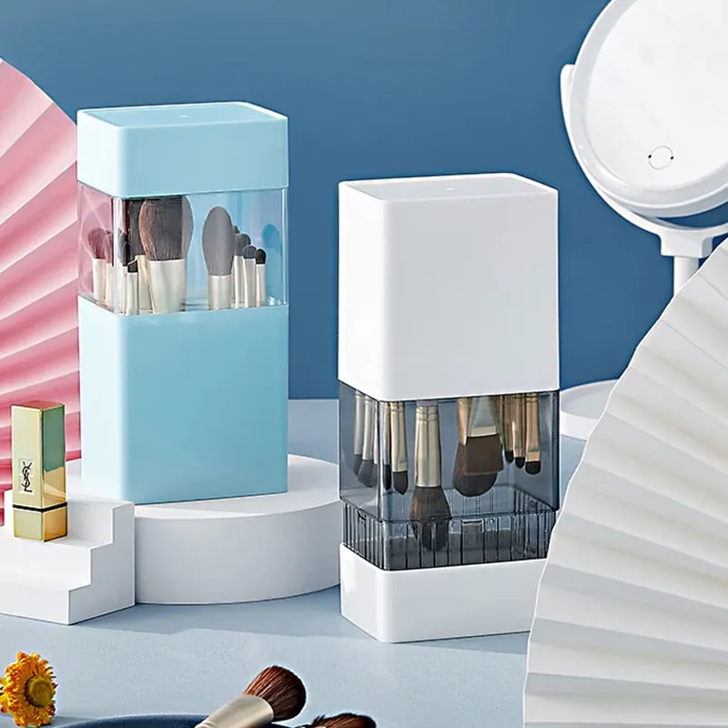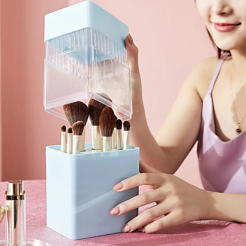 Nordic-Inspired Makeup Brush Holder with Lid - Dustproof Storage for Eyebrow Pencils, Lipsticks, and Cosmetic Brushes - Stylish and Functional Organizer for Your Beauty Essentials