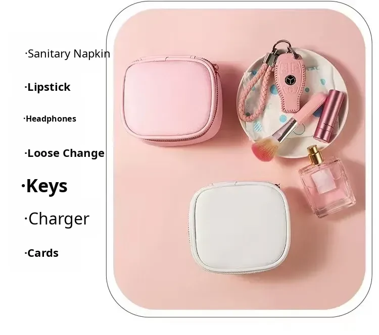 Sky Blue(White Storage Bag (Suitable for Sanitary Napkins, Lipstick, Keys))