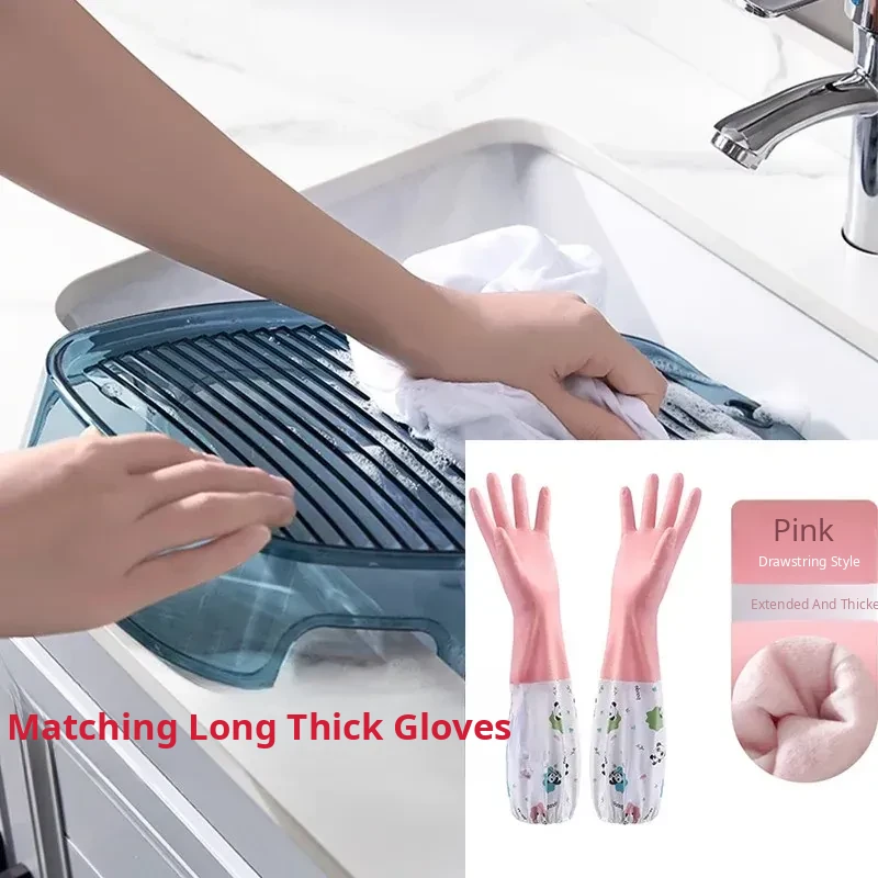 Aqua Blue Washboard + Pink Long Thickened Gloves
