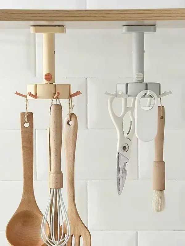 Revitalize Your Kitchen with 360° Rotating Hooks - No Drilling Required! Perfect for Hanging Knives, Spoons, and More!