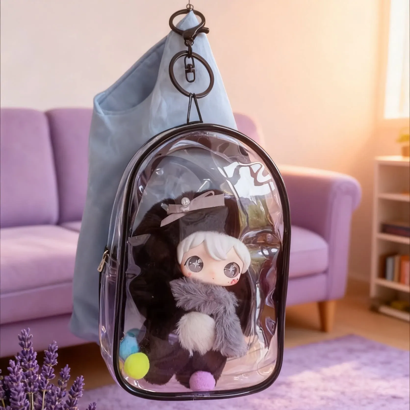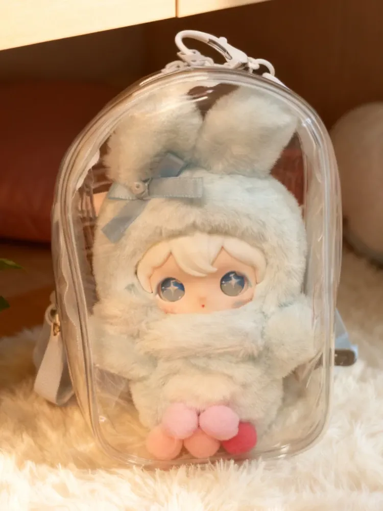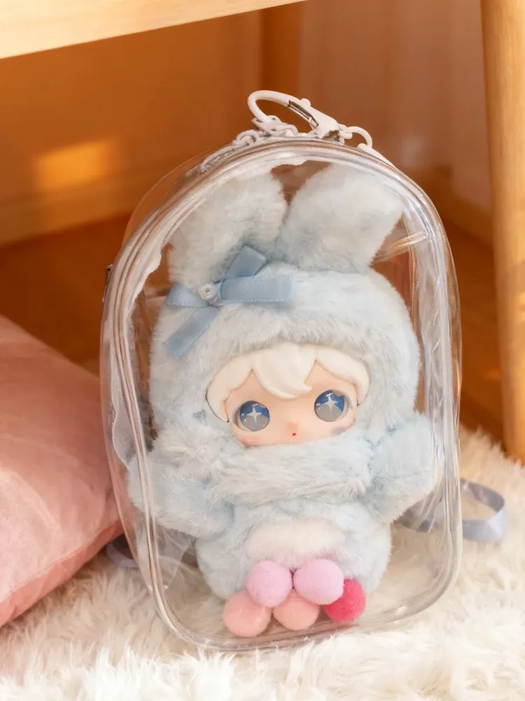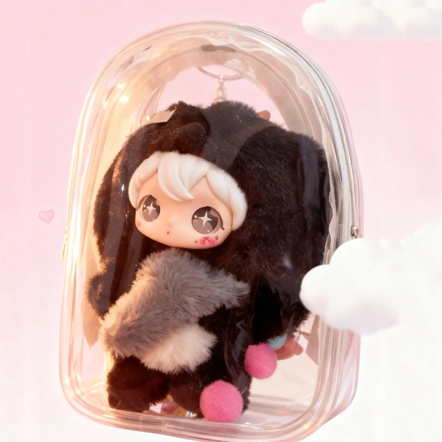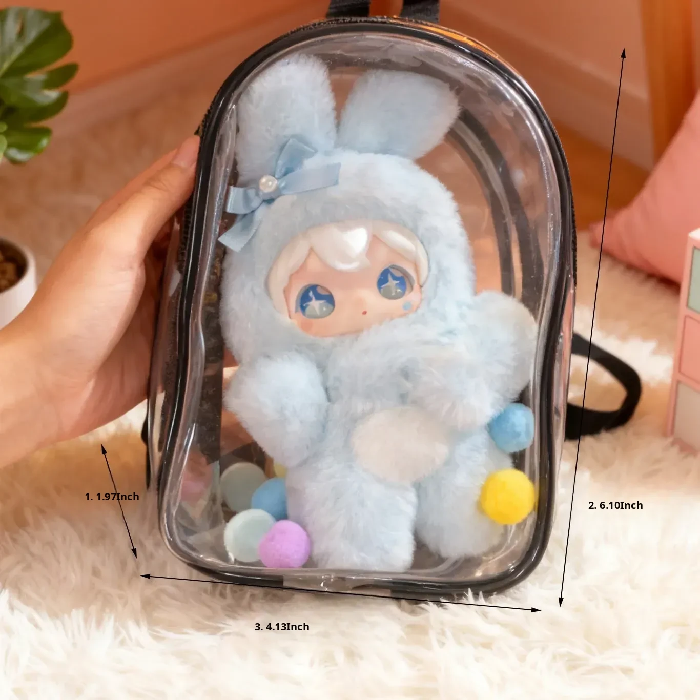 Rabbit Sparkle Thickened Naked Bag - Transparent + Lobster Keychain + Pom Pom