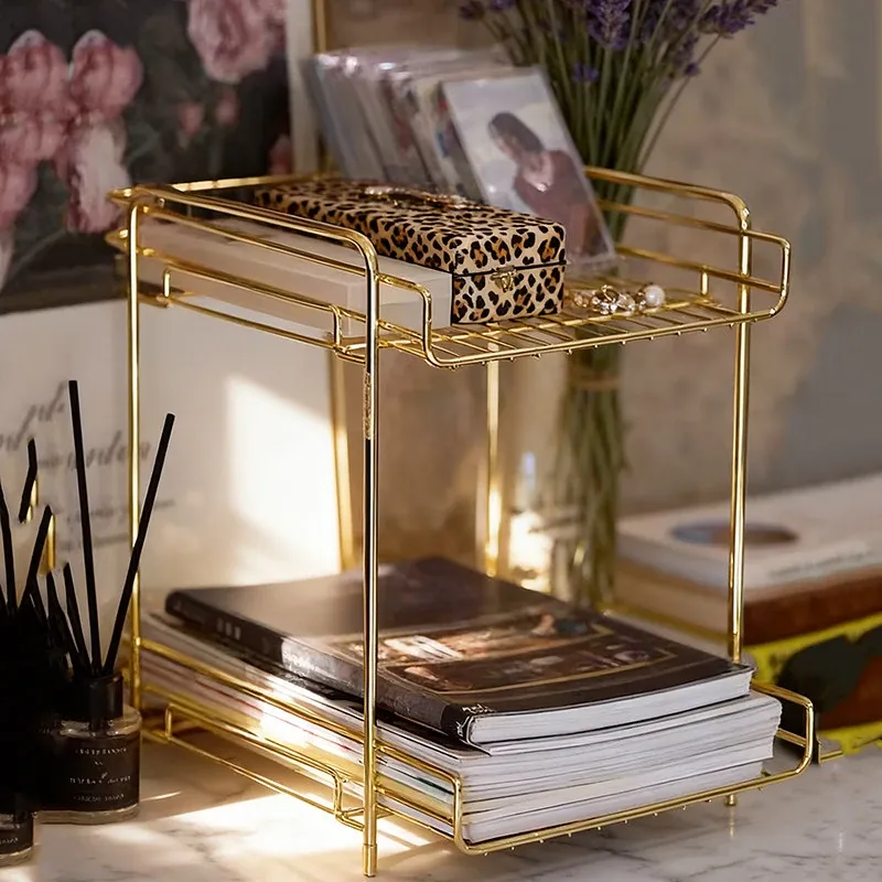 Stylish Desktop Storage Organizer - Multi-Tier Iron Bookshelf for Home & Office, Perfect for Desktop, Bedside & Bay Window - Keep Your Space Neat and Organized!
