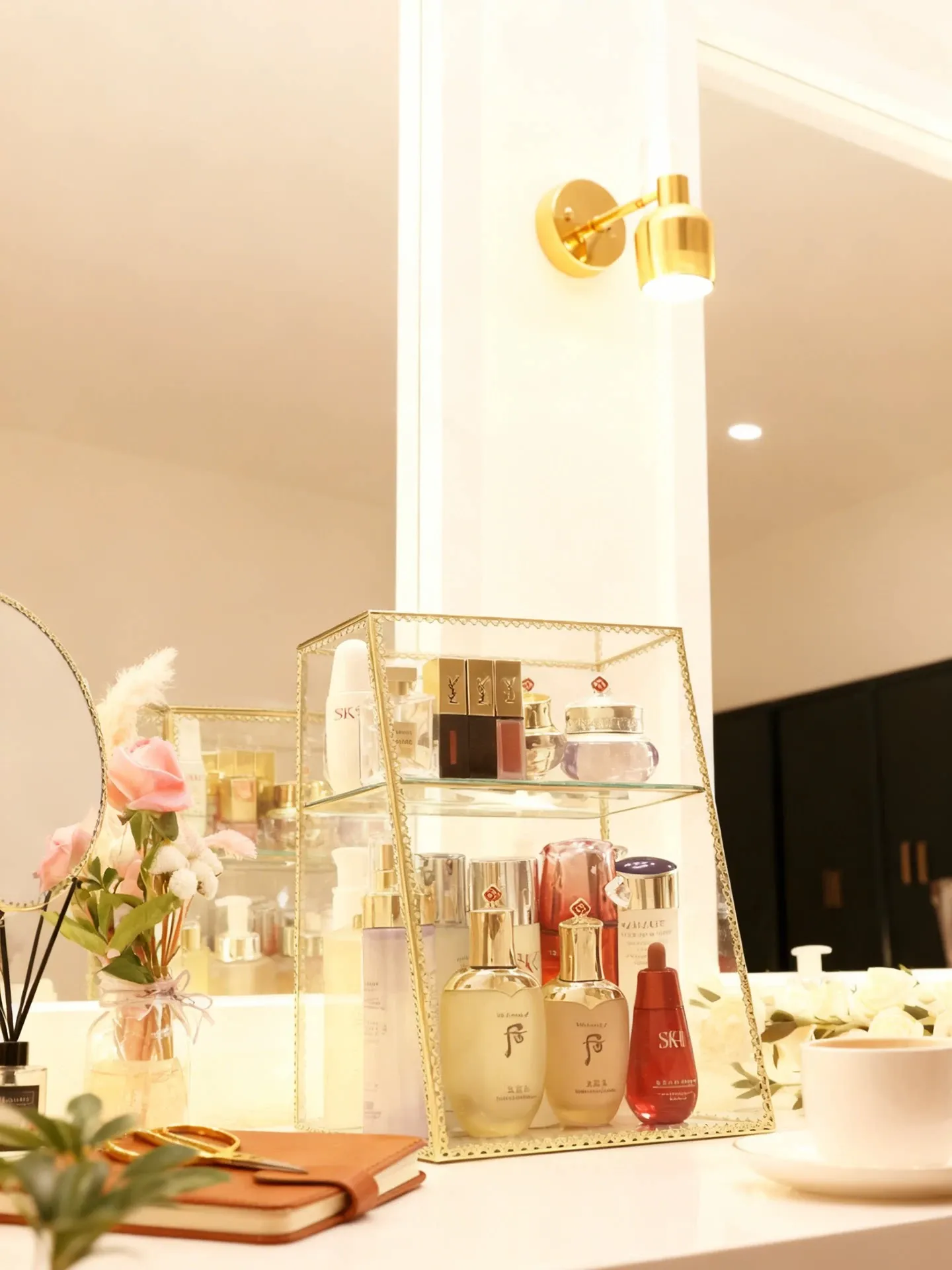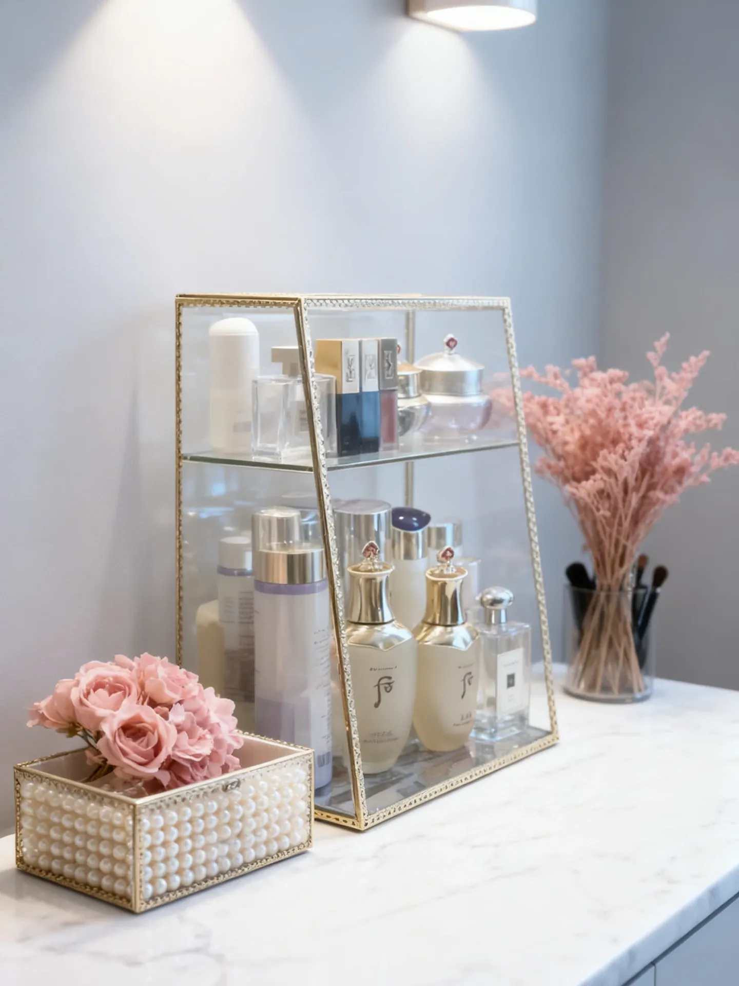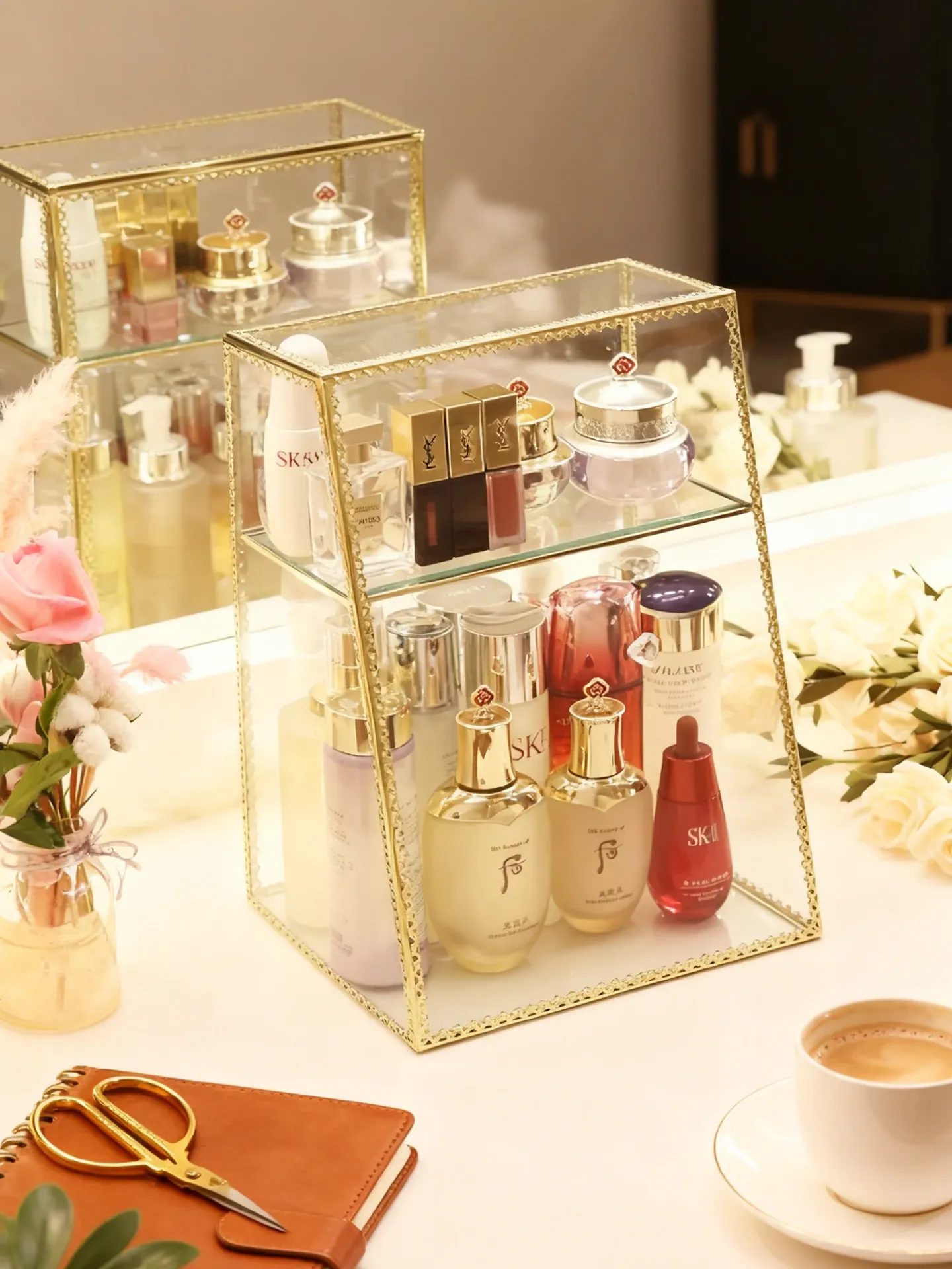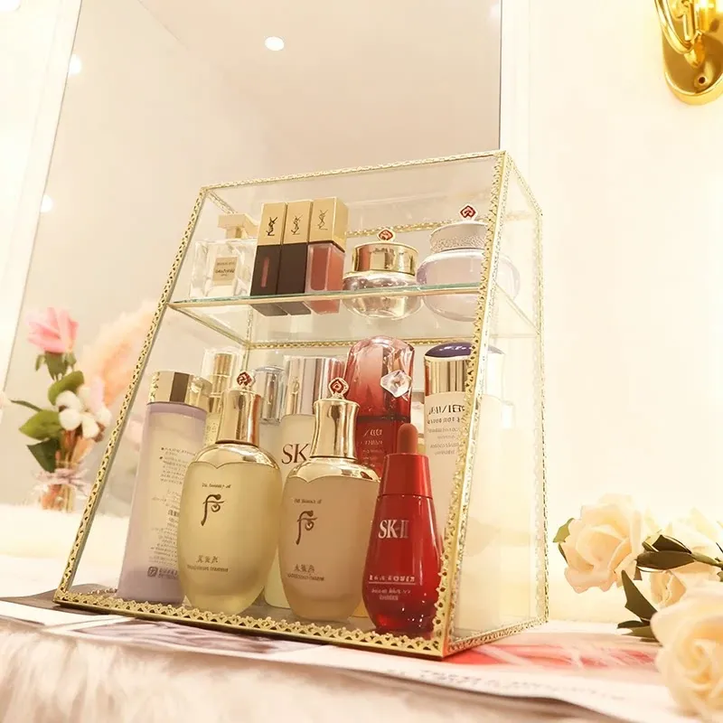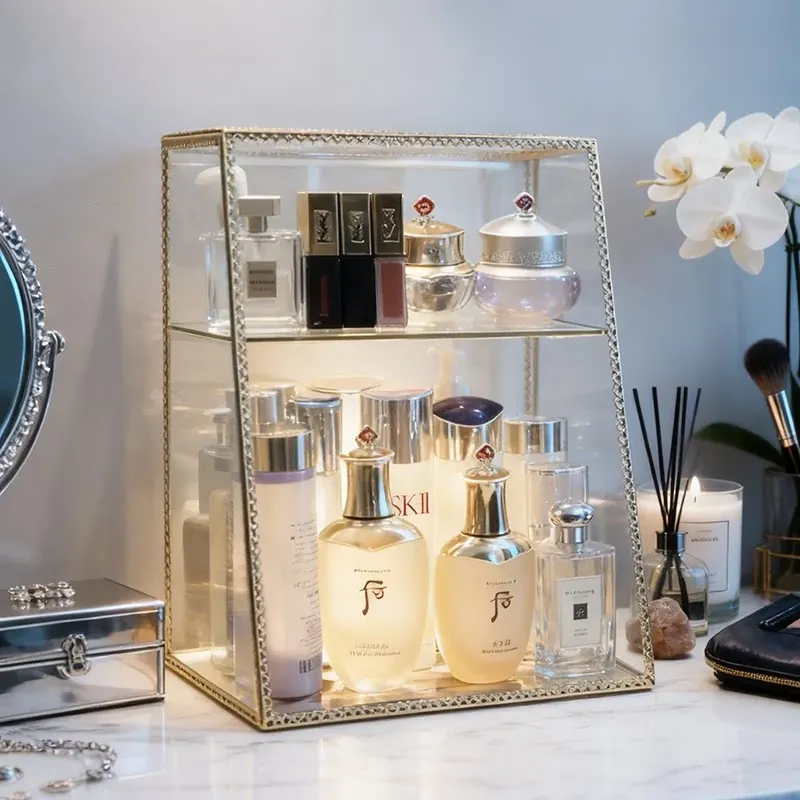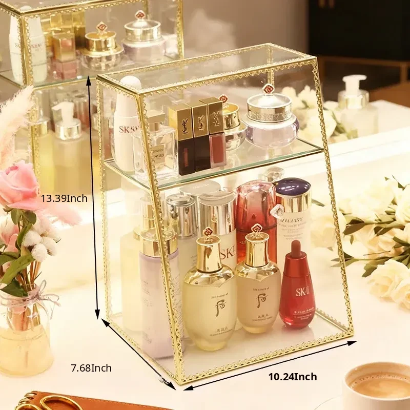 Stylish High-End Cosmetic Storage Box - Large Capacity Dust-Proof Glass Organizer with Drawer for Your Elegant Desktop Decor