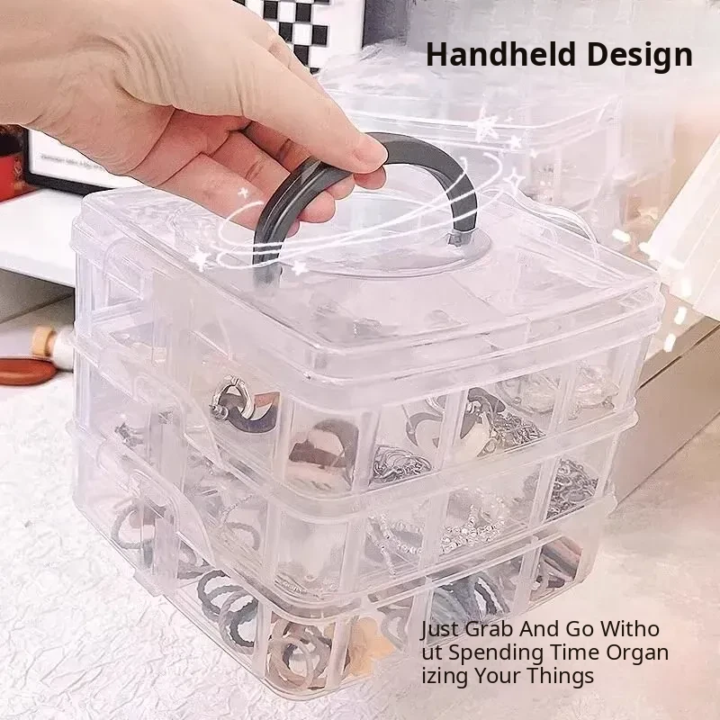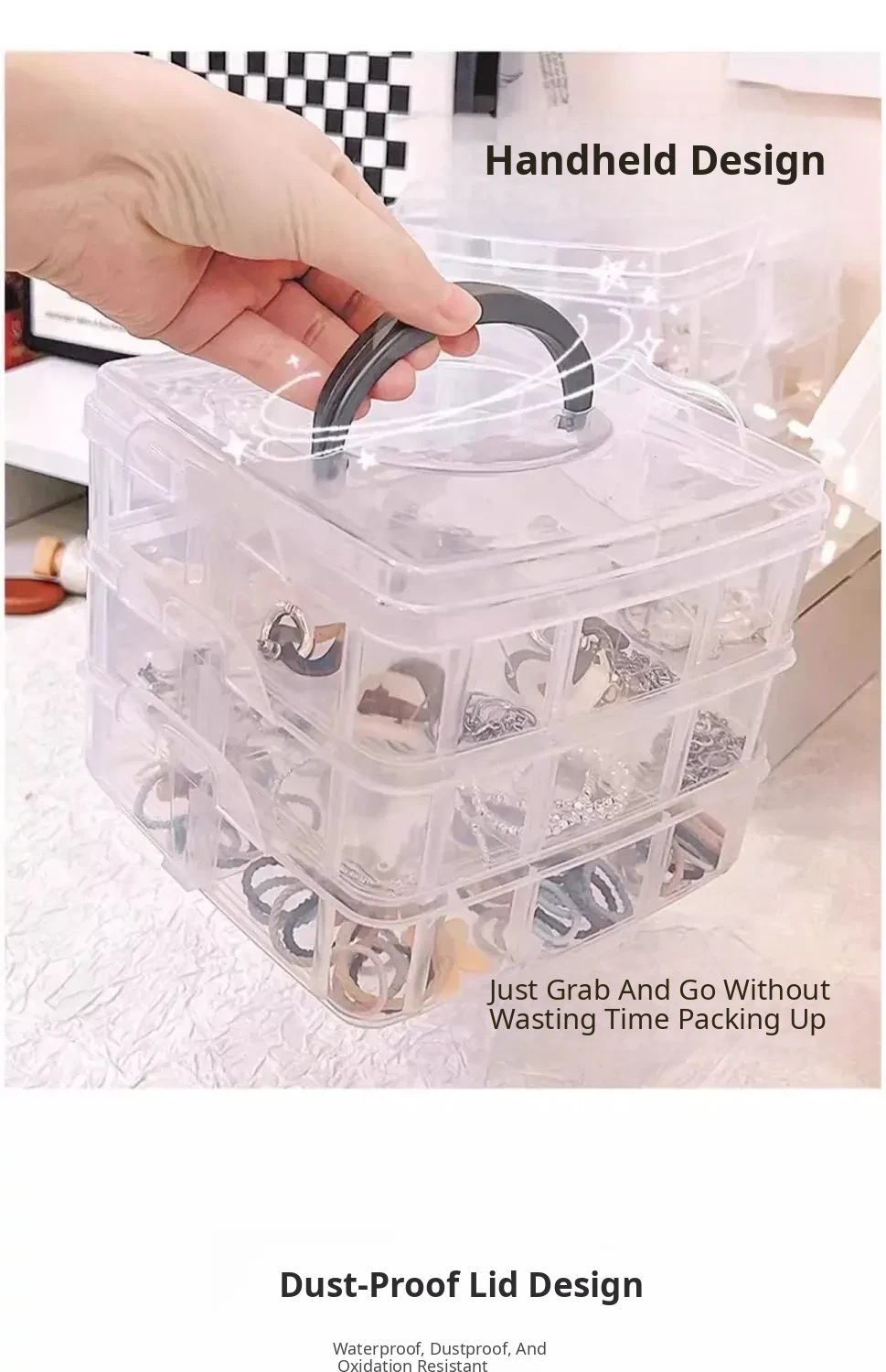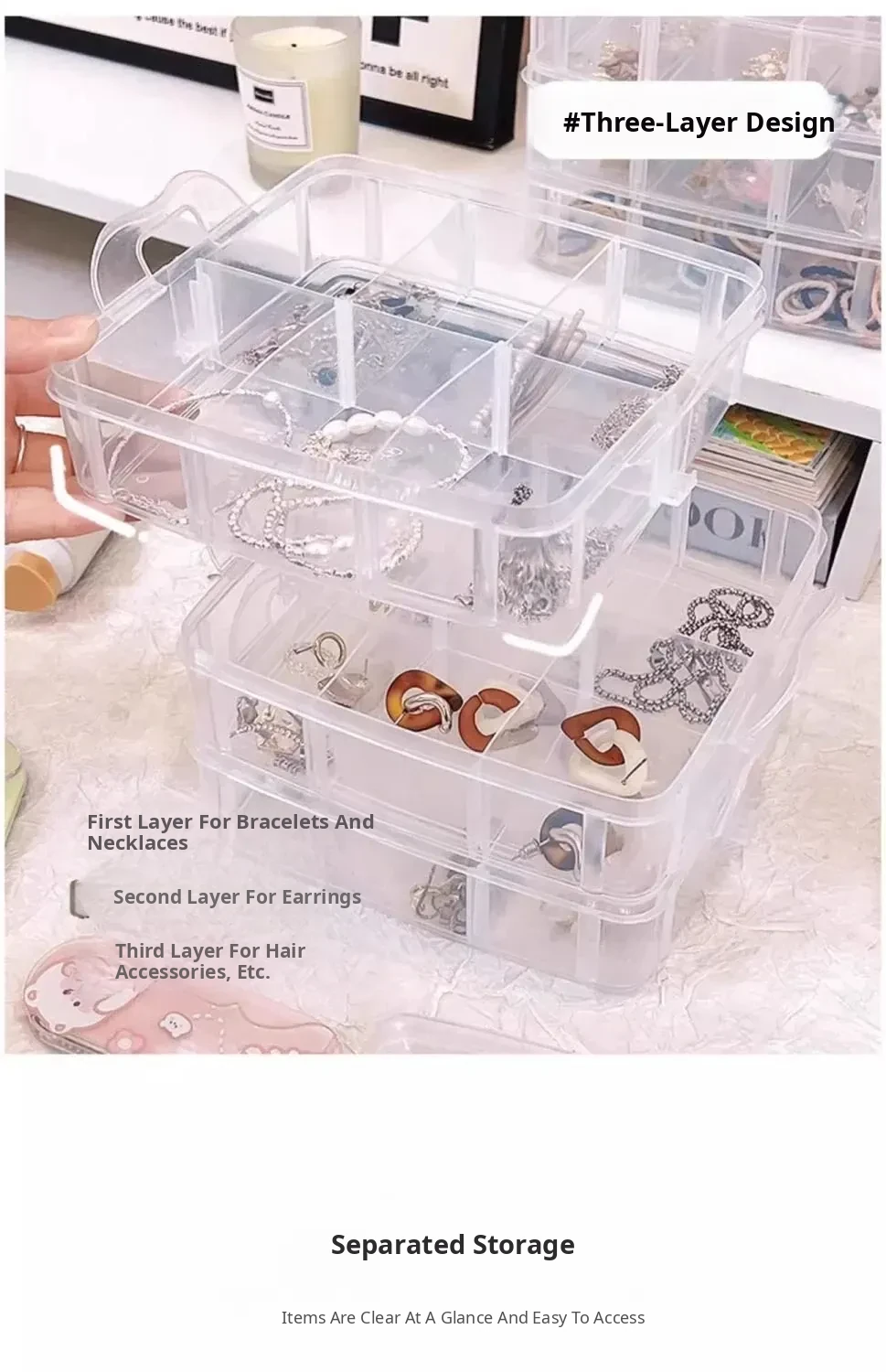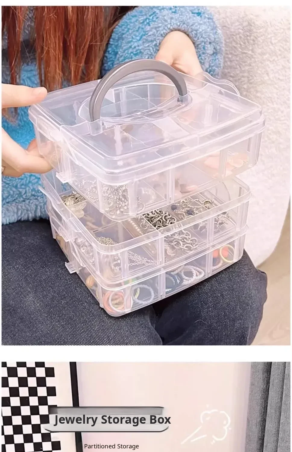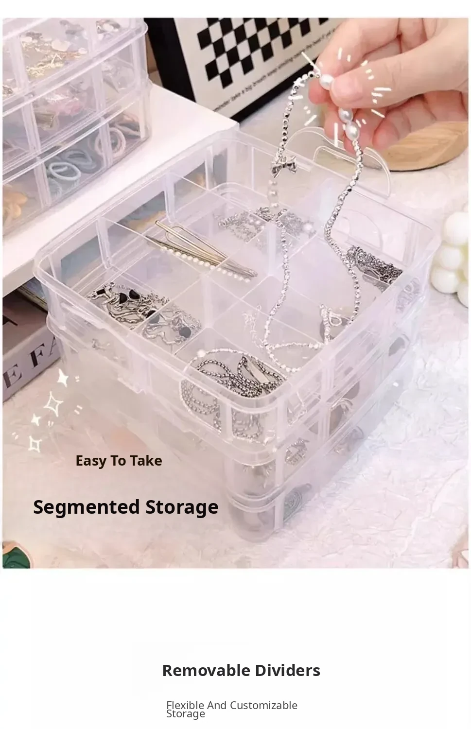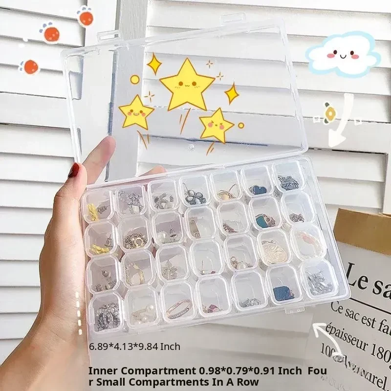 Transparent Grid Anti-Oxidation Jewelry Box for Rings, Earrings, Ear Studs, and Necklaces - Portable and Divisible Accessory Organizer