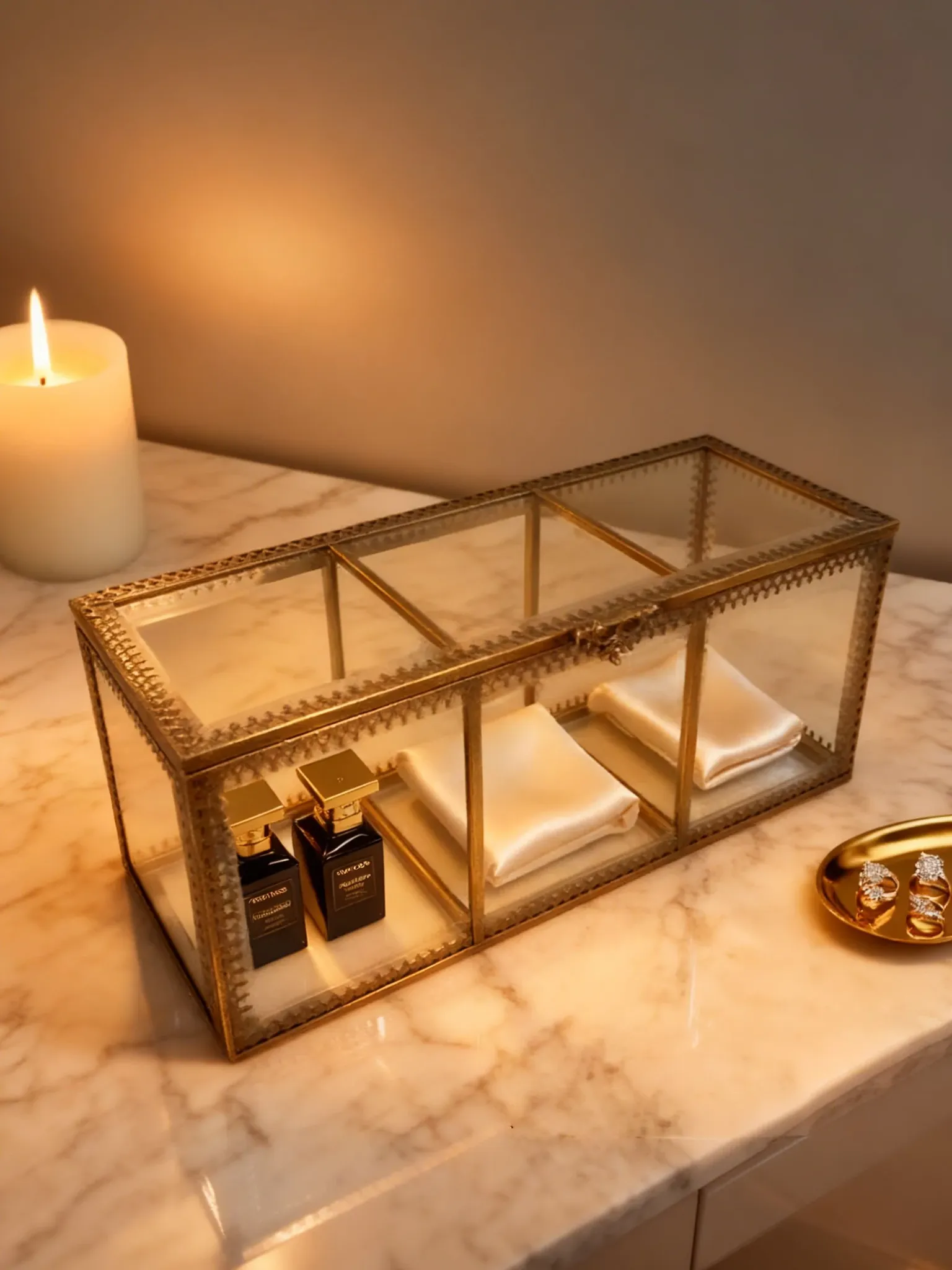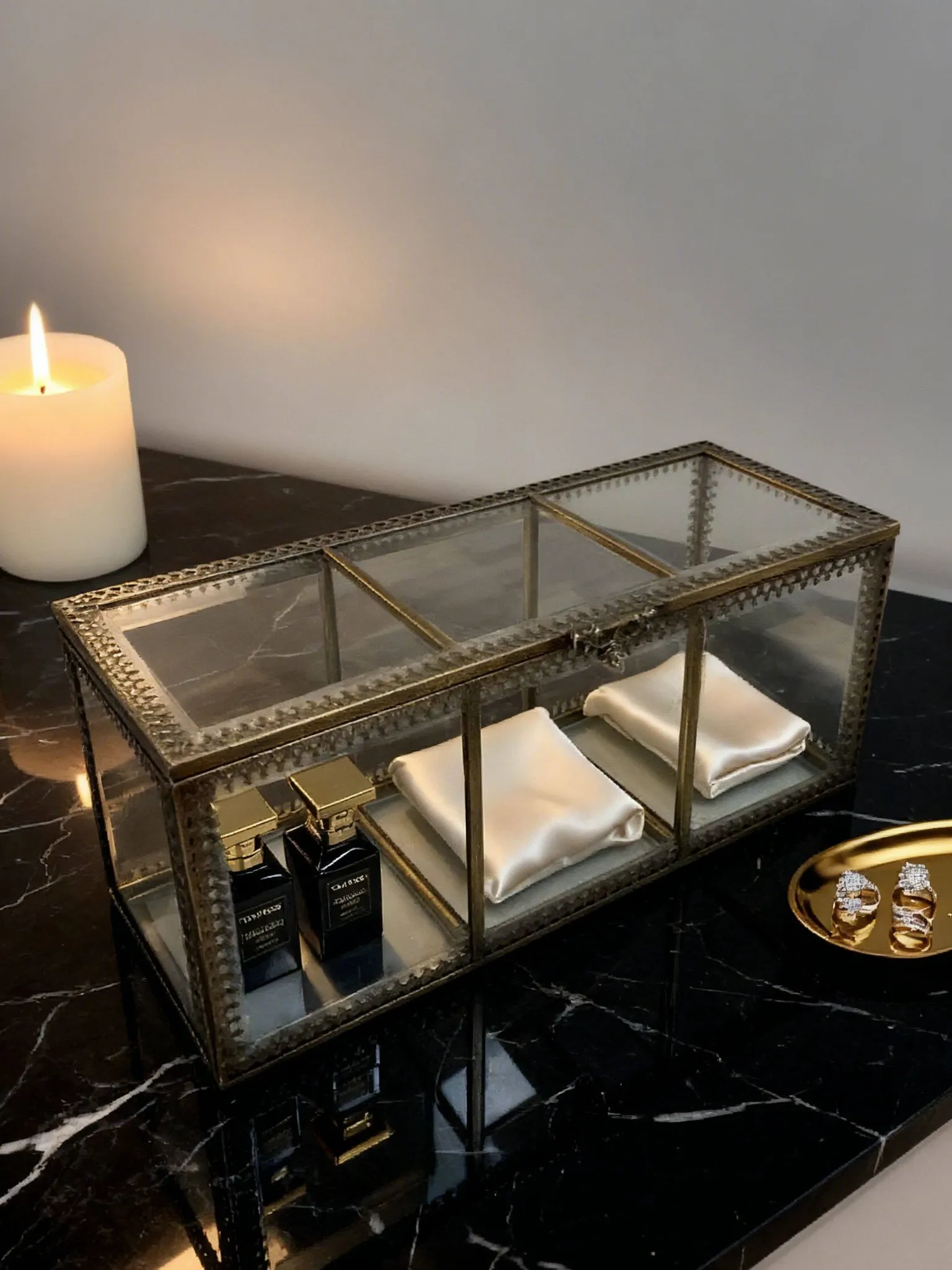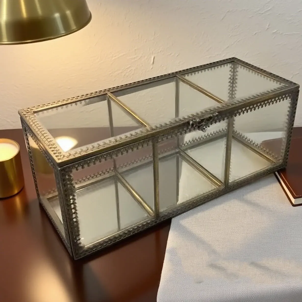 Bronze Three-Compartment Cotton Swab Box