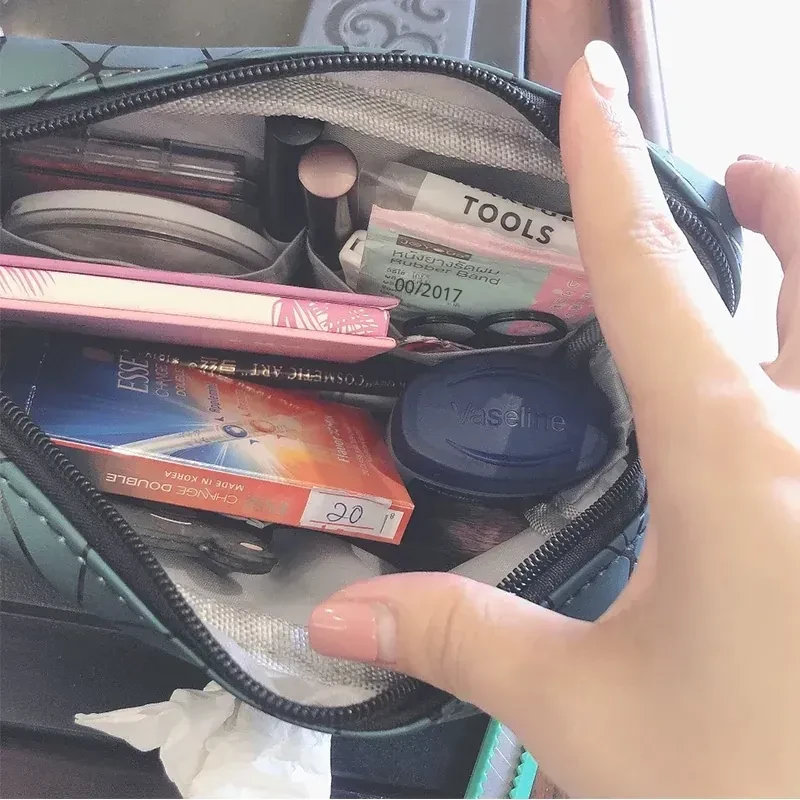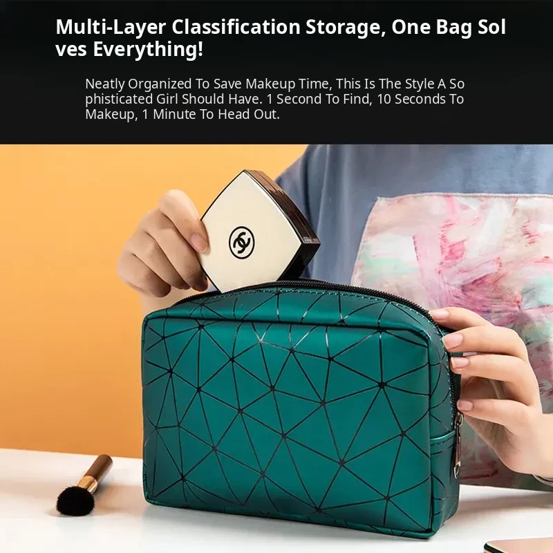 Trendy Portable Makeup Bag for Women - Large Capacity Travel Toiletry & Cosmetic Organizer, Waterproof Mini Storage Pouch for On-the-Go Essentials