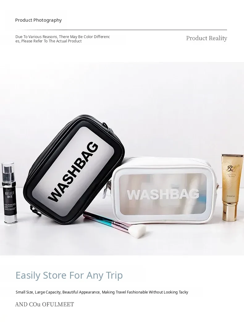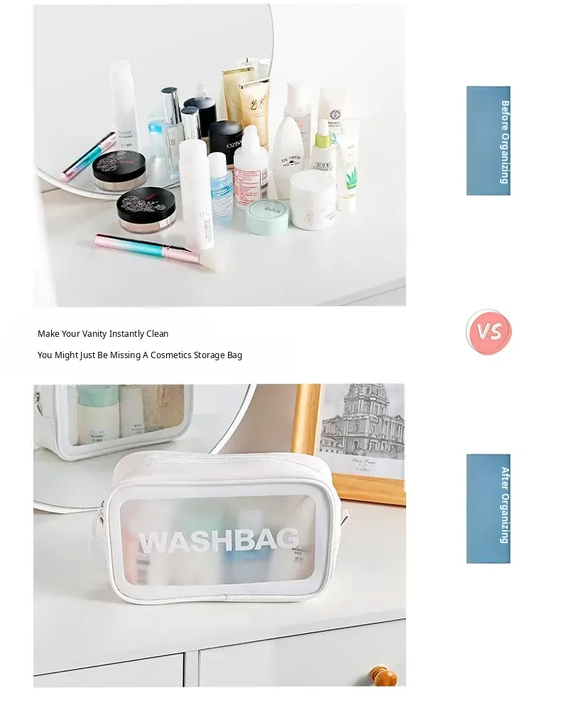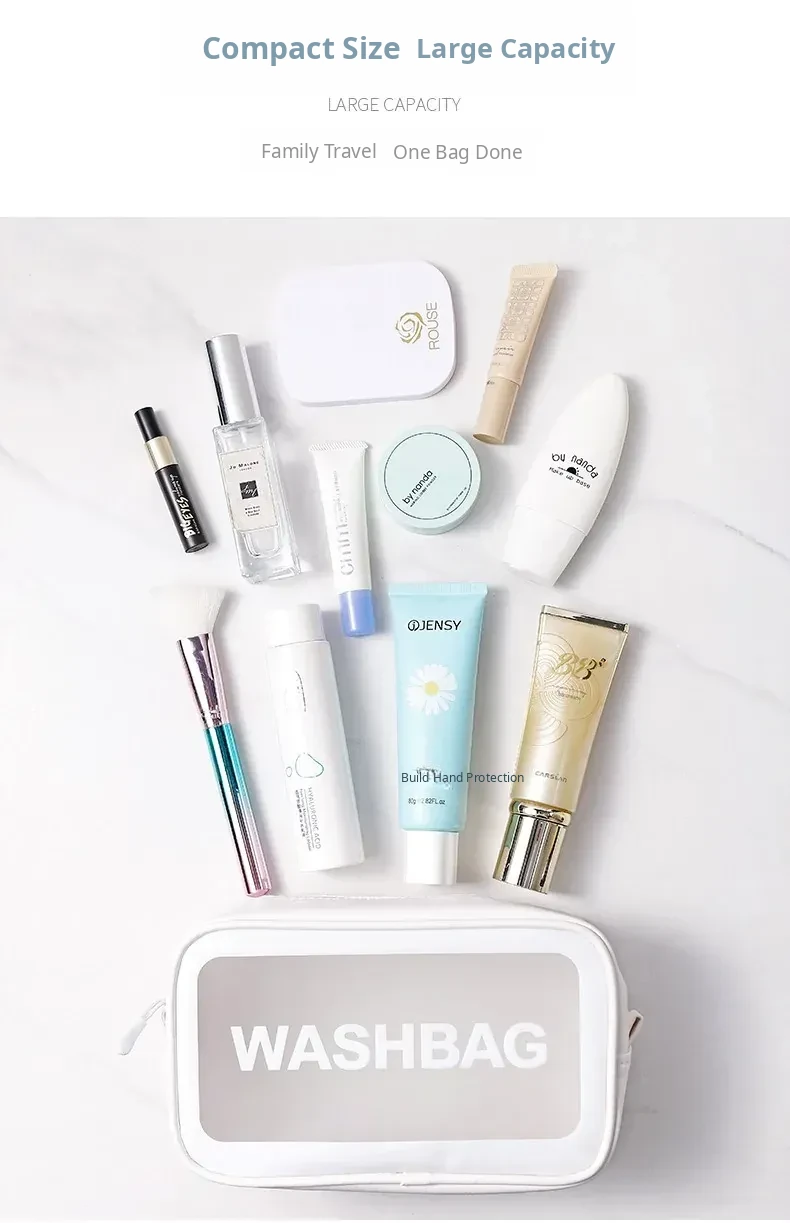 Trendy Transparent Makeup Bag - Portable Large Capacity Toiletry Organizer for Women, Perfect for Travel and Daily Use, Chic Minimalist Design