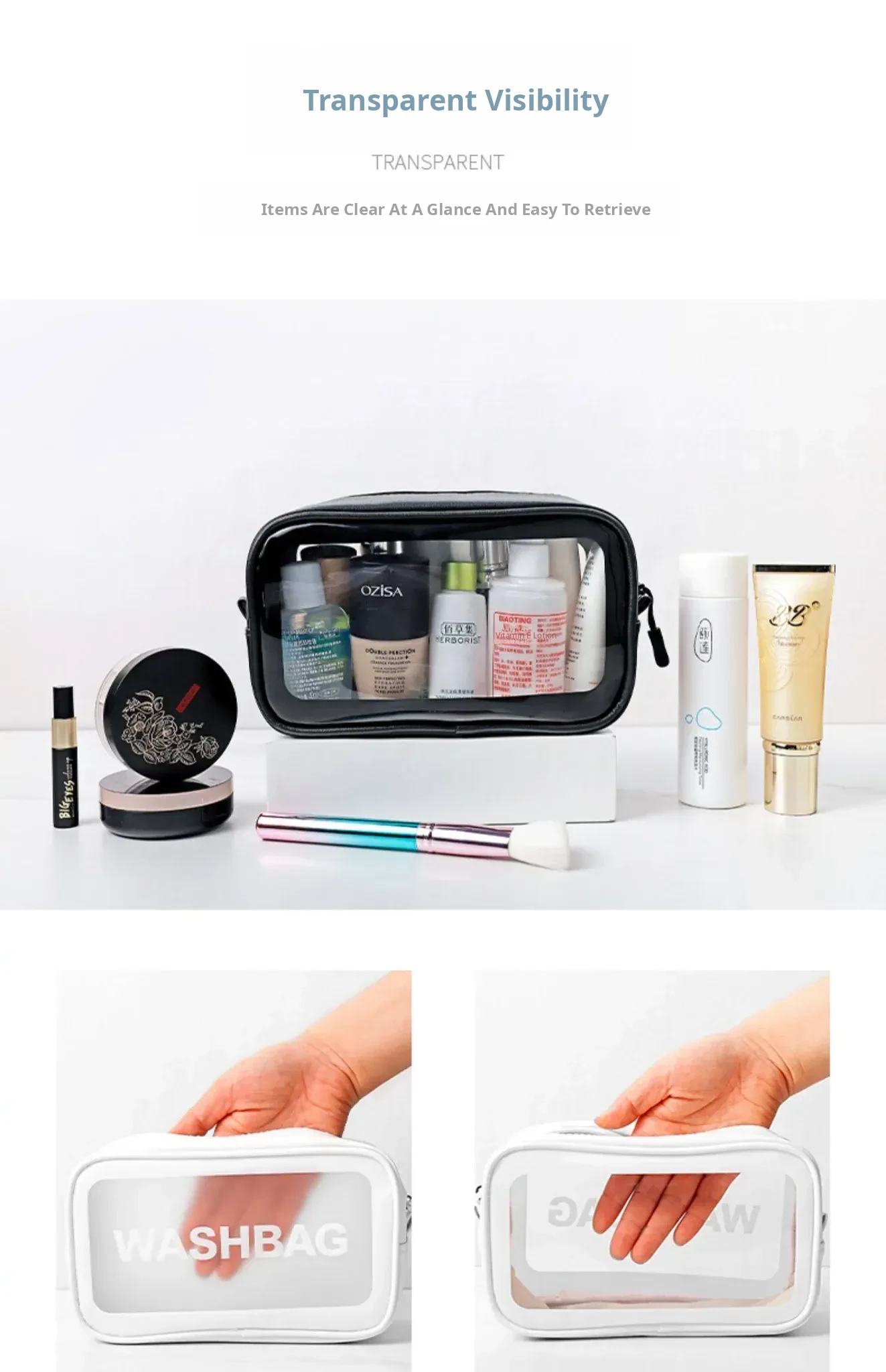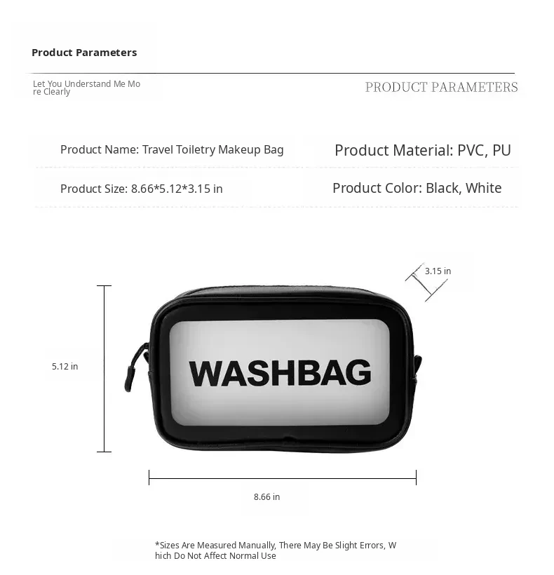 White(White Transparent Cosmetic Bag (Portable and Essential When Going Out))