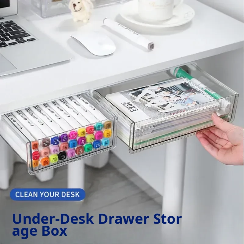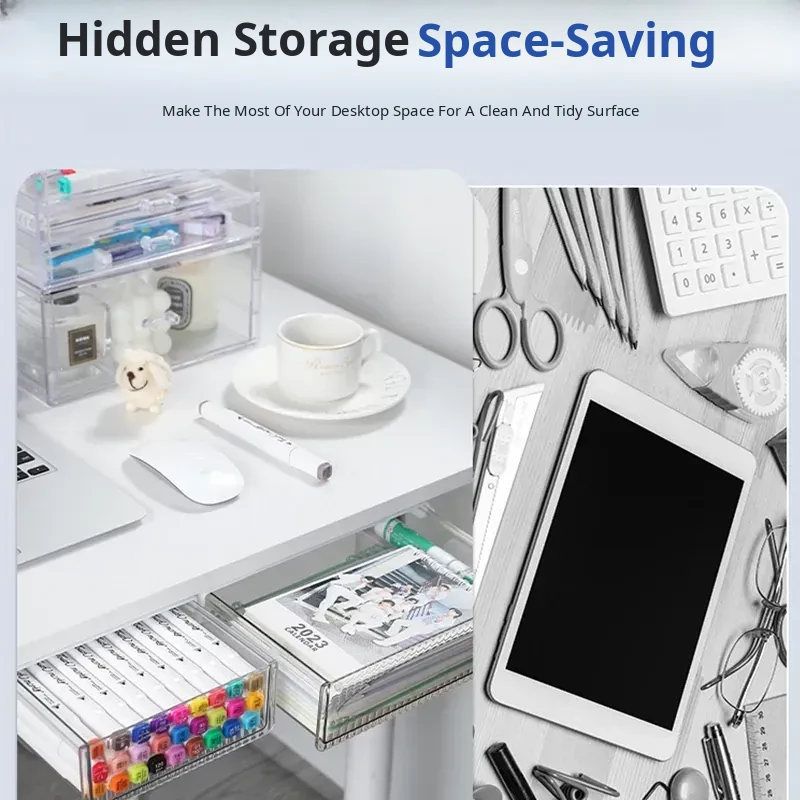 Under-Desk Hidden Drawer Organizer – Space-Saving Storage Solution for Small Offices – Adhesive Storage Rack for Desktop & Table – Keep Your Workspace Tidy and Clutter-Free!