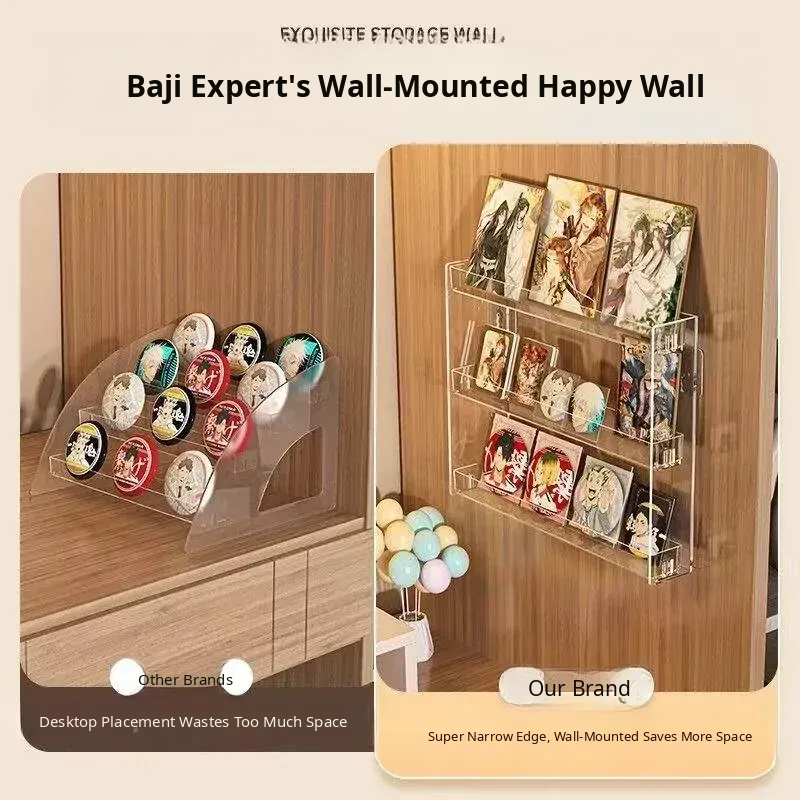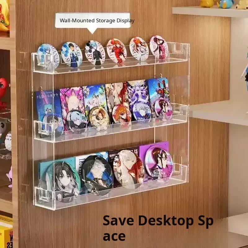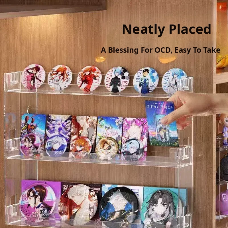 Wall-Mounted Display Rack for Badges and Cards - Acrylic Storage Organizer for Desktop, Perfect for Collectibles and Memorabilia, Stylish and Functional!