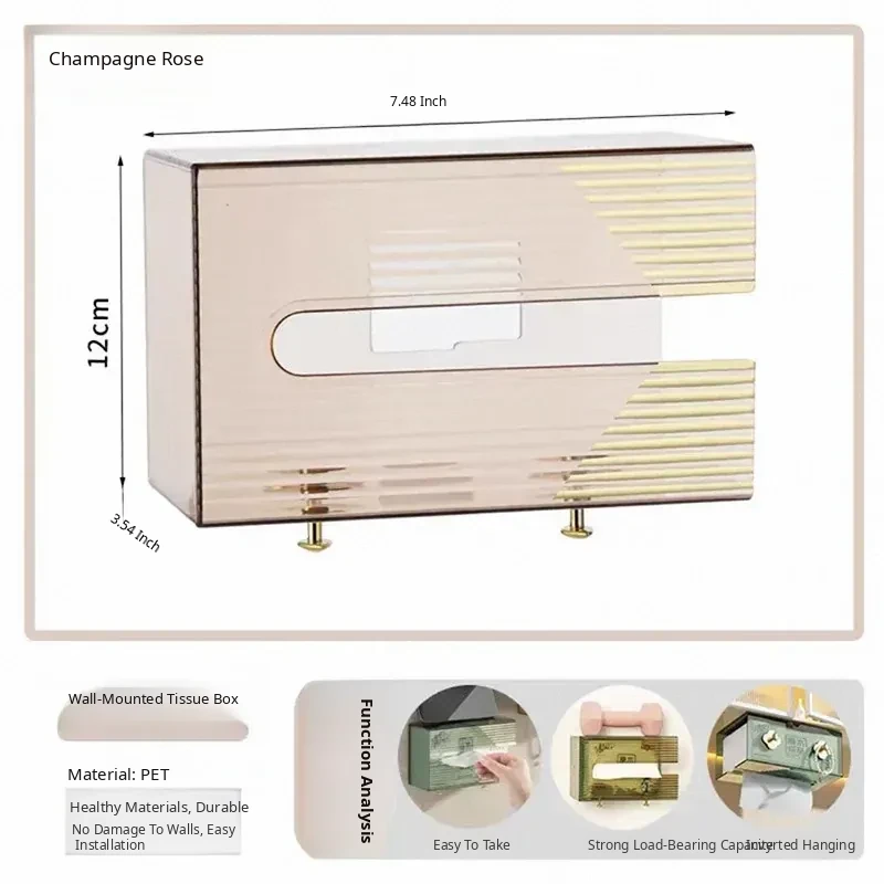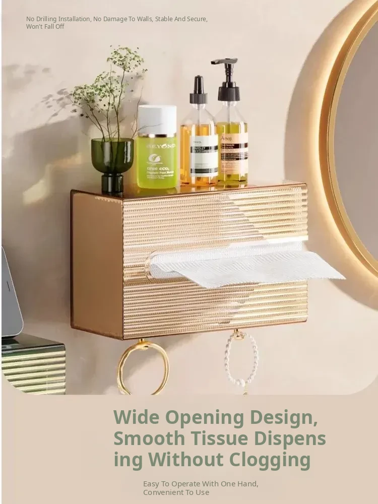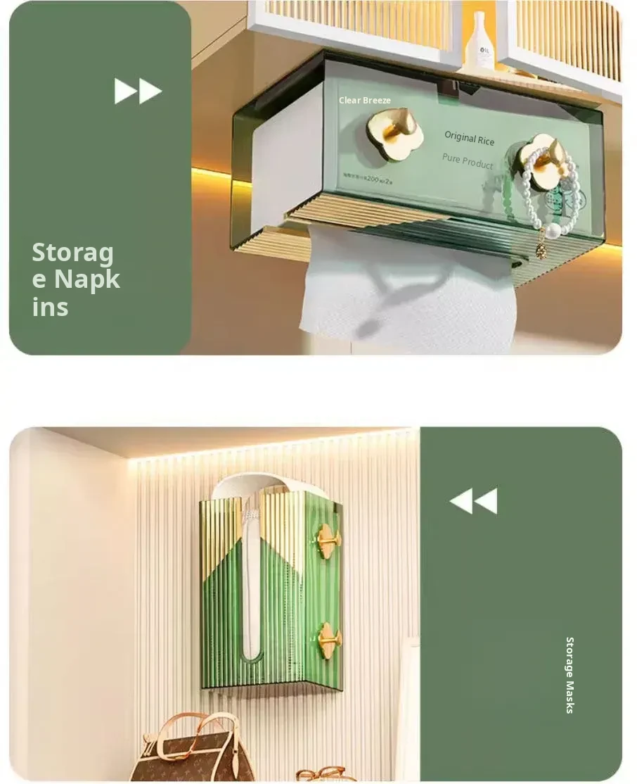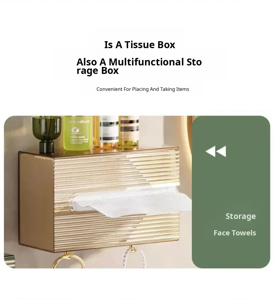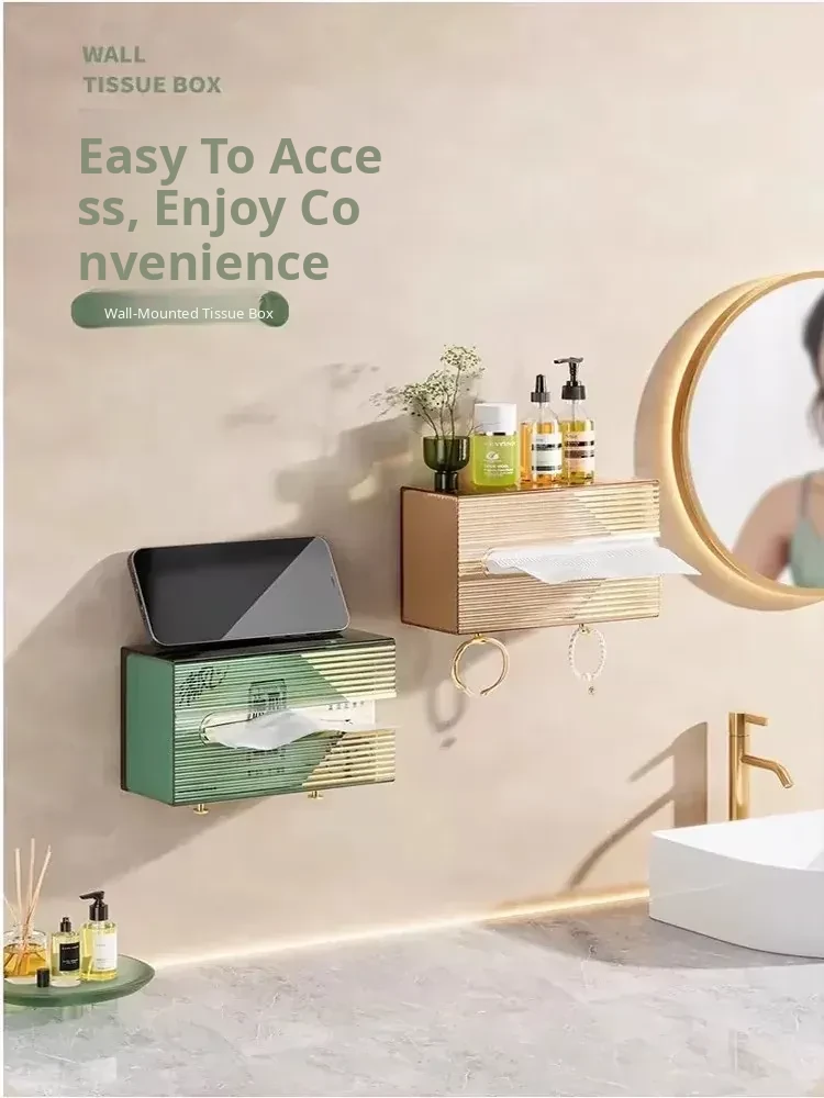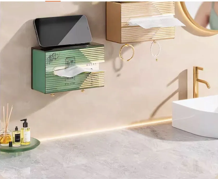 Wall-Mounted Tissue Box for Bathroom - No Drill Facial Towel Organizer, Perfect for Toilet and Kitchen Paper Napkins Storage