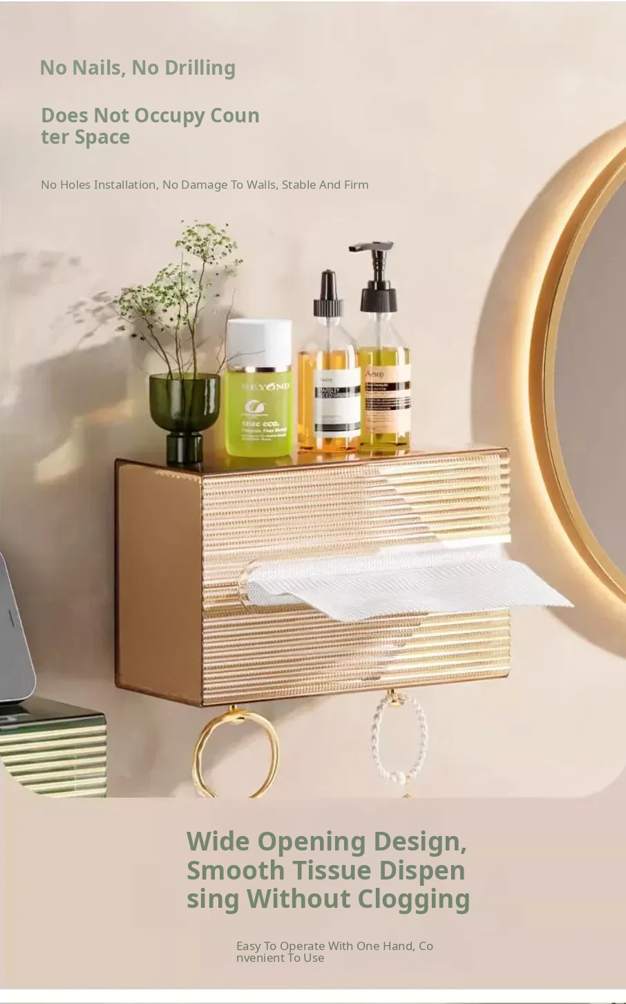 Light Luxury Green Gold [Wall-Mounted/Can Be Used Horizontally or Vertically] Guaranteed Compensation if Dropped - 1 Pack