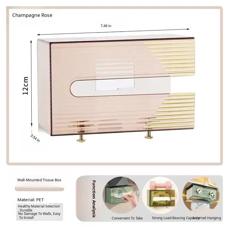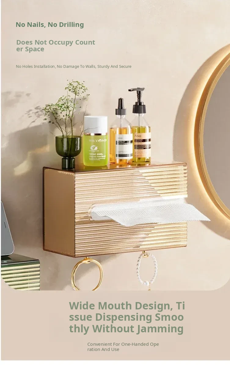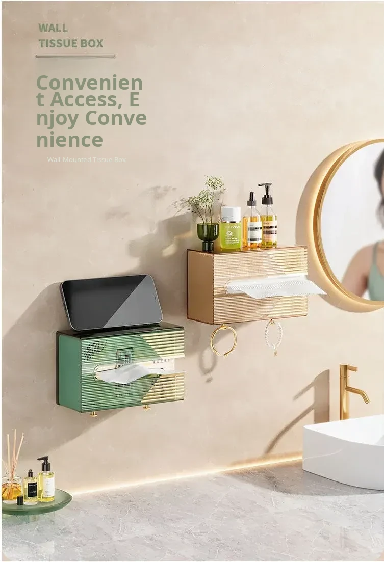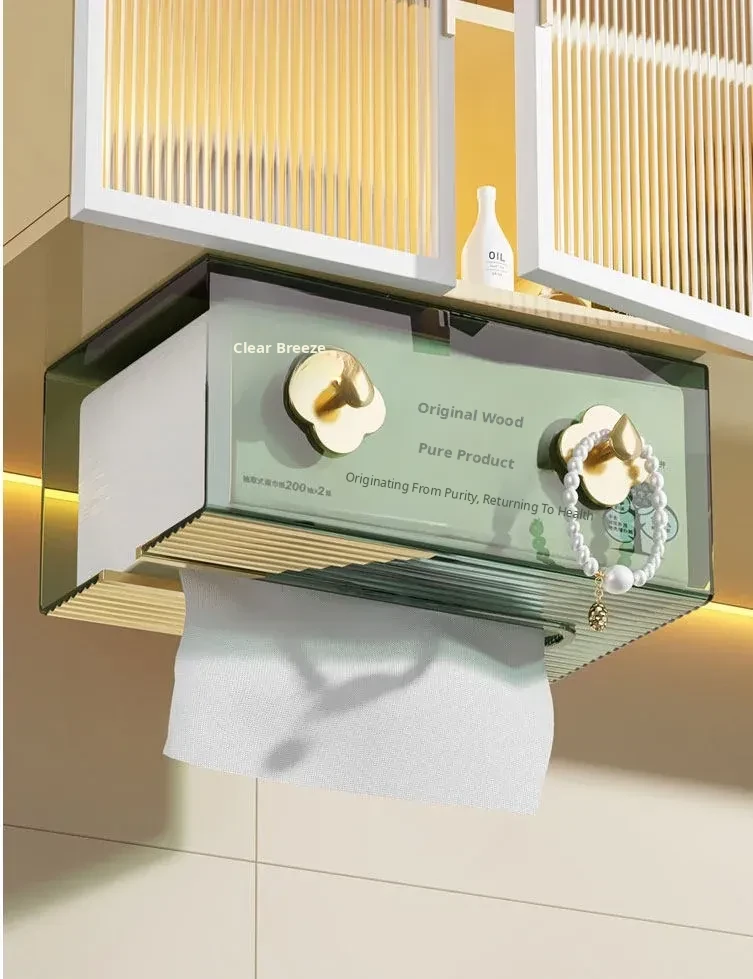 Wall-Mounted Tissue Box - No Drilling Required, Clear Design for Easy Access - Ideal for Bathrooms, Bedrooms, and Kitchens - Perfect for Storing Facial Towels and Paper Towels