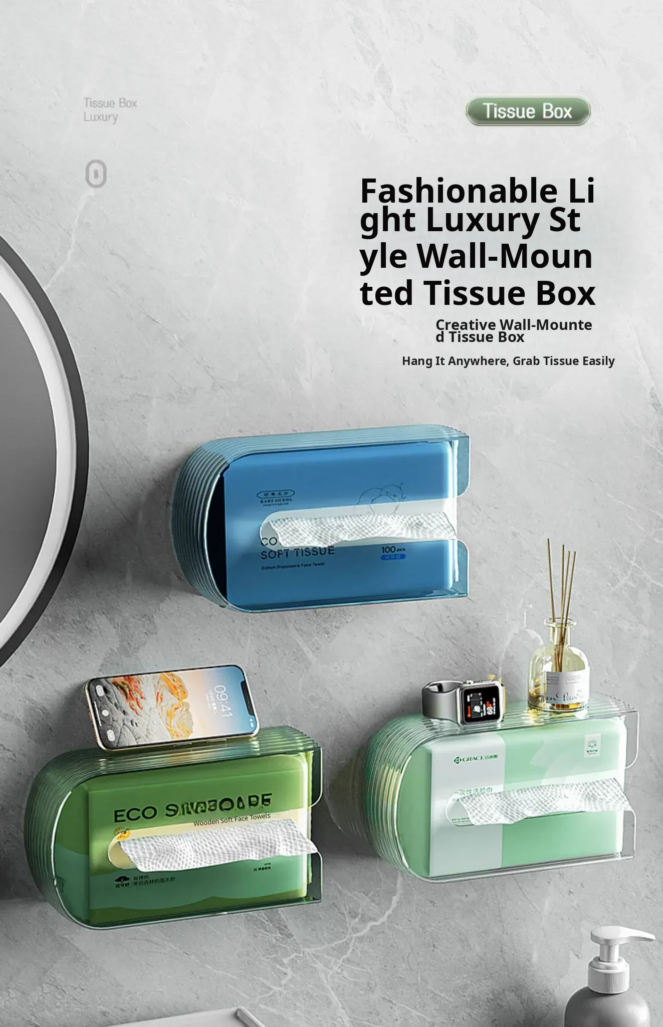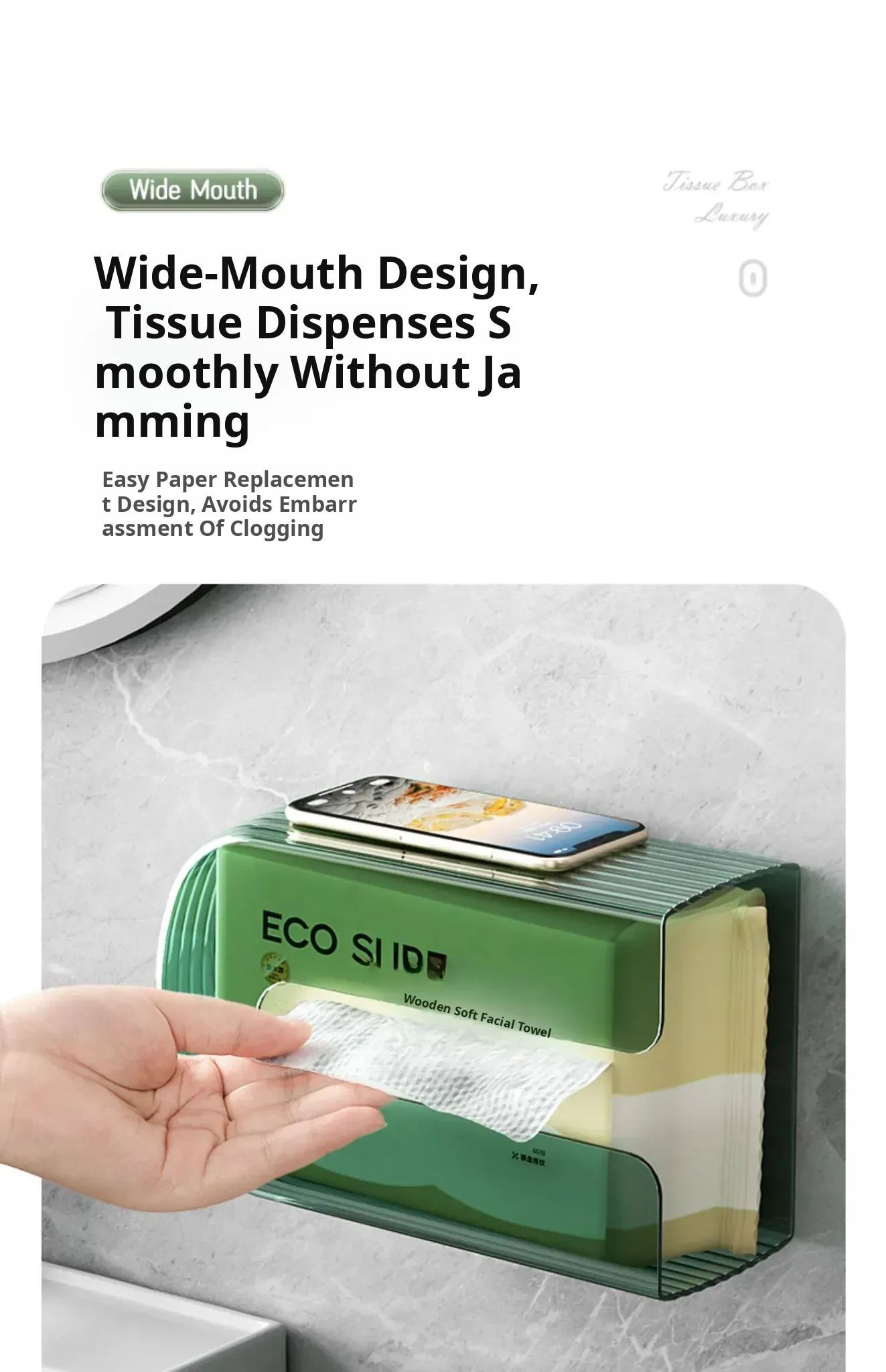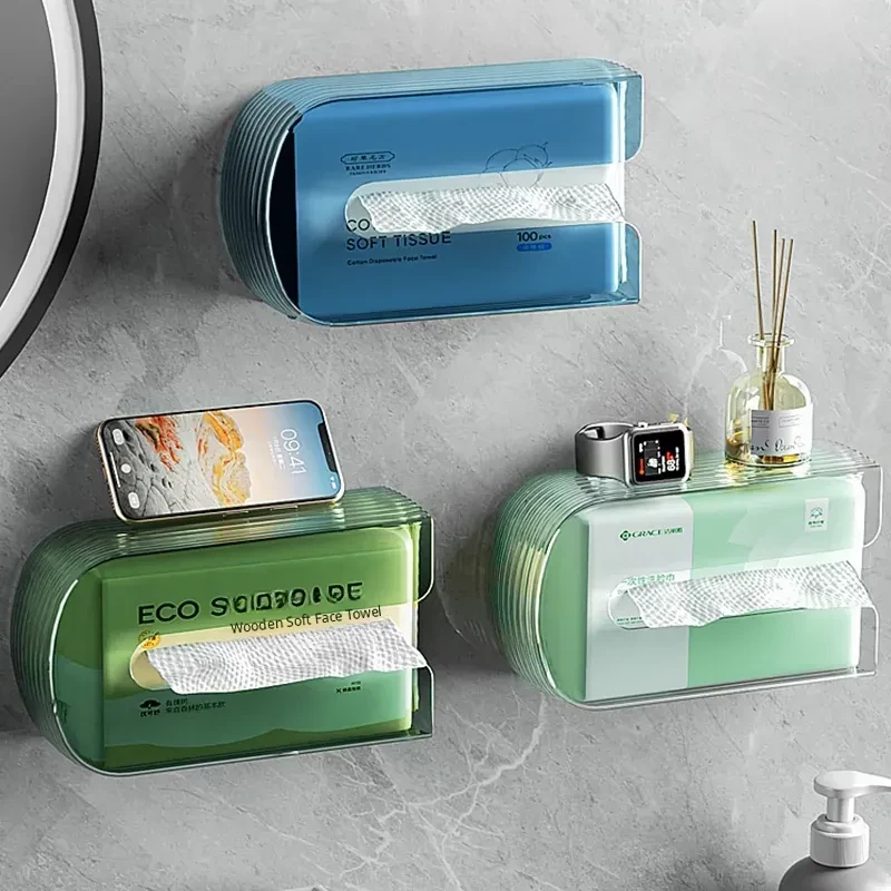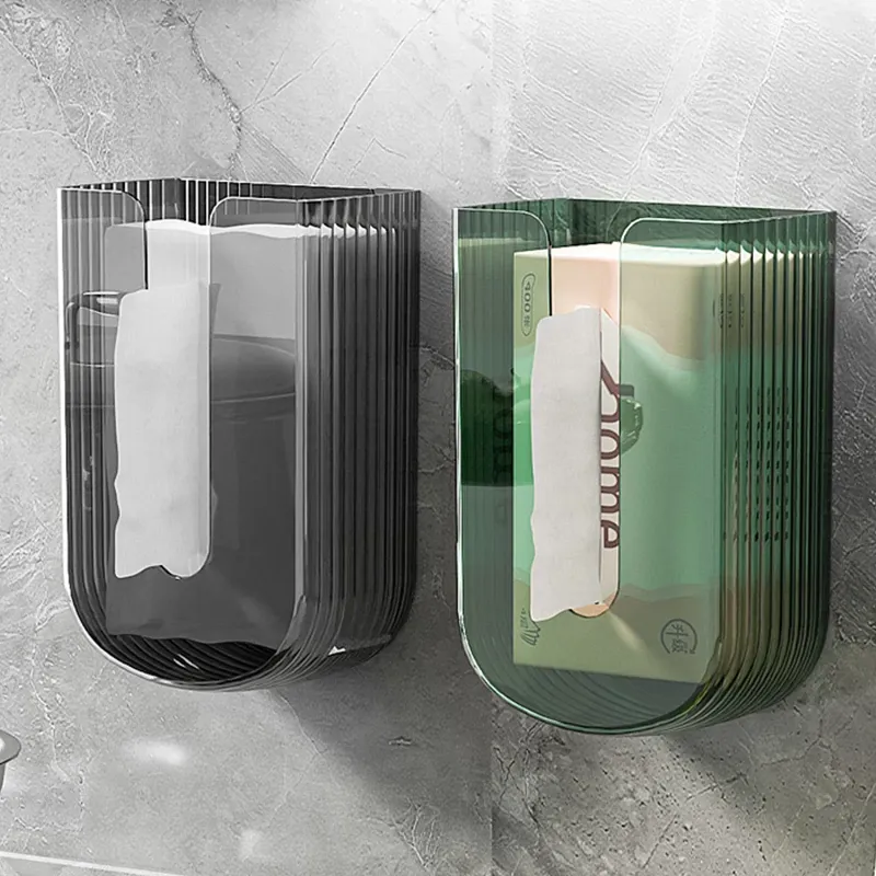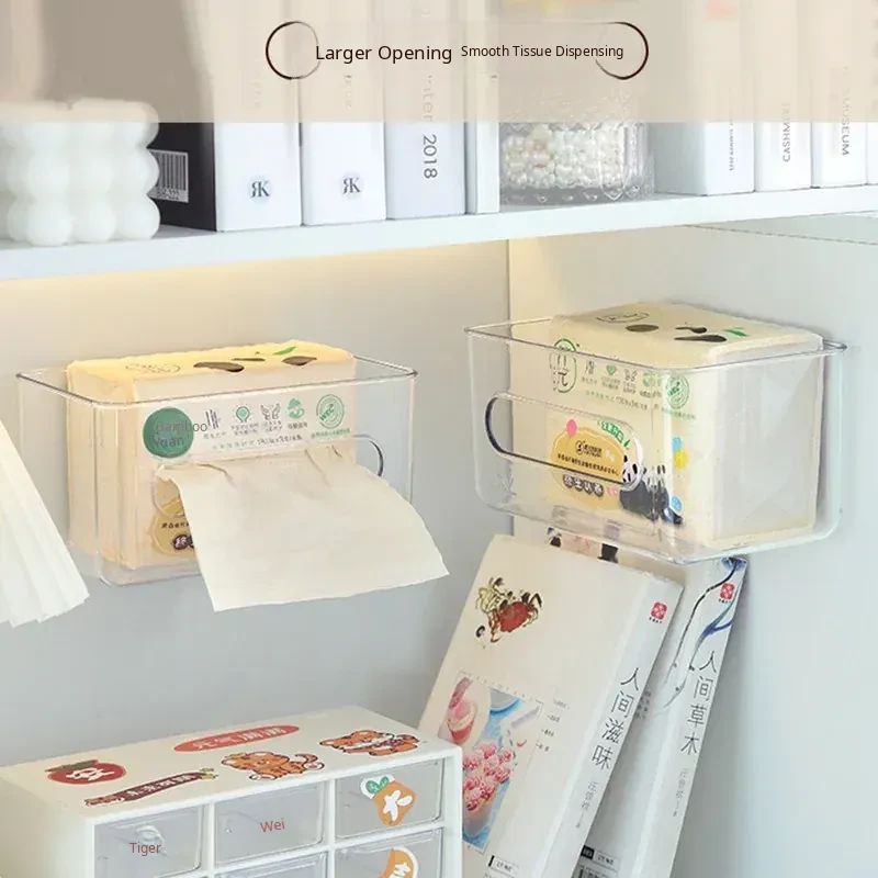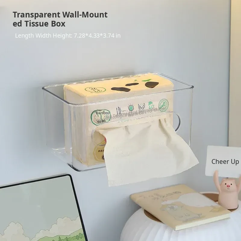 Wall-Mounted Transparent Tissue Storage Box - Minimalist Waterproof Organizer for Bathroom, No Drilling Required, Perfect for Face Towels and Essentials
