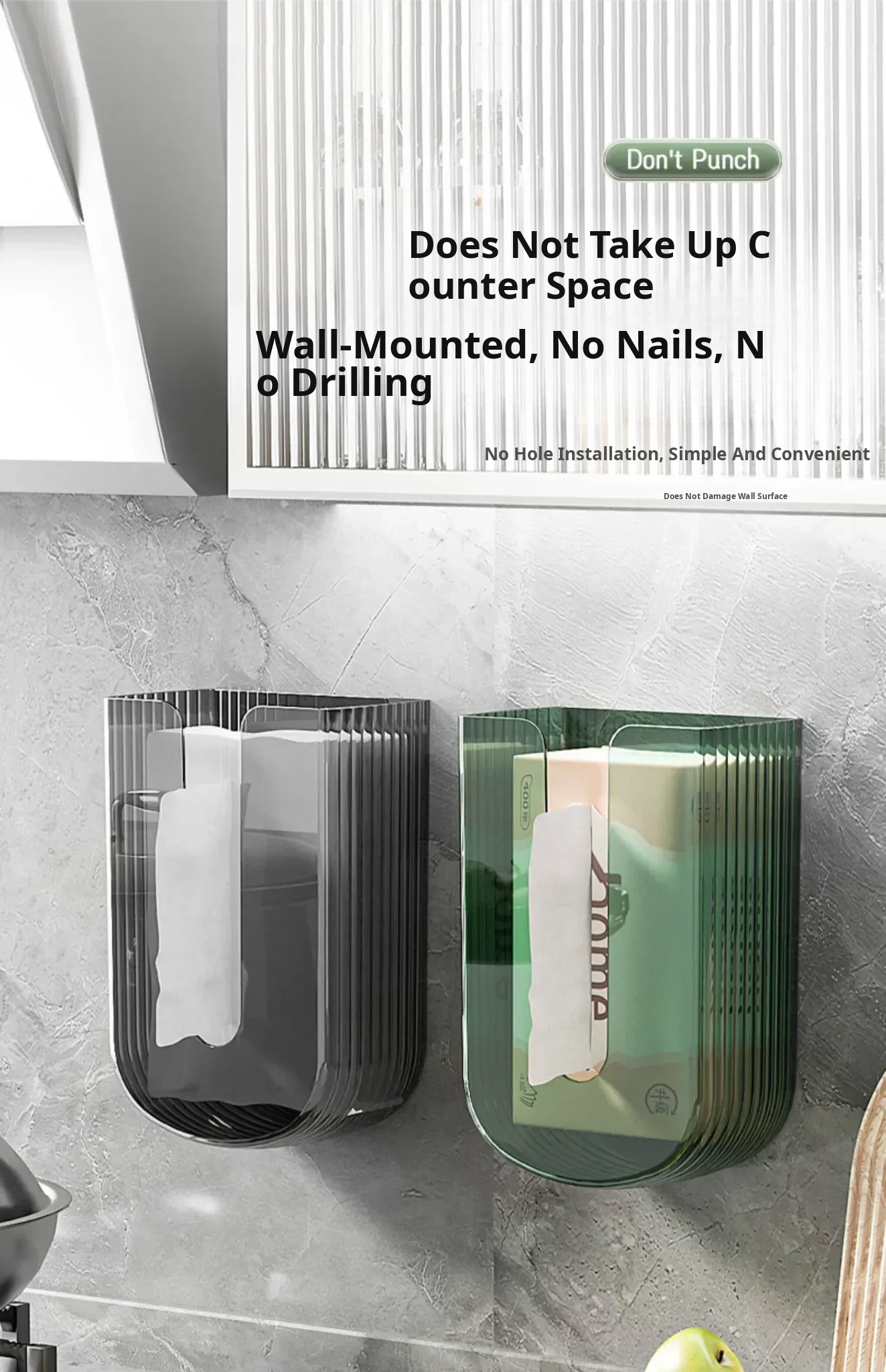 (Pack of 2) Transparent Punch-Free Paper Towel Storage Box (with Traceless Glue)