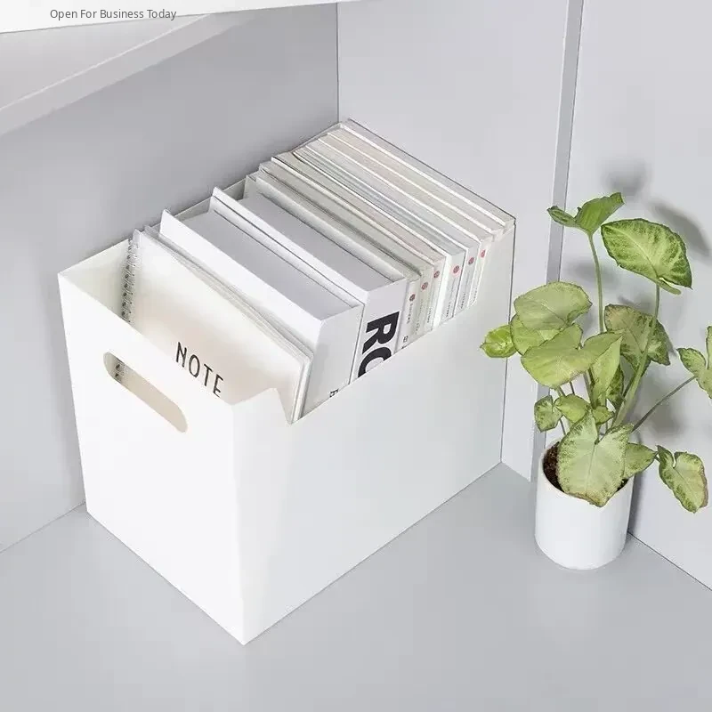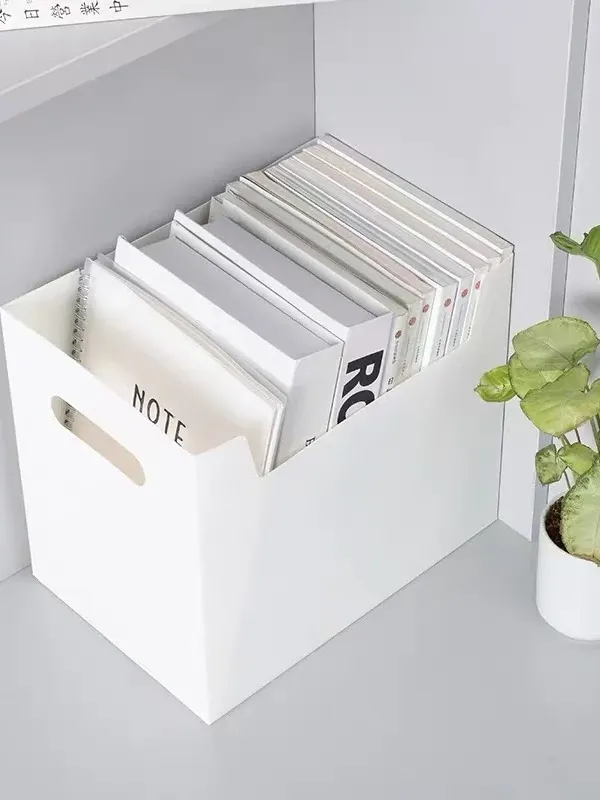 White Square Desktop Organizer - Plastic Bookshelf Storage Bin for Books, Miscellaneous Items, and Office Supplies - Perfect for Tidy Workspaces!