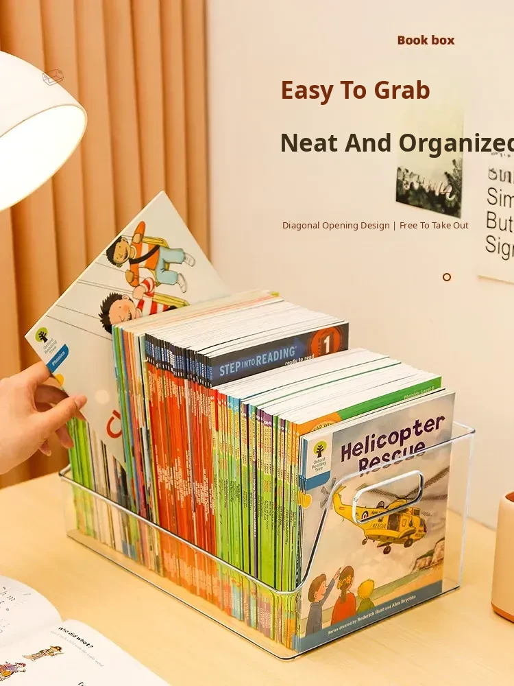 "Oxford Tree Children's Book Storage Box – Acrylic Desktop Organizer for Back-to-School Essentials, Perfect for Books and Supplies!"