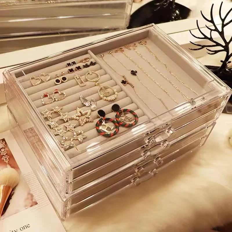 Elegant Jewelry Storage Box with Drawers - Multi-Layer Organizer for Earrings and Skincare Products - Spacious Compartments for a Neat Desktop Display