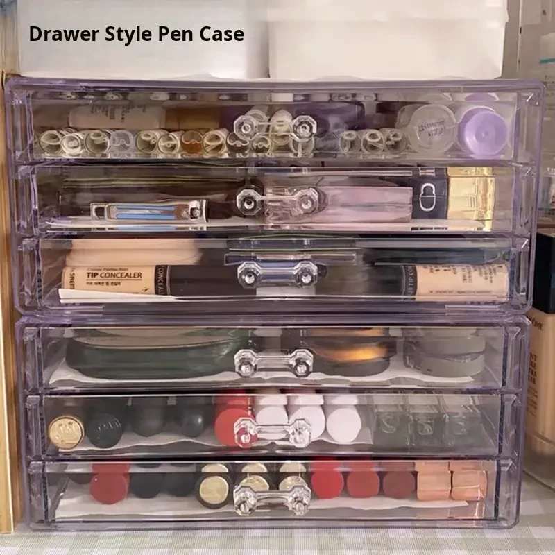 Cute Transparent Acrylic Pen Holder Organizer - Multi-Functional Desk Storage for Students, Dust-Proof and Stylish Desktop Stationery Rack