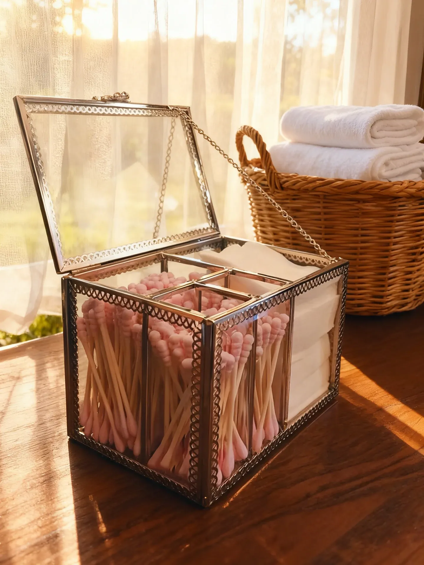 Luxury Platinum Glass Dustproof Makeup Cotton Storage Box - Transparent Organizer for Cotton Swabs and Makeup Essentials, Perfect for Dressing Tables