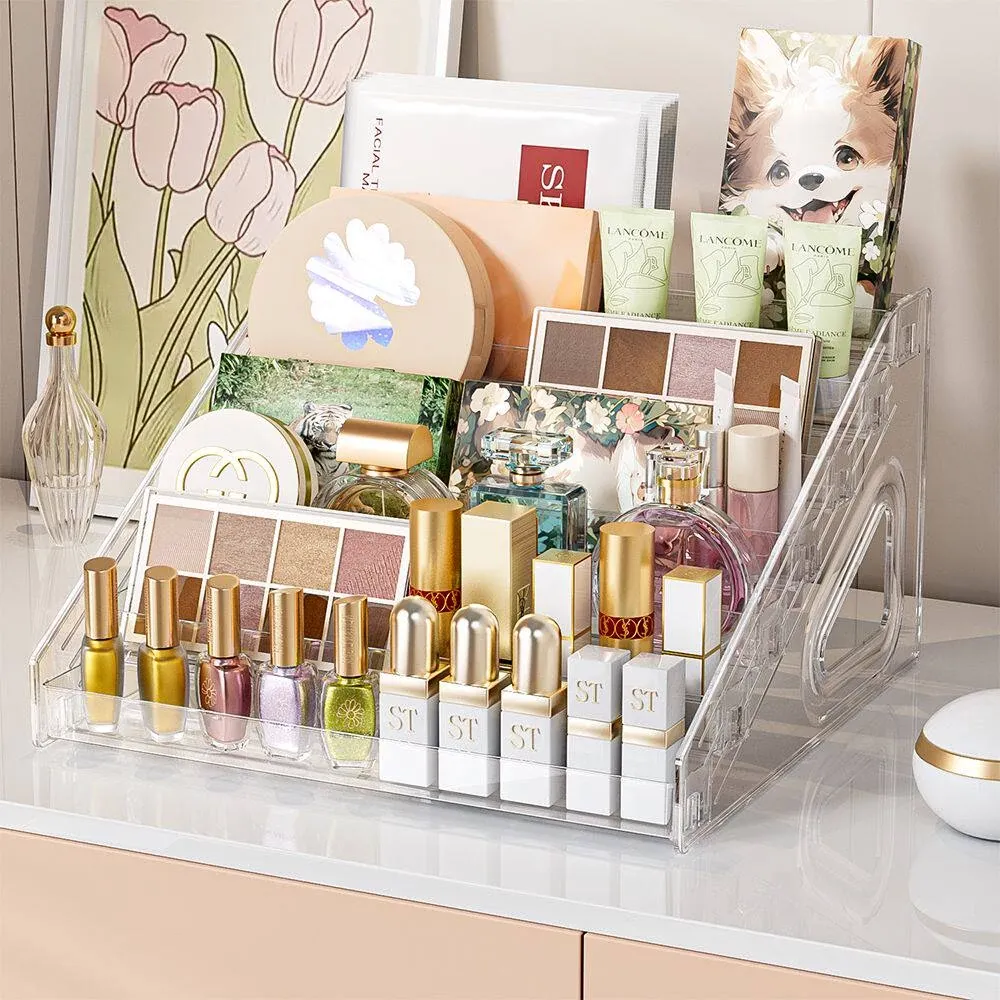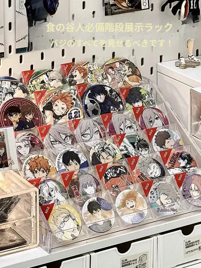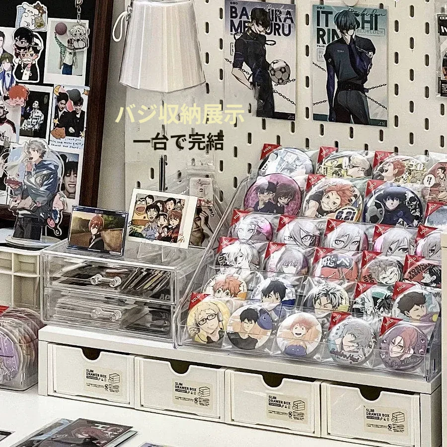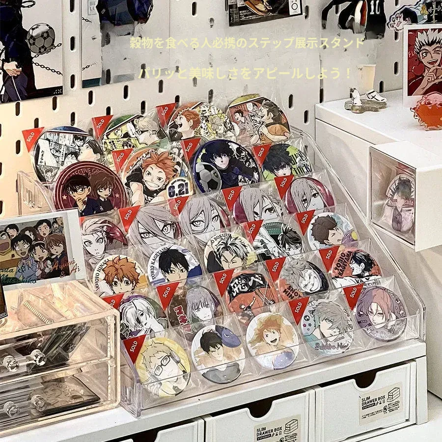 透明なアクリル製の階段型バッジディスプレイスタンド - おしゃれなデスク上の収納ボックス、周辺のバッジやグッズを美しく飾り、あなたの趣味を引き立てる!